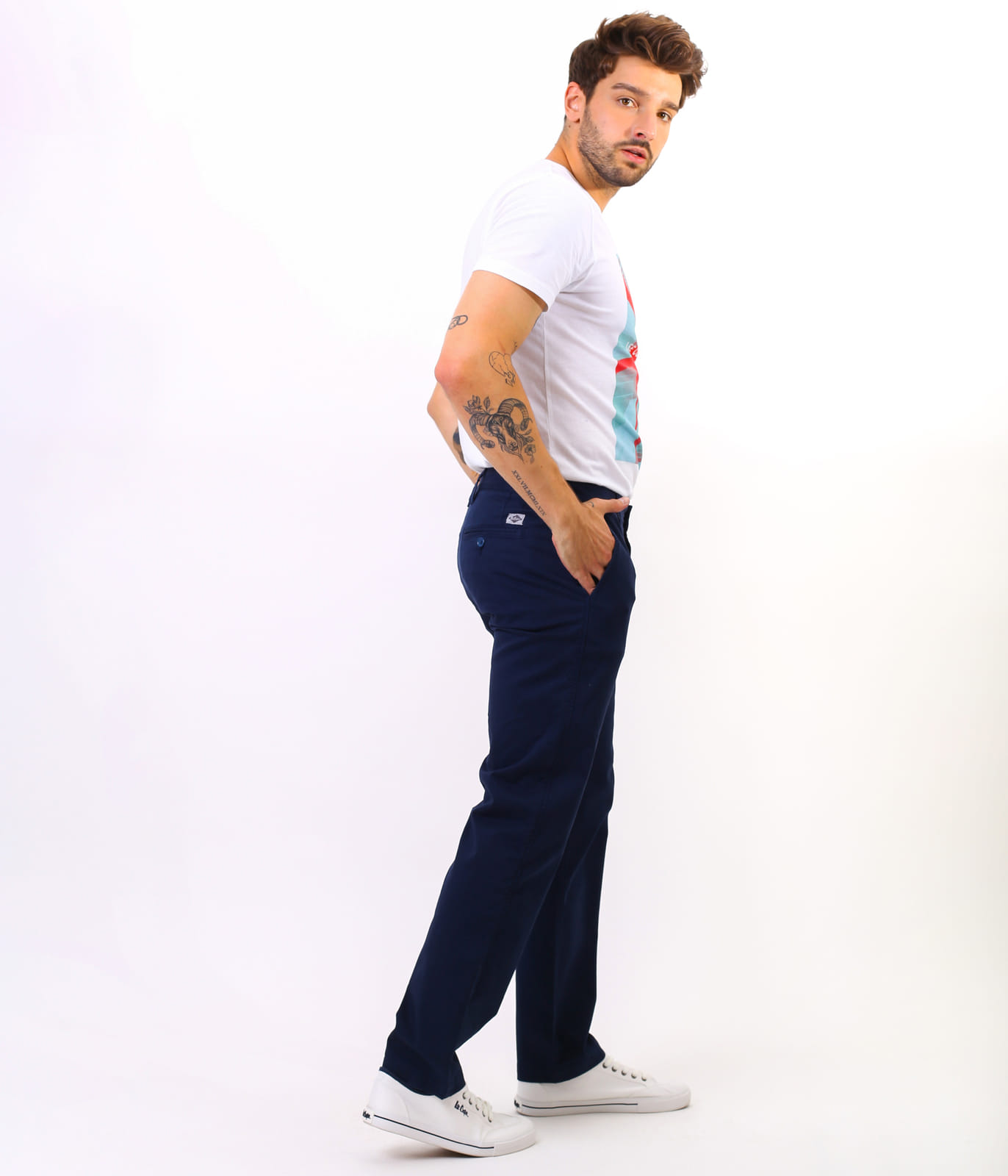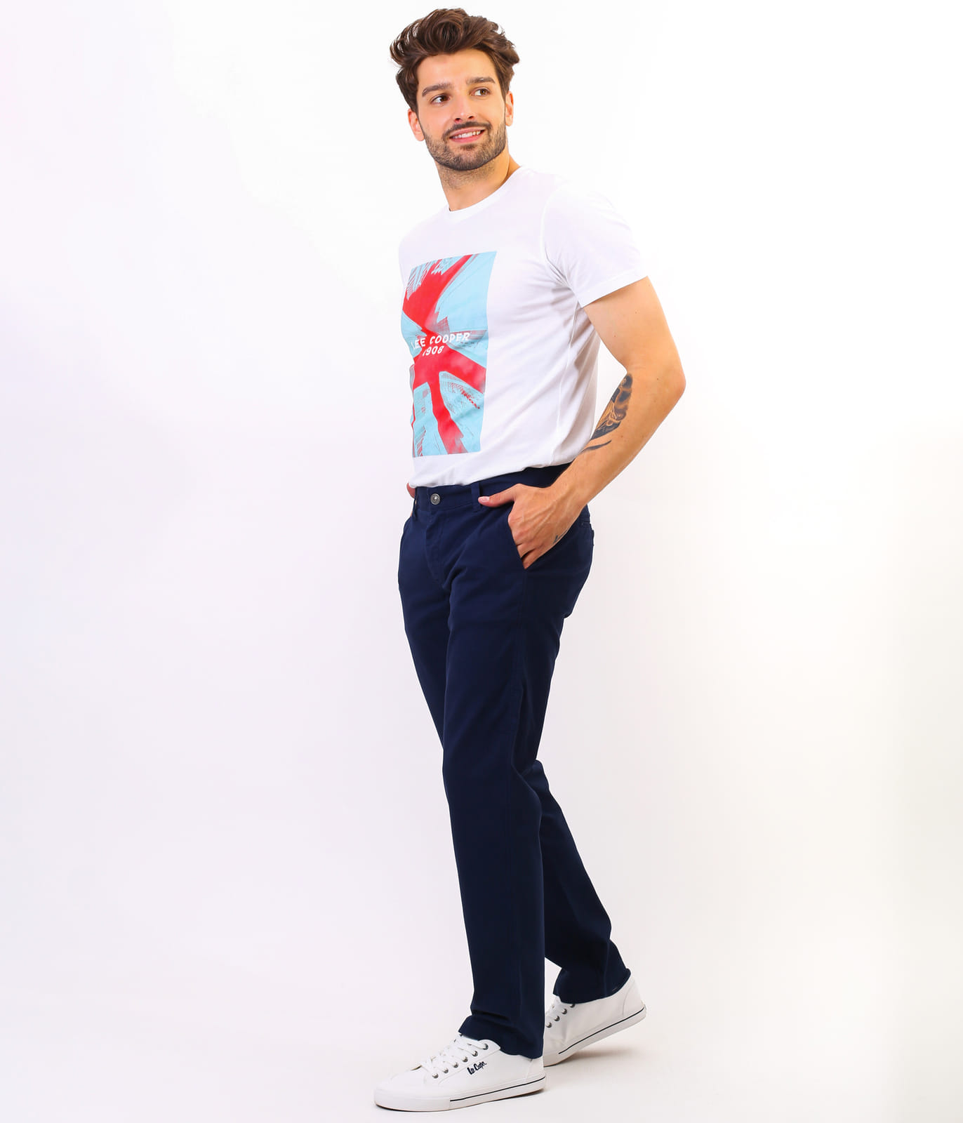 Мужские тёмно-синие брюки Galata – это неджинсовые брюки-чиносы с прямой удобной штаниной (крой Chino Comfort). Они изготовлены из гибкого материала и обеспечивают высокий комфорт при ношении. Застёжка на молнии, посадка средняя, карманы брючные, косые. У модели на фото рост 186 см., размер 32\32.