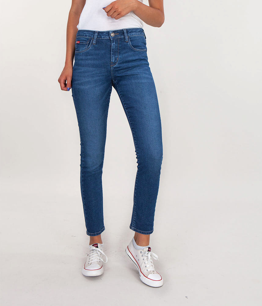 Зауженная женская модель джинсов с высокой посадкой, но не обтягивающие. Узкие и удобные брюки из эластичной ткани хорошо адаптируются к фигуре. С ними любой стиль будет модным! Застёгиваются на молнию, 5 карманов, пояс со шлевками.