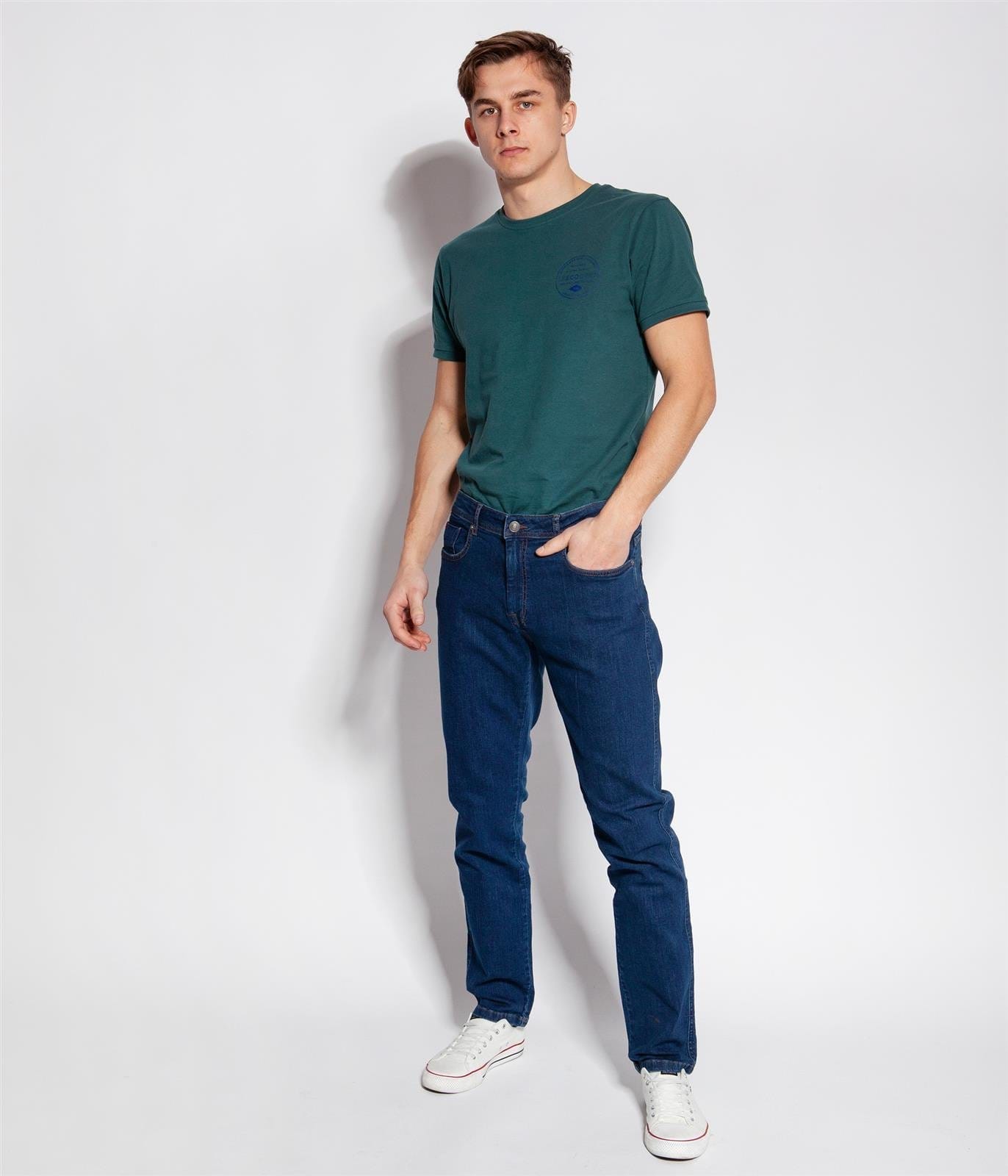 Мужские джинсы одного из популярных стилей TAPERED - классика со слегка зауженными ногами, которые прямые от бёдер и начинают сужаться вокруг колен, чтобы идеально подходить к лодыжкам. Зауженная форма не искажает силуэт, а прочный хлопок с добавлением эластана делает эти джинсы очень удобными, обеспечивающий комфорт и удобство движений, подходят для большинства фигур. На молнии, есть 5 карманов.