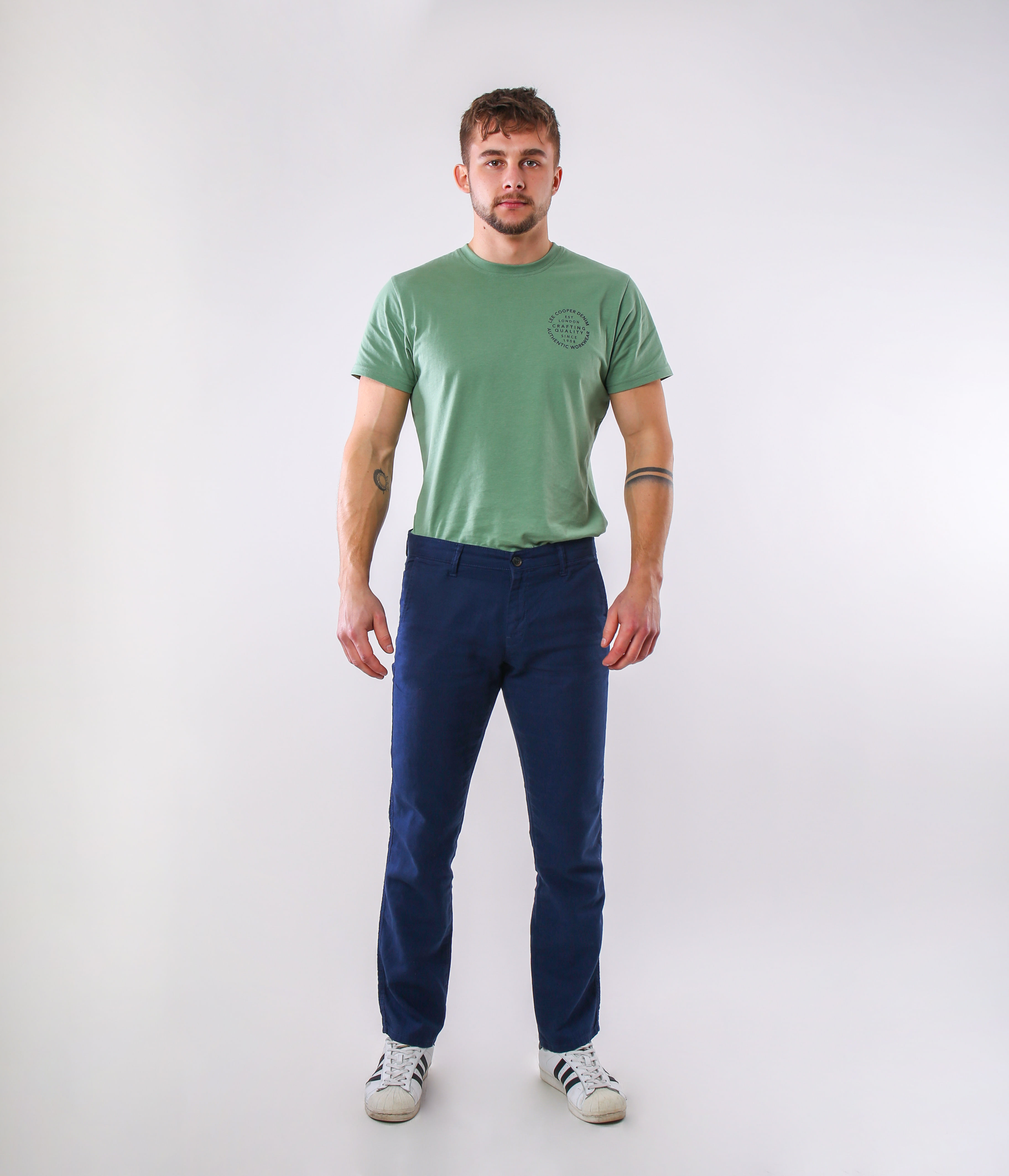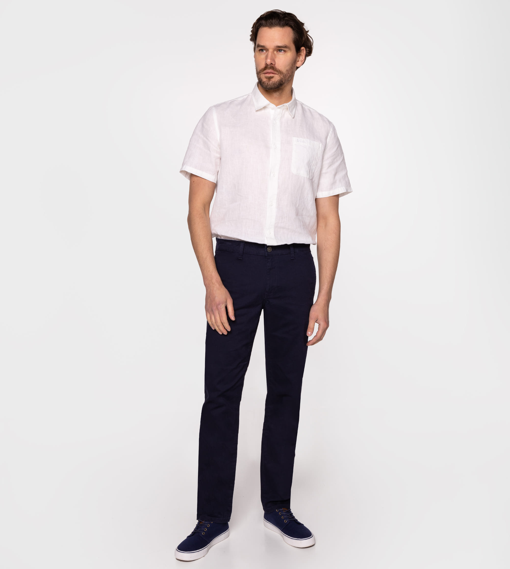 Мужские неджинсовые брюки из 50% льна и 50% хлопка представляют собой брюки типа чинос с прямой комфортной ногой, кроя Chino Comfort. Они изготовлены из гибкого материала, поэтому обеспечат комфорт при ношении. По бокам косые брючные карманы. Хорошо будут сидеть практически на любой фигуре и обеспечат ваш комфорт, идеальны для тёплых летних дней. Отлично походят к рубашке или майке из хлопка. Наша модель на фото ростом 186 см. и носит размер 32/32. Три цвета на выбор: alloy, navy и dark navy.