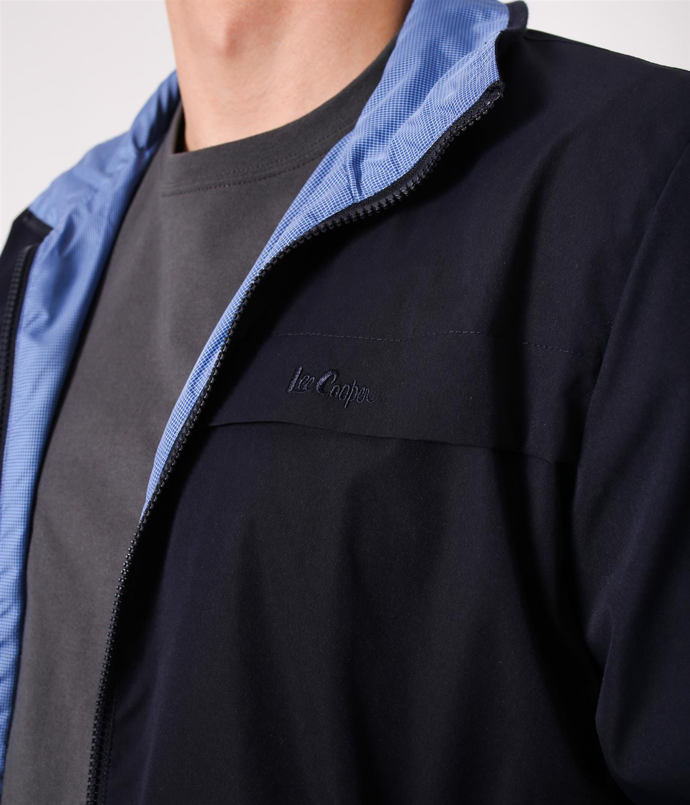 Двусторонняя мужская куртка без капюшона с воротником-стойкой, застёгивается на молнию, эластичные манжеты и нижняя часть, два передних кармана. Дополнен небольшим логотипом Lee Cooper на рукаве. Модель на нашем фото ростом 186 см. и носит размер L.