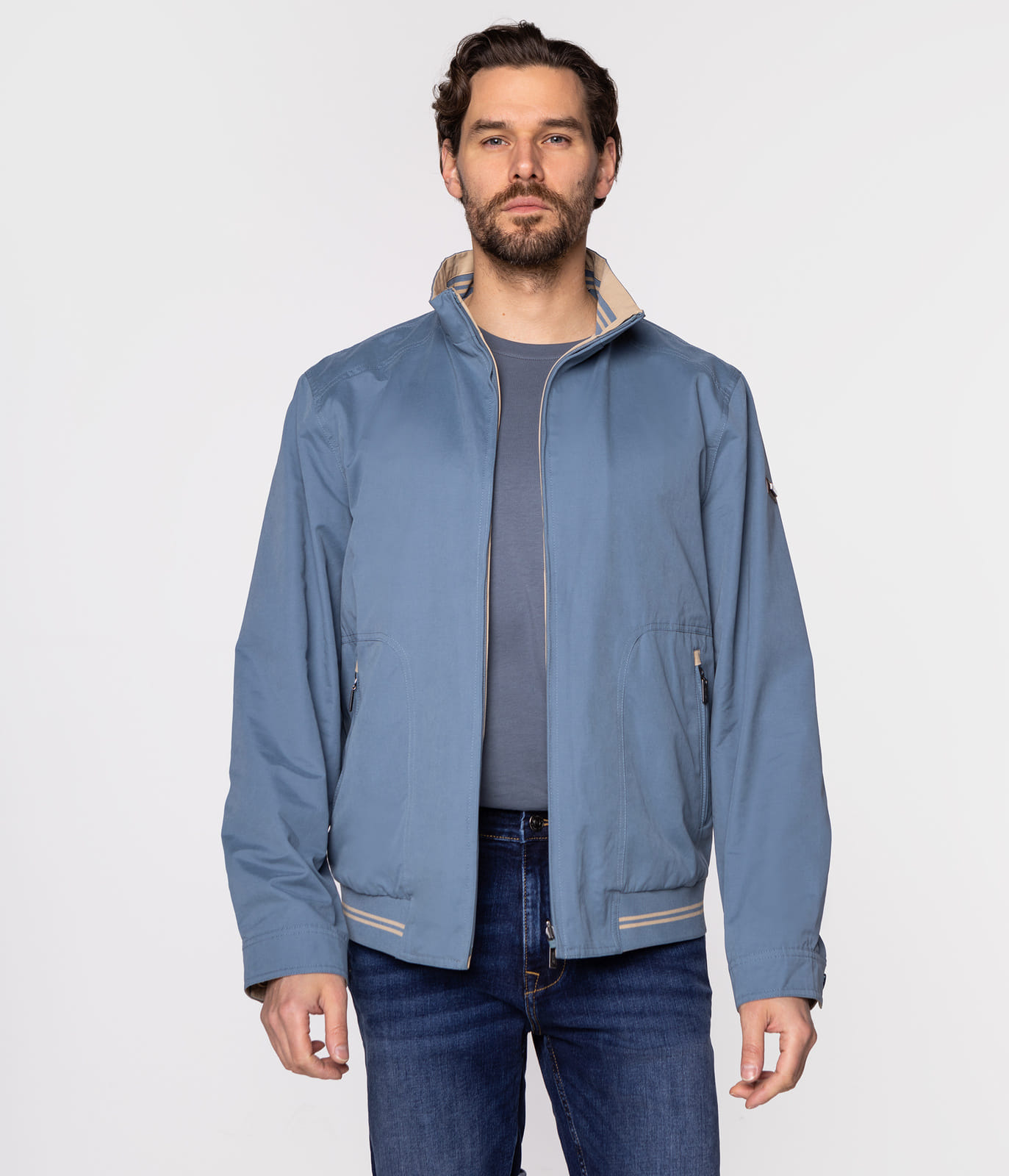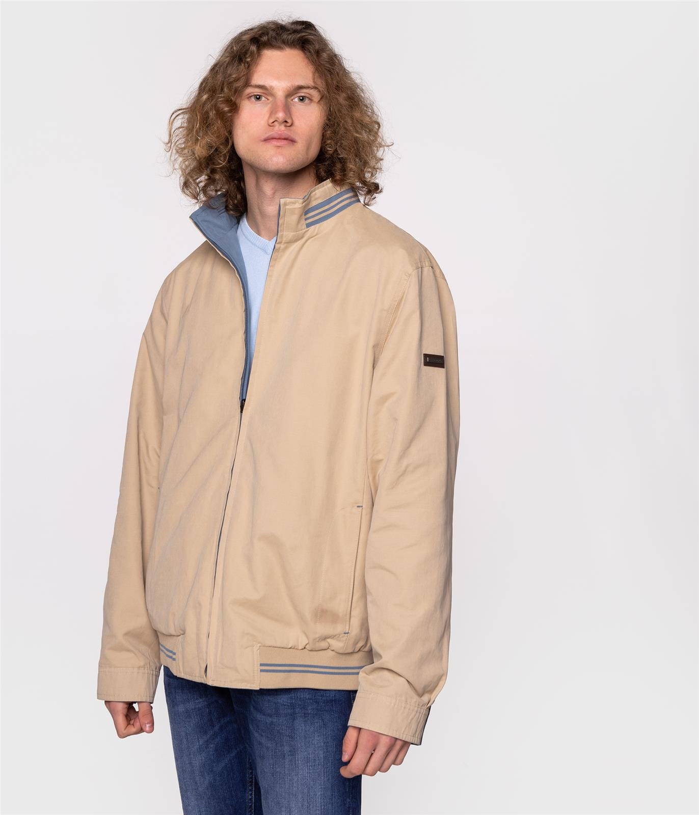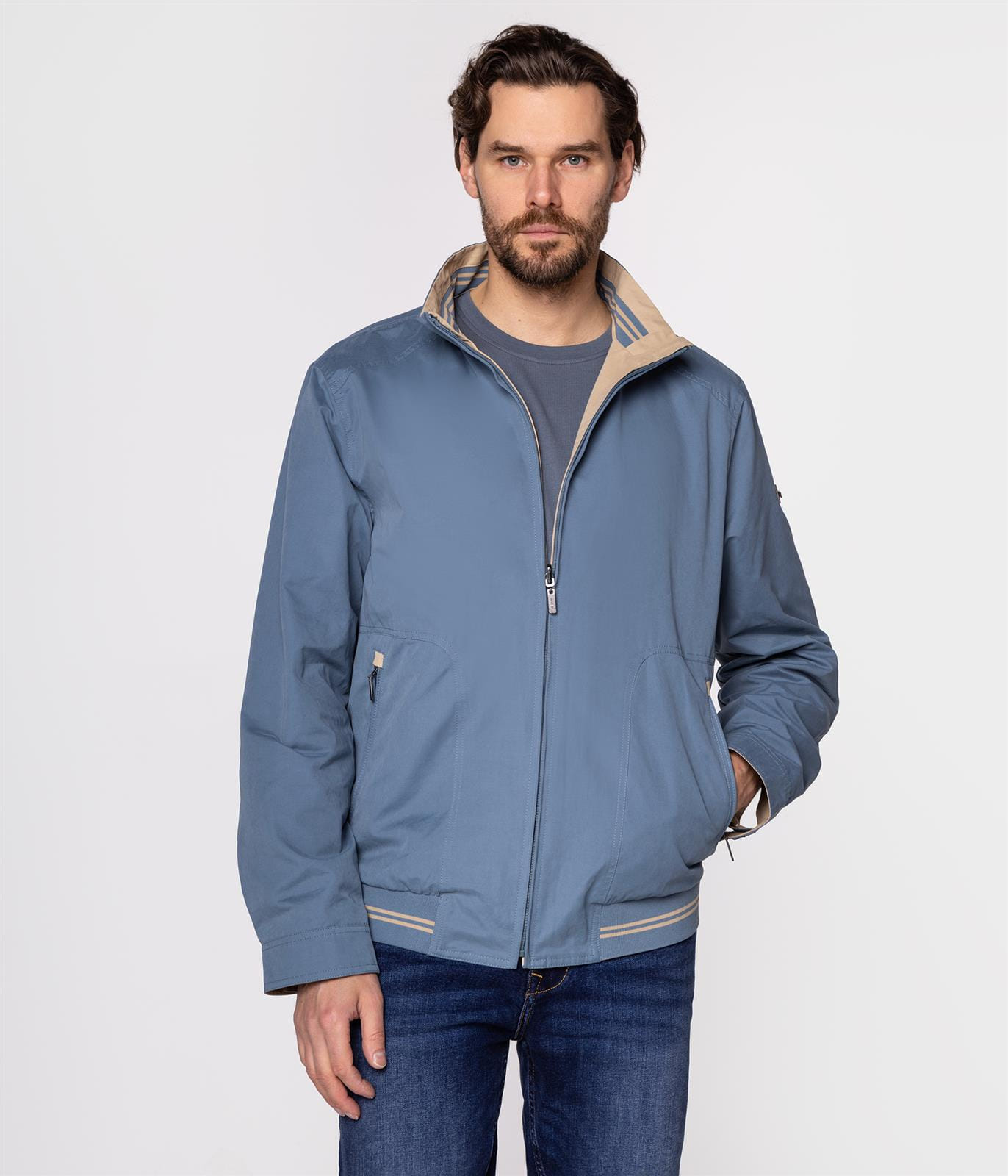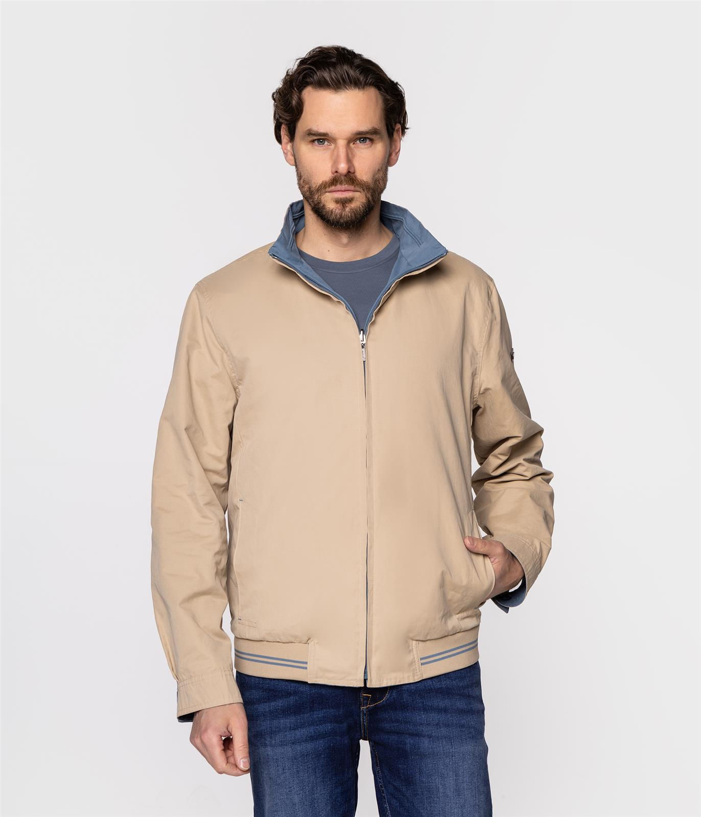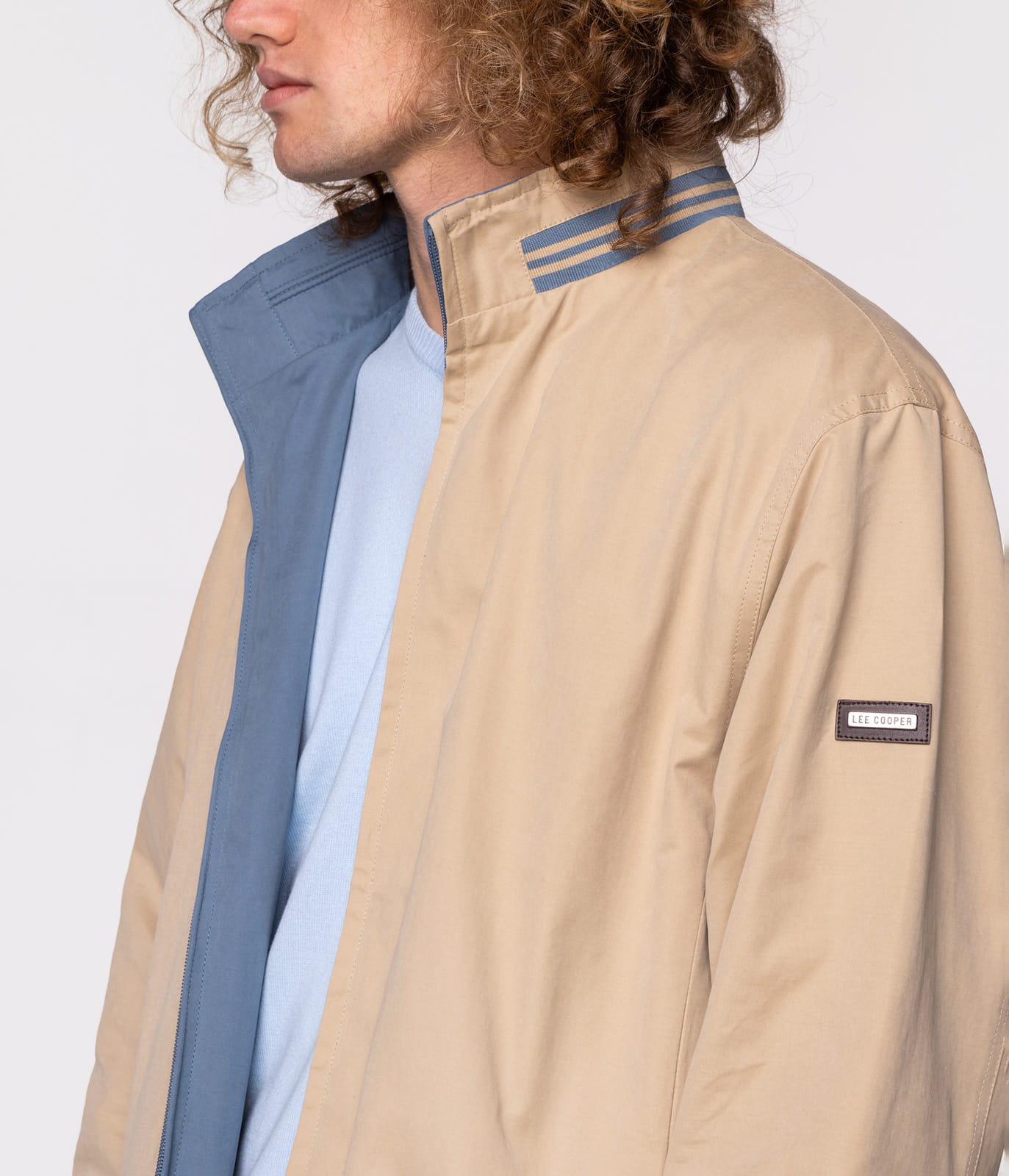 Мужская двусторонняя куртка, застёжка на молнию, кулиска по низу, два боковых кармана, пуговицы на манжетах. Дополнена небольшой нашивкой с фирменным логотипом Lee Cooper на рукаве. Модель на фото ростом 186 см. и носит размер L.