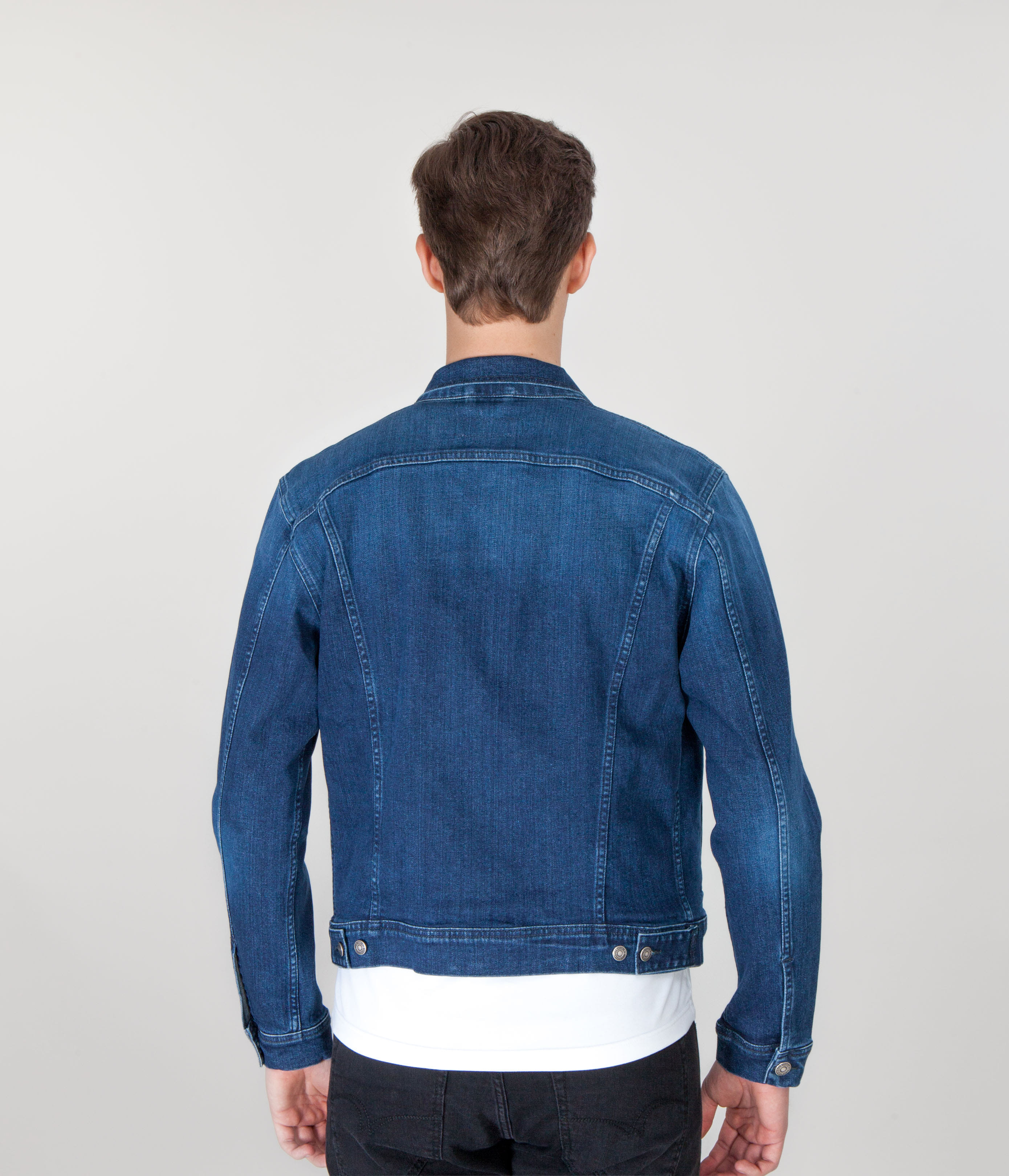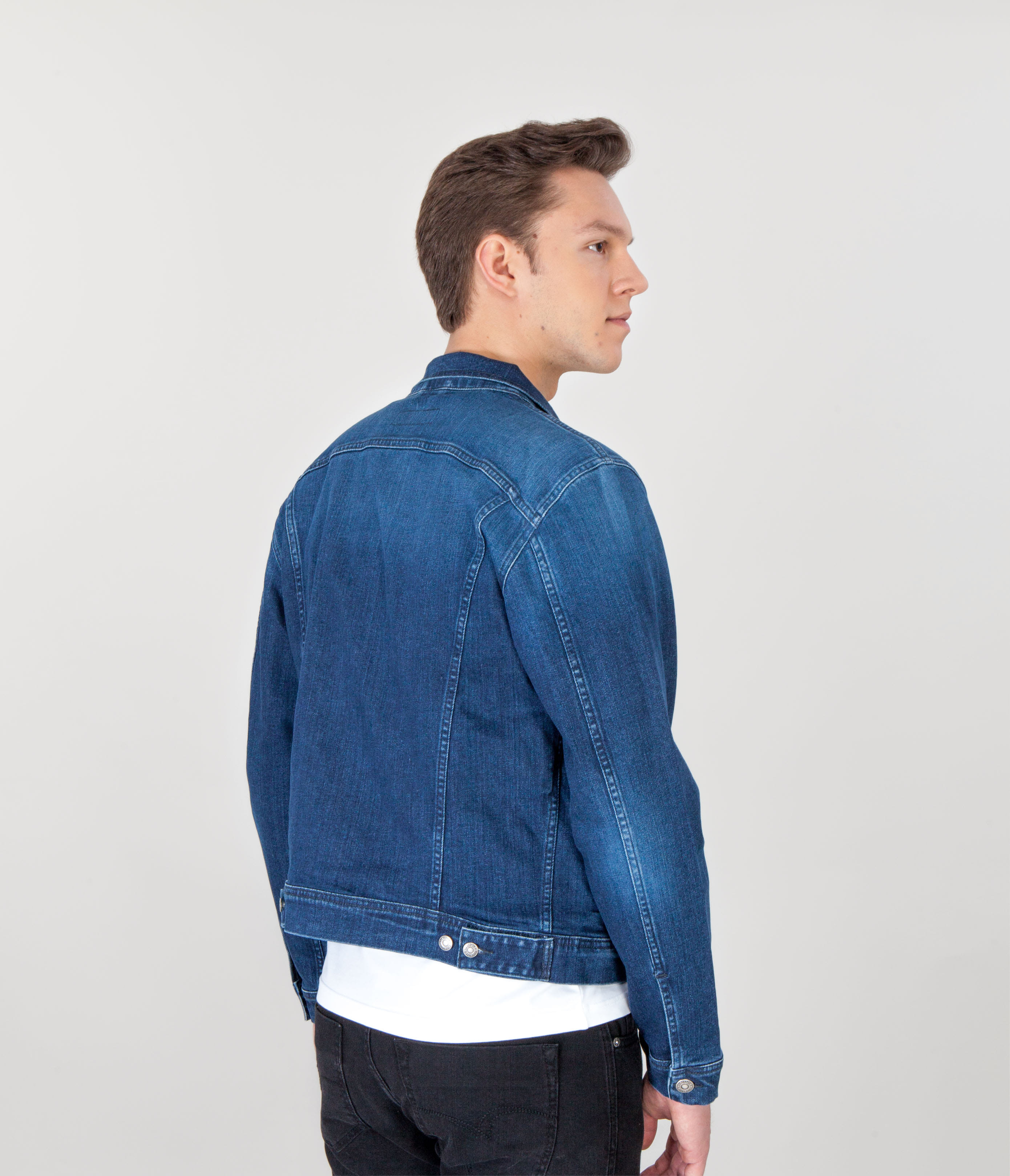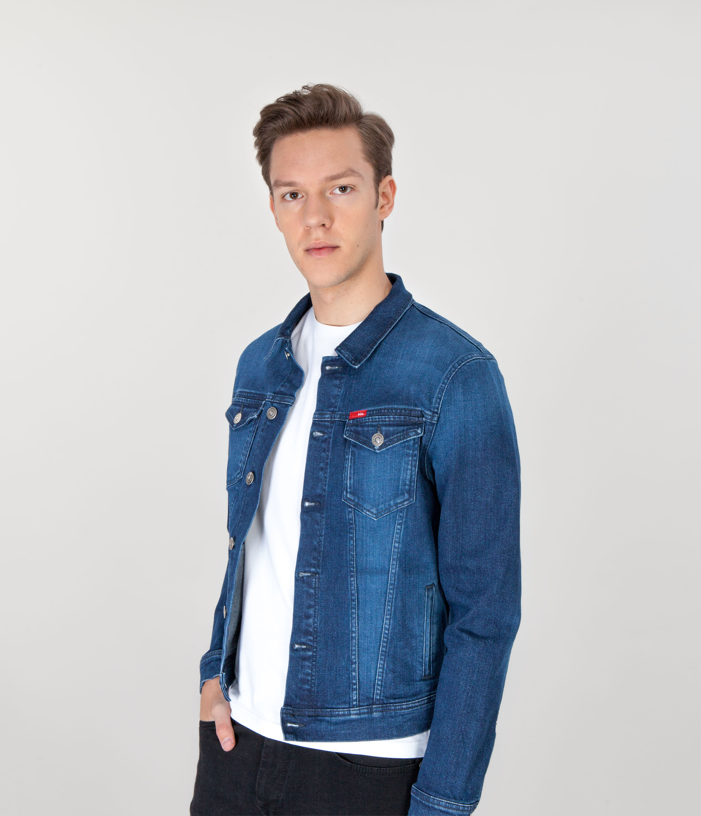 Куртка джинсовая с длинными рукавами и манжетами на пуговицах. Вытертый эффект. Нагрудные карманы с клапанами и боковые карманы. Металлические пуговицы для застёжки.