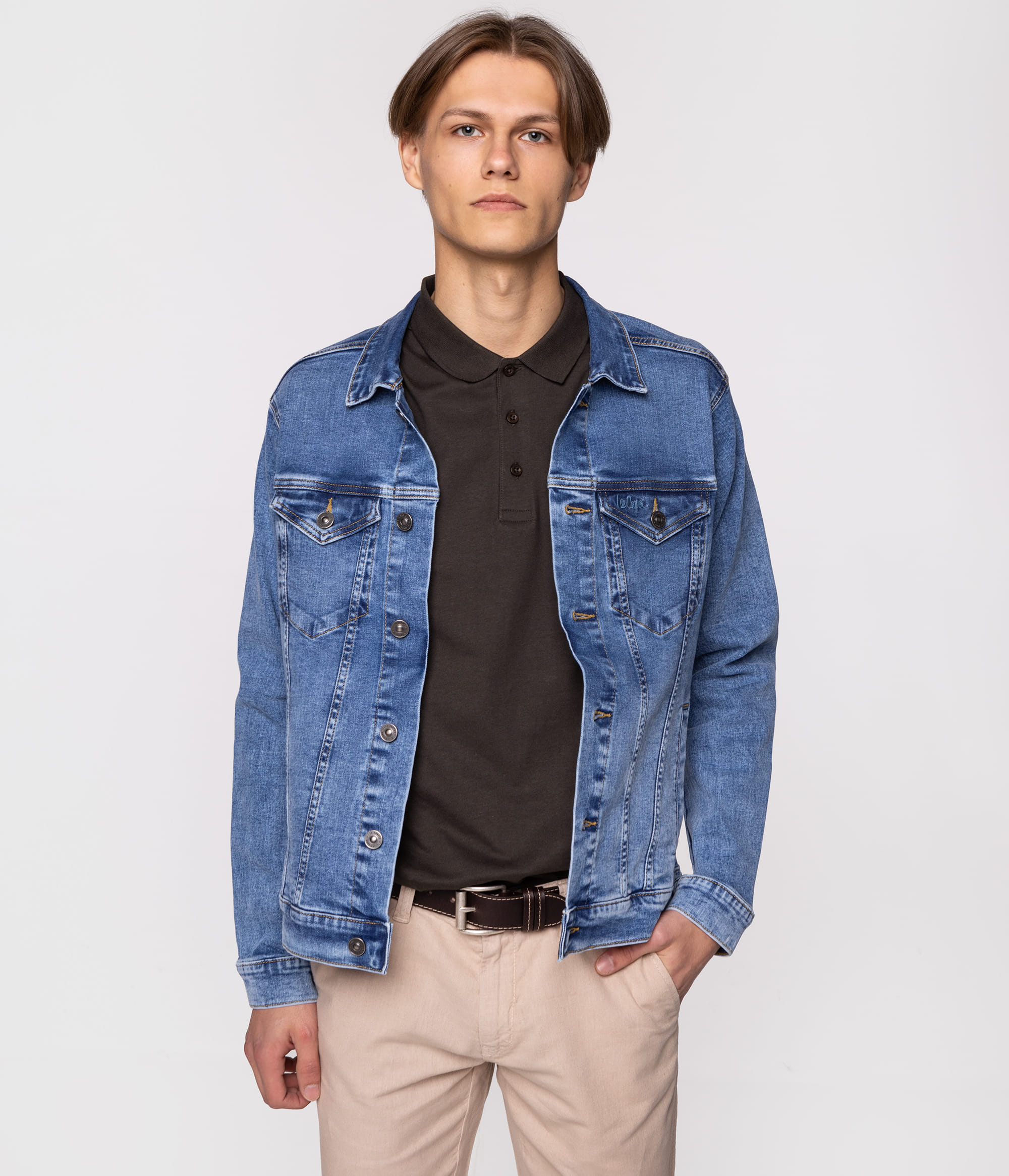 Джинсовка Mauro 1223 — классическая мужская куртка стандартного кроя, отличный вариант для тех, кто ценит классический, неподвластный времени стиль, но с нотками современности. Изготовленная из высококачественного денима с добавлением спандекса, она обеспечивает комфорт, эластичность и долговечность. Характеризуется тонким эффектом «потертого» денима, что придаёт ей характерный, слегка состаренный вид, идеальный для повседневного стиля. Универсальная и полезная в любой ситуации. С годами она будет выглядеть ещё лучше благодаря естественным следам носки. Застёгивается на пуговицы, воротник отложной, два передних кармана с клапанами на пуговицах, открытые боковые карманы, манжеты на пуговицах, регулировка сзади по низу на пуговицах. У нашей модели рост 186 см., размер L.