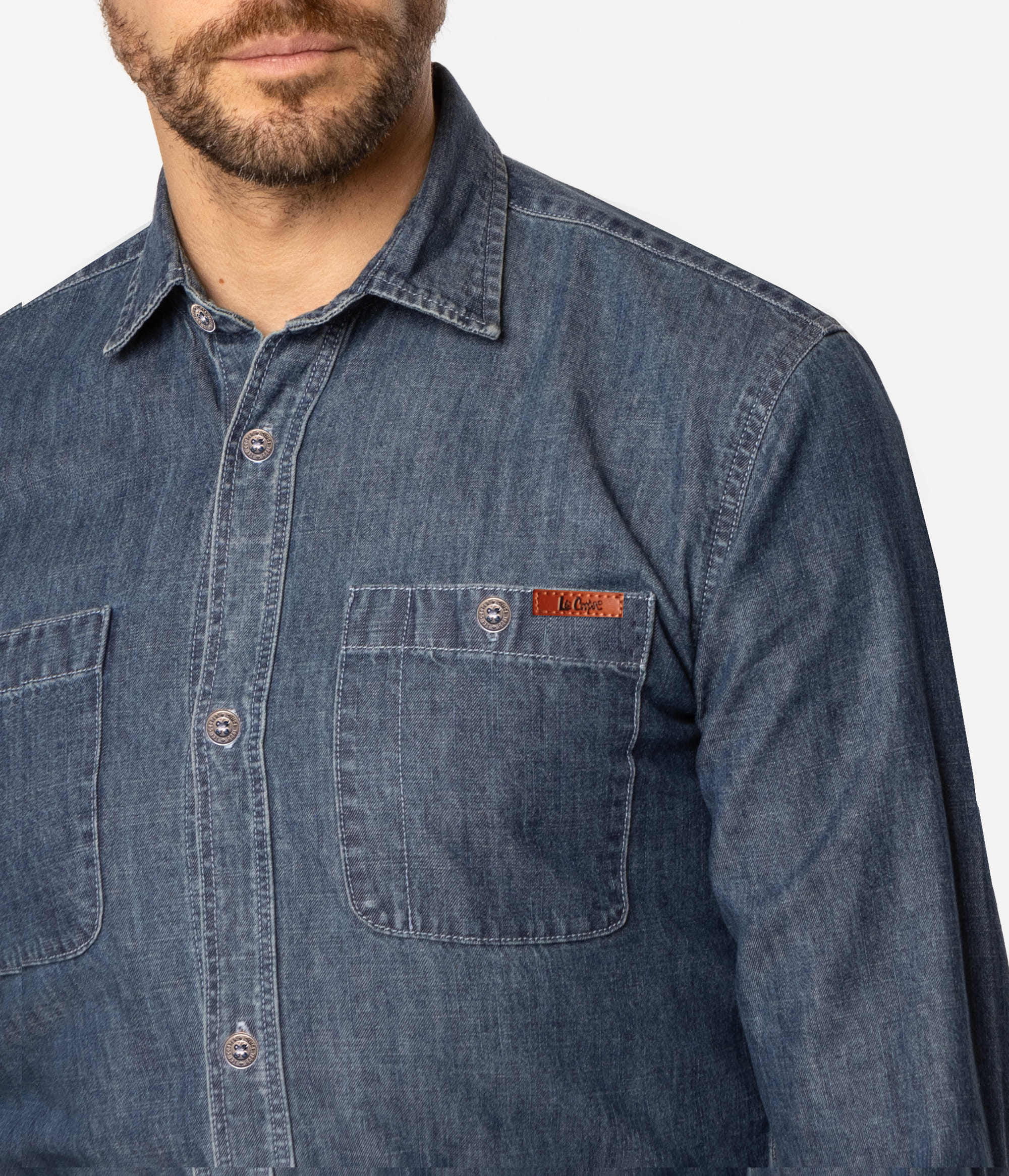 Рубашка из денима стандартного кроя — обязательная вещь в гардеробе каждого мужчины. Рубашка застёгивается на контрастные белые пуговицы, что придаёт ей современный характер. Благодаря двум накладным карманам и неровным потёртостям из денима — отличный выбор для повседневного стиля, сочетающего классику с современностью. Подходит для повседневных комплектов, сочетает в себе комфорт и модный вид.