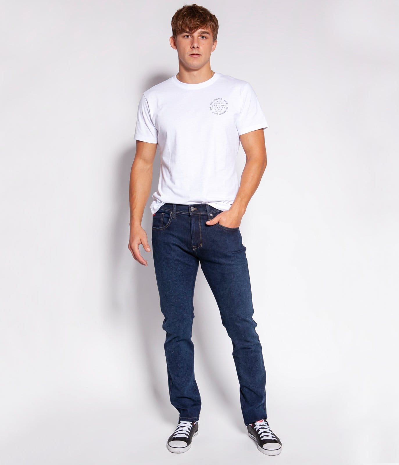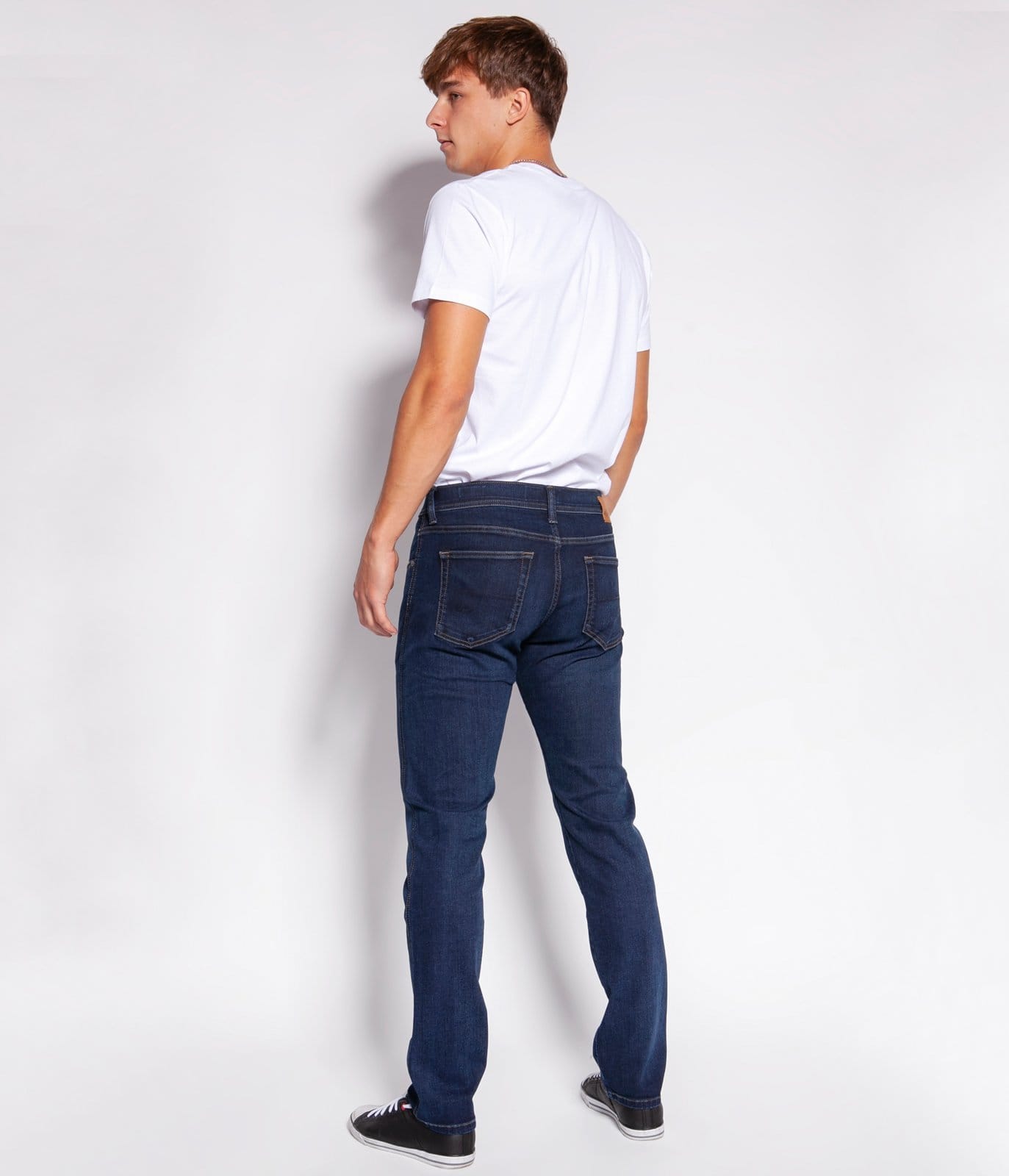 Посадка средняя, застёжка на молнию. Эта классическая модель джинсов одна из самых популярных, слегка сужается к низу. Стильная потёртость и прочная качественная джинсовая ткань с эластаном делают эти джинсы удобными. Они будут подходить для большинства фигур.