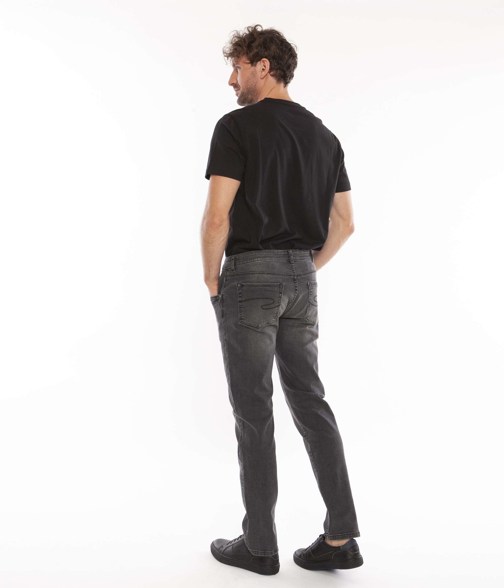 Мужские джинсы серого цвета для стройных людей, которые следят за модой и носят узкие штанины. Эластан делает их удобными с первой примерки и обеспечивает комфорт движения. Slim fit - это джинсы с облегающими, но не обтягивающими штанинами. Посадка средняя, застёжка: молния.