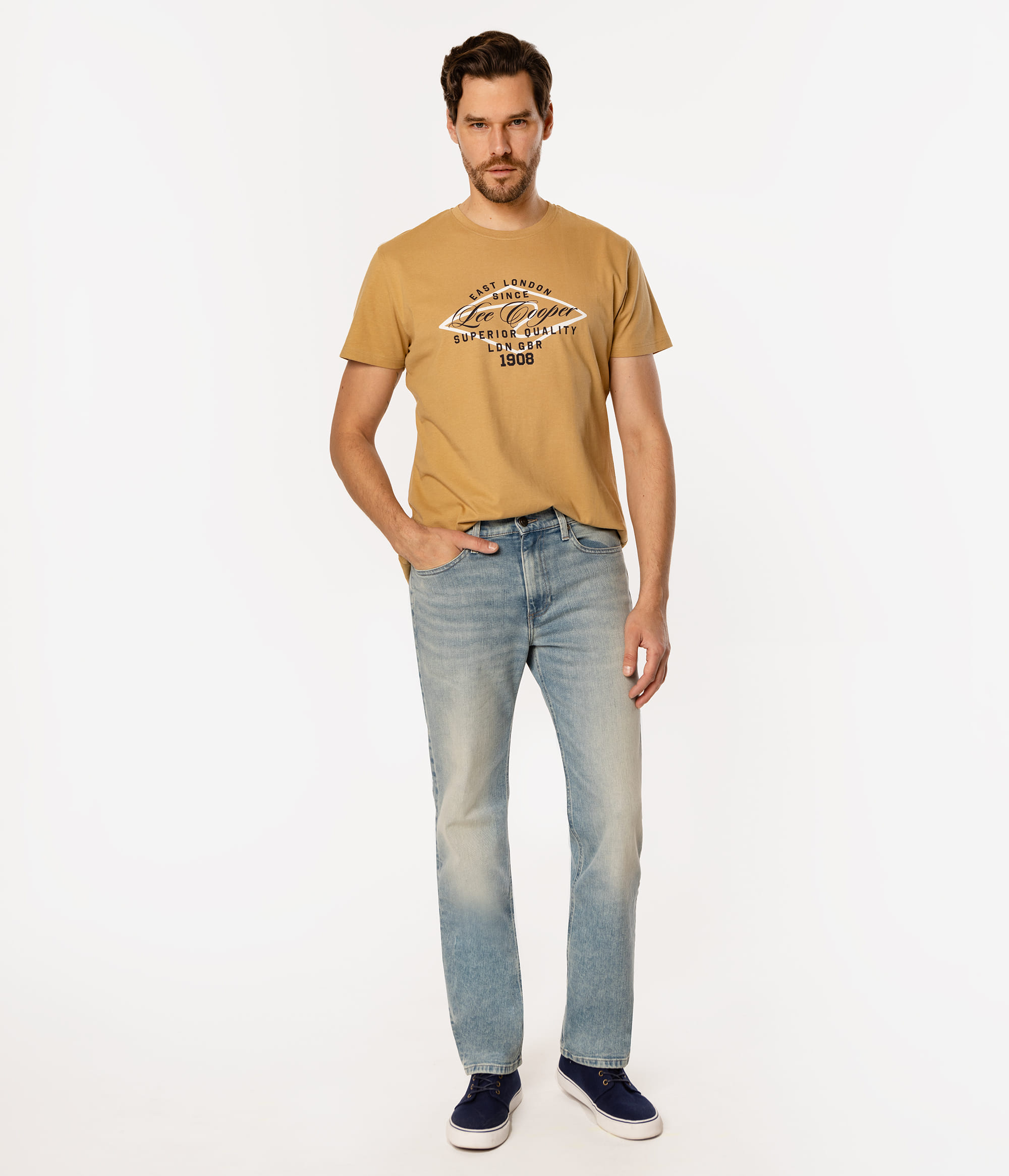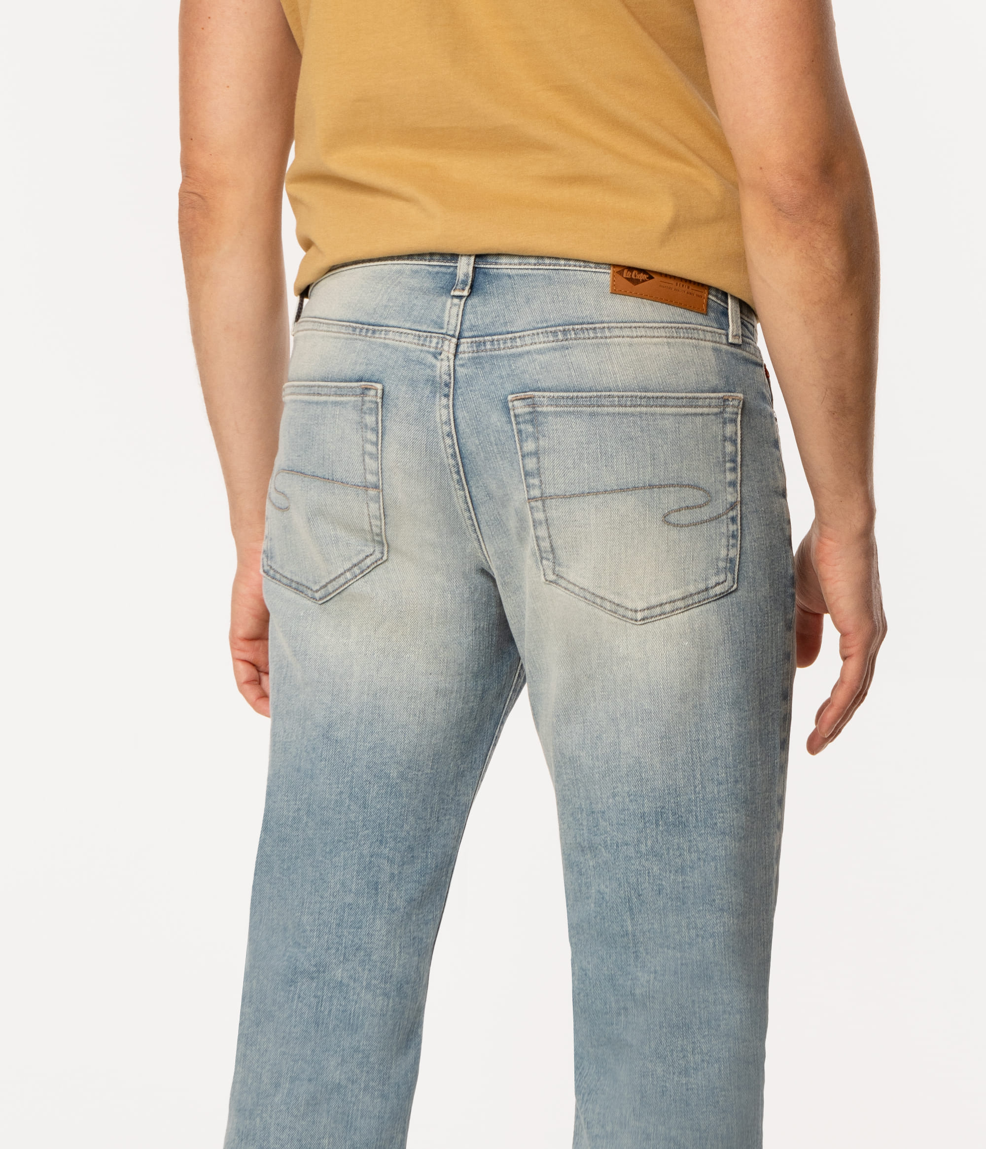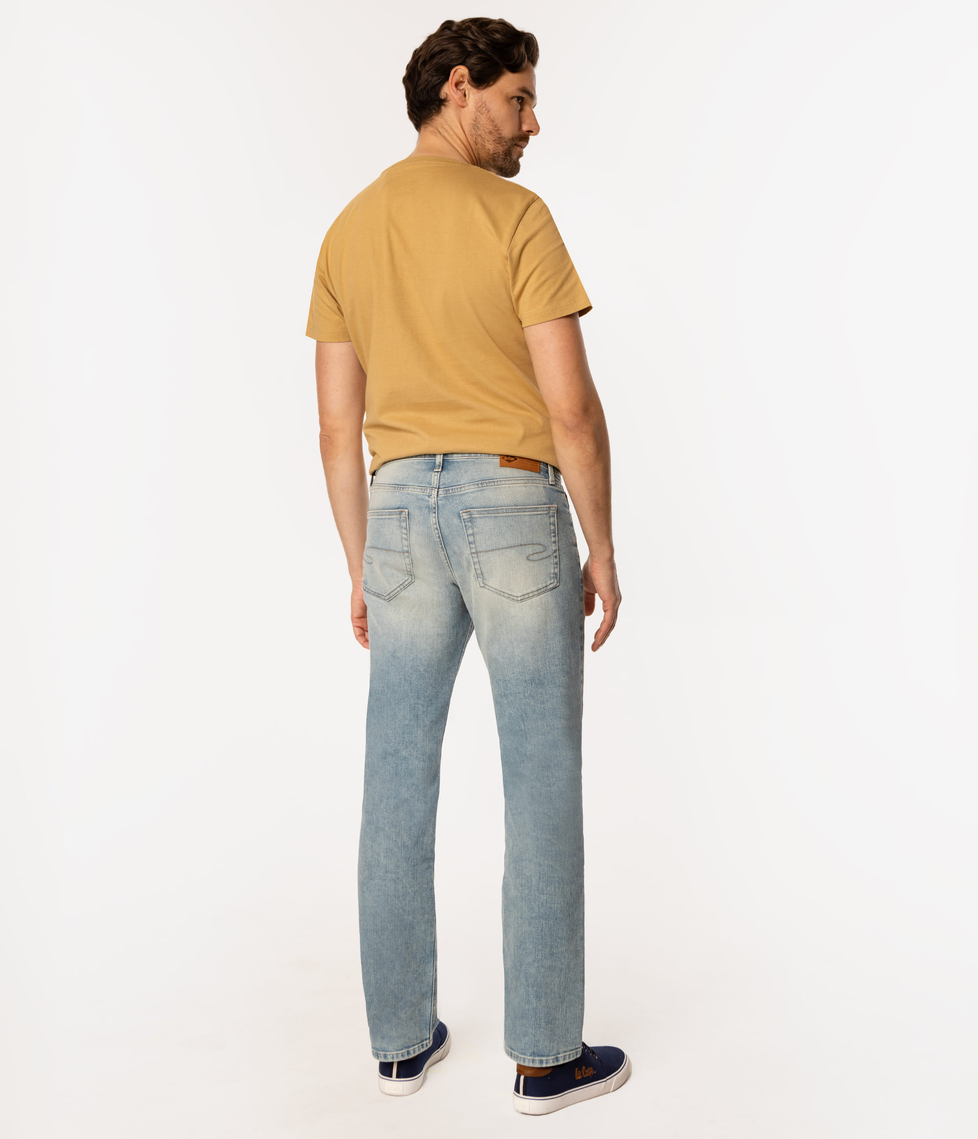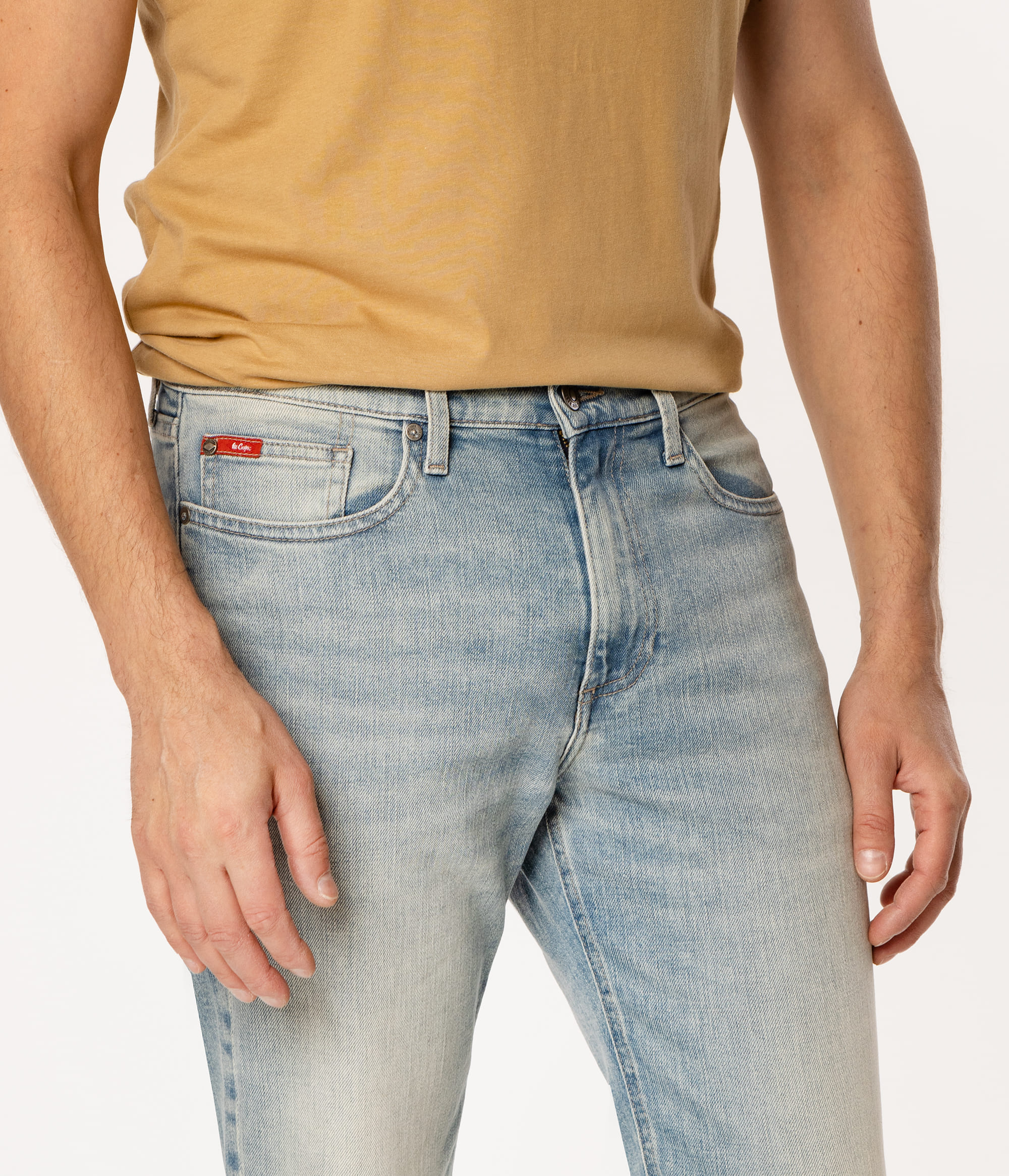 Мужские светлые джинсы со средней посадкой, прямыми штанинами и стандартным кроем regular. Модель для тех, кто не любит узкие штанины. Изготовлены из хлопка с добавлением эластичности, что обеспечивает комфорт ношения и свободу движений. Рост нашей модели 186 см., носит размер 32\32.
