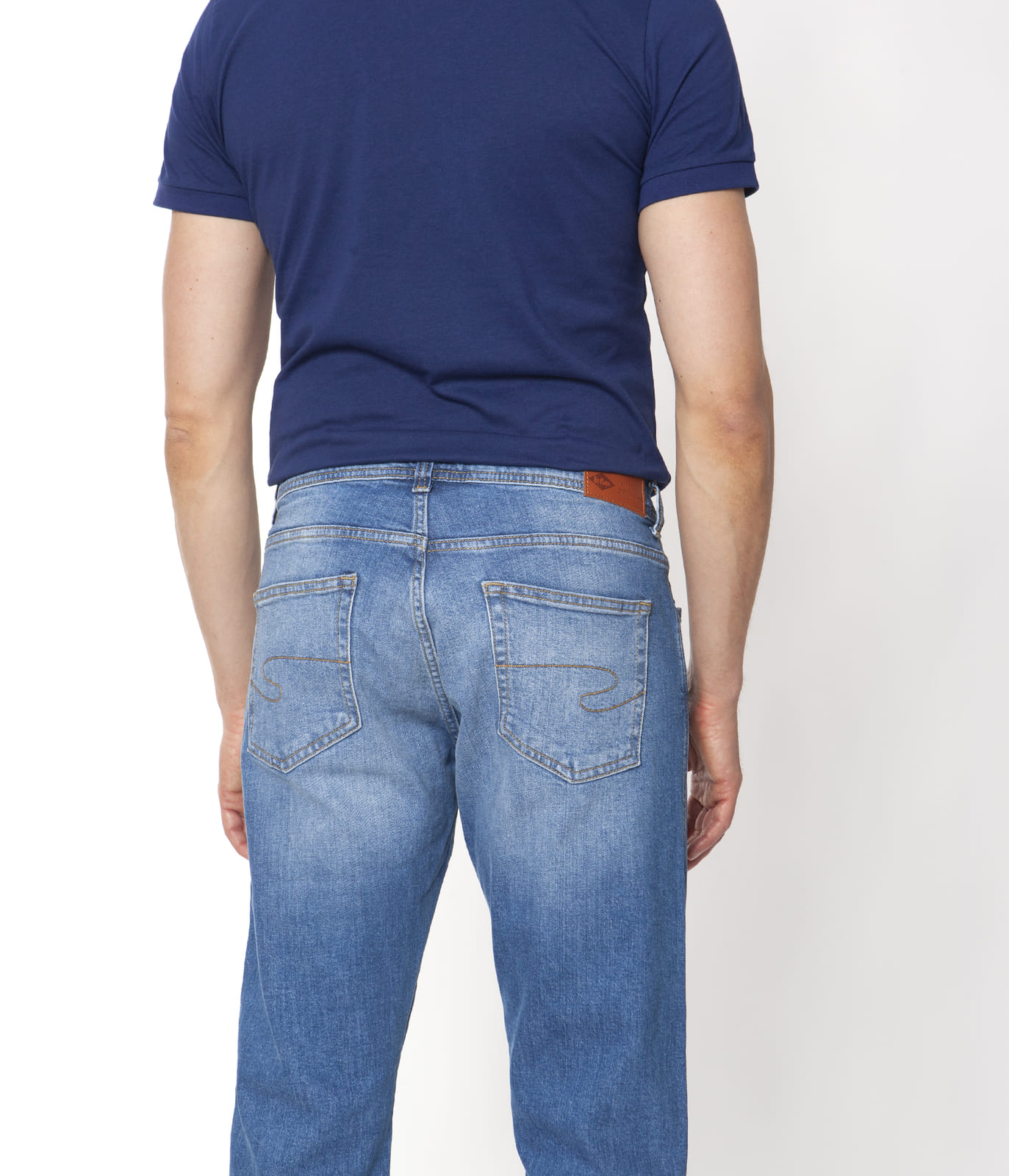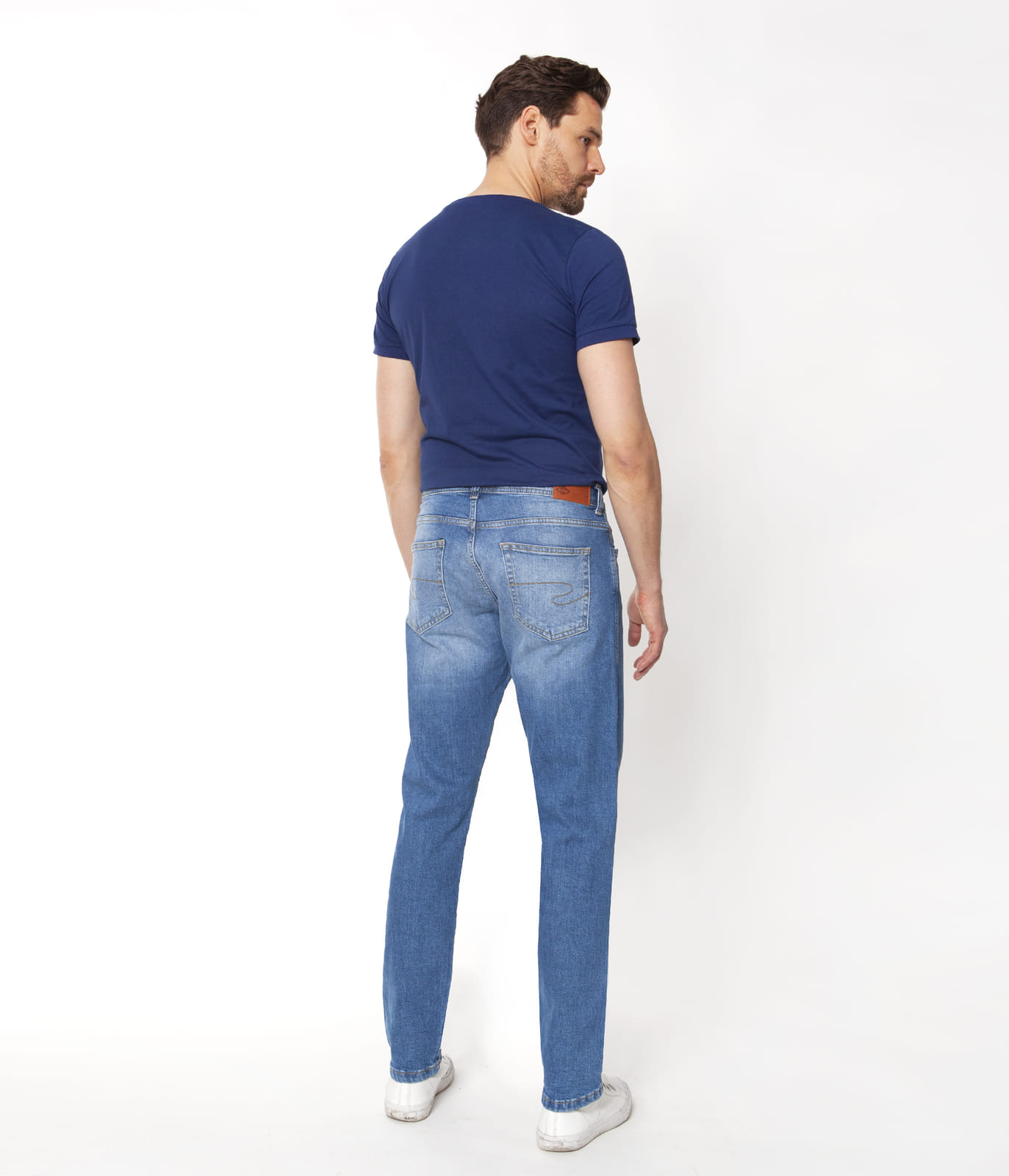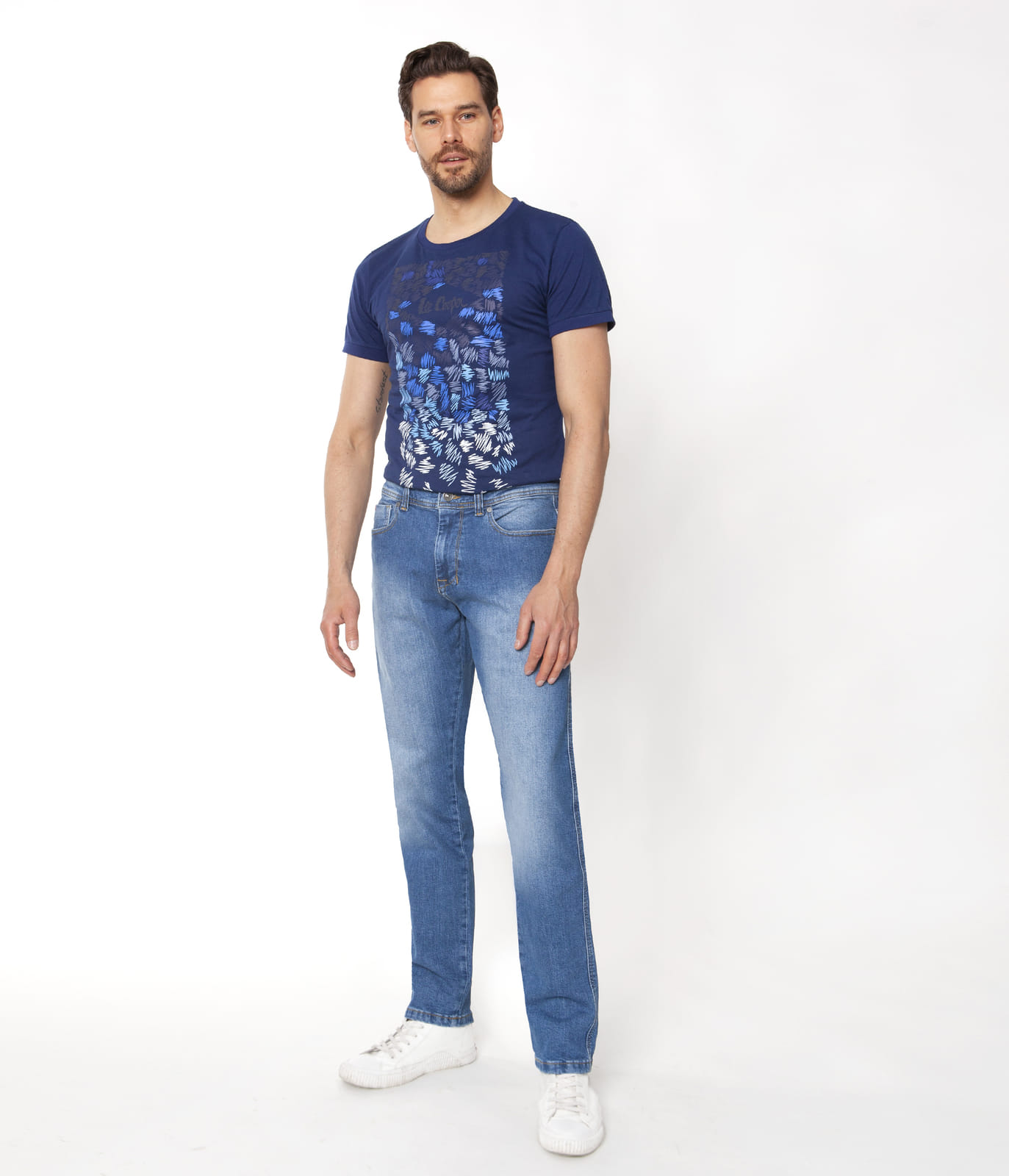 Мужские джинсы в одном из самых популярных фасонов - классический, с немного зауженными ногами, которые прямы от бедра и начинают сужаться в коленях для идеального прилегания к щиколоткам. Они подходят для большинства фигур, обеспечивают комфорт и удобство ношения. Посадка средняя, застёжка: молния, пять карманов.
