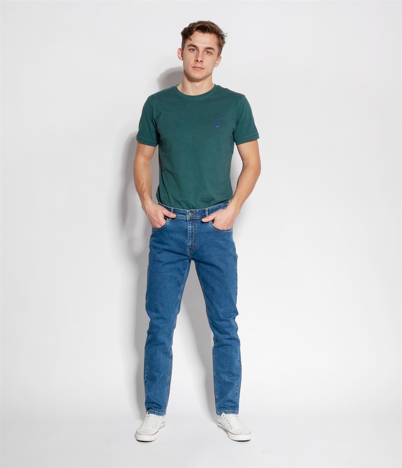Мужские брюки одного из самых популярных стилей Tapered - классика, со слегка зауженными штанинами, которые идут прямо от бёдер и сужаются в коленях, чтобы идеально сидеть на щиколотках. Стильная стирка и прочный деним с добавлением эластана делают эти джинсы очень удобными. Они хорошо подходят большинству людей, форма не искажает вашу фигуру. Застёжка - молния, посадка средняя, 5 карманов, пояс со шлевками.