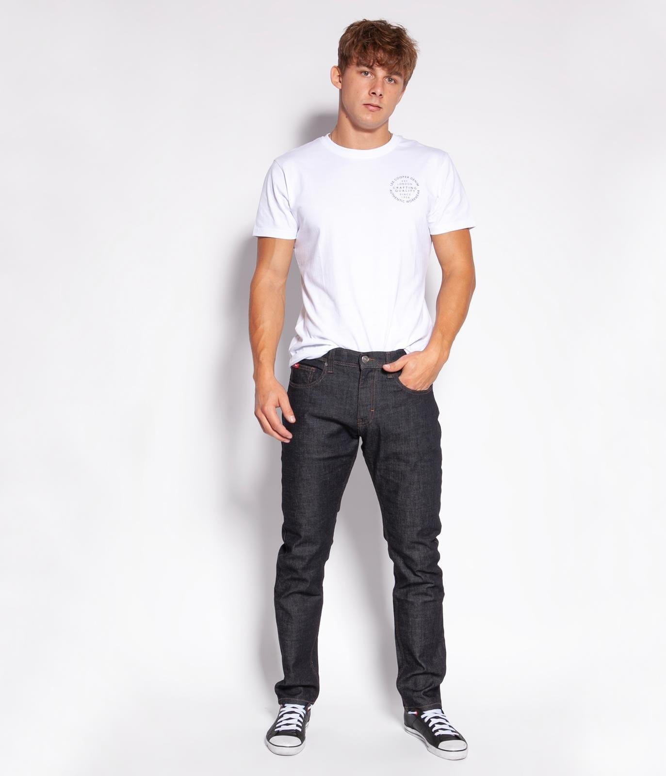 Мужские джинсы в одном из самых популярных стилей TAPERED - классика с немного зауженными ногами, которые прямые от бёдер и начинают сужаться вокруг колен, чтобы идеально подходить к лодыжкам. Зауженная форма не искажает силуэт, а прочный материал с эластаном делает эти джинсы удобными, обеспечивающий комфорт и удобство движения, подходят для большинства фигур. На молнии, имеют 5 карманов.