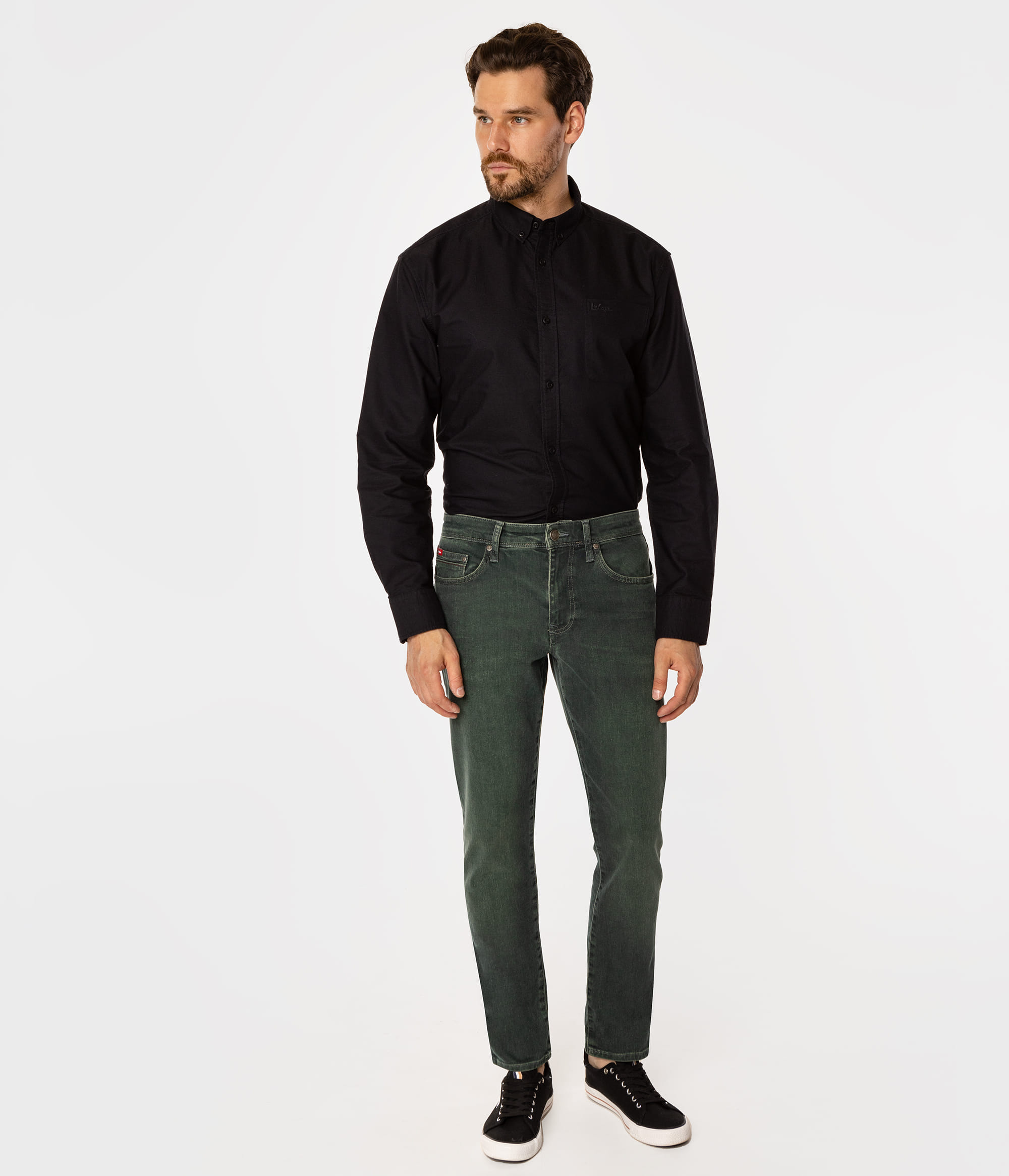 Зауженные мужские джинсы Lee Cooper LONDON – модные джинсовые брюки, которые выделят вас из толпы. Выбирайте джинсы Lee Cooper, сочетающие в себе комфорт, стиль и функциональность. Изготовленные из качественного хлопка с добавлением эластана, они идеально садятся по фигуре и гарантируют полную свободу движений. Эти брюки отличаются оригинальным джинсовым, потёртым цветом, который придаст современную выразительность любому стилю. У нашей модели рост 186 см., размер 32\32. Доступны в трёх цветах: GREEN, BLACK и BRUSHED USED.