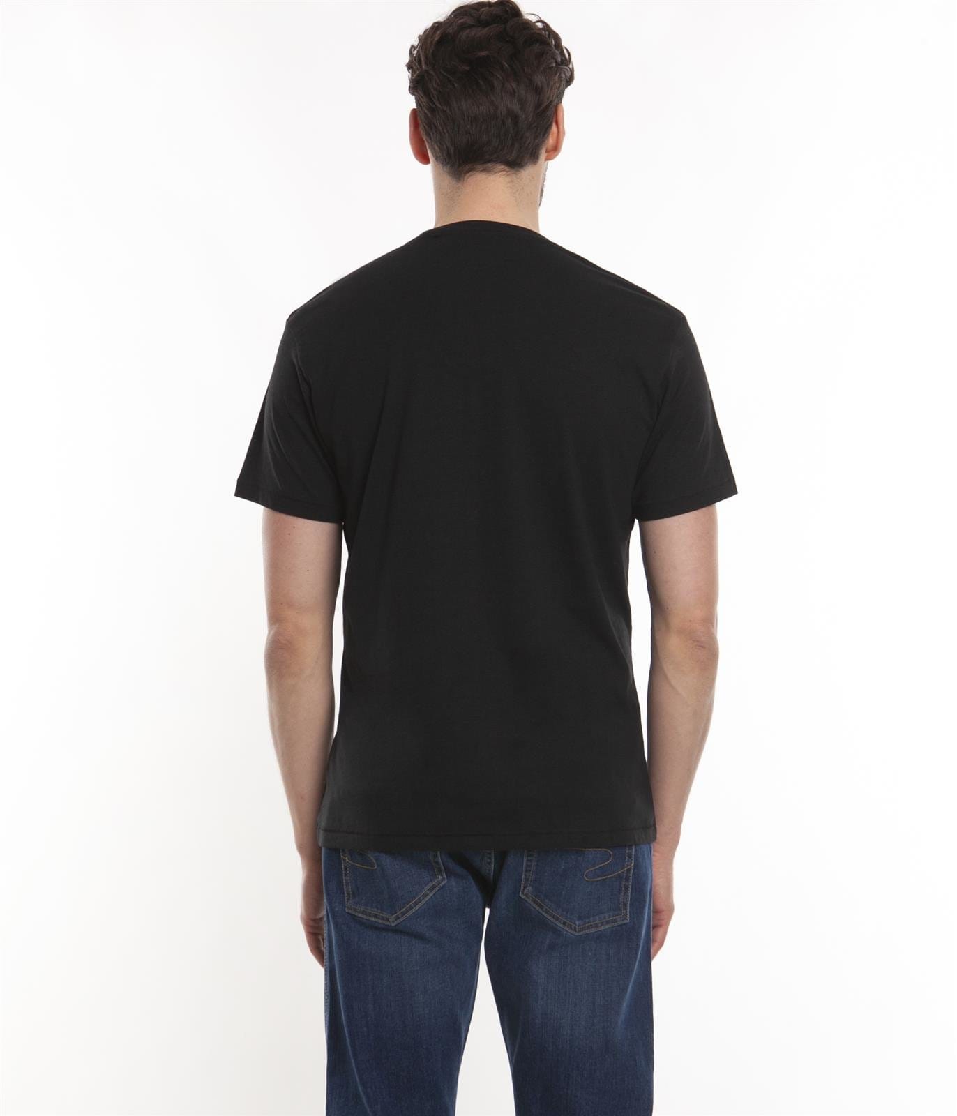 Классическая мужская майка чёрного цвета с принтом спереди, прямого кроя, изготовлена из 100% хлопка с круглым вырезом горла.