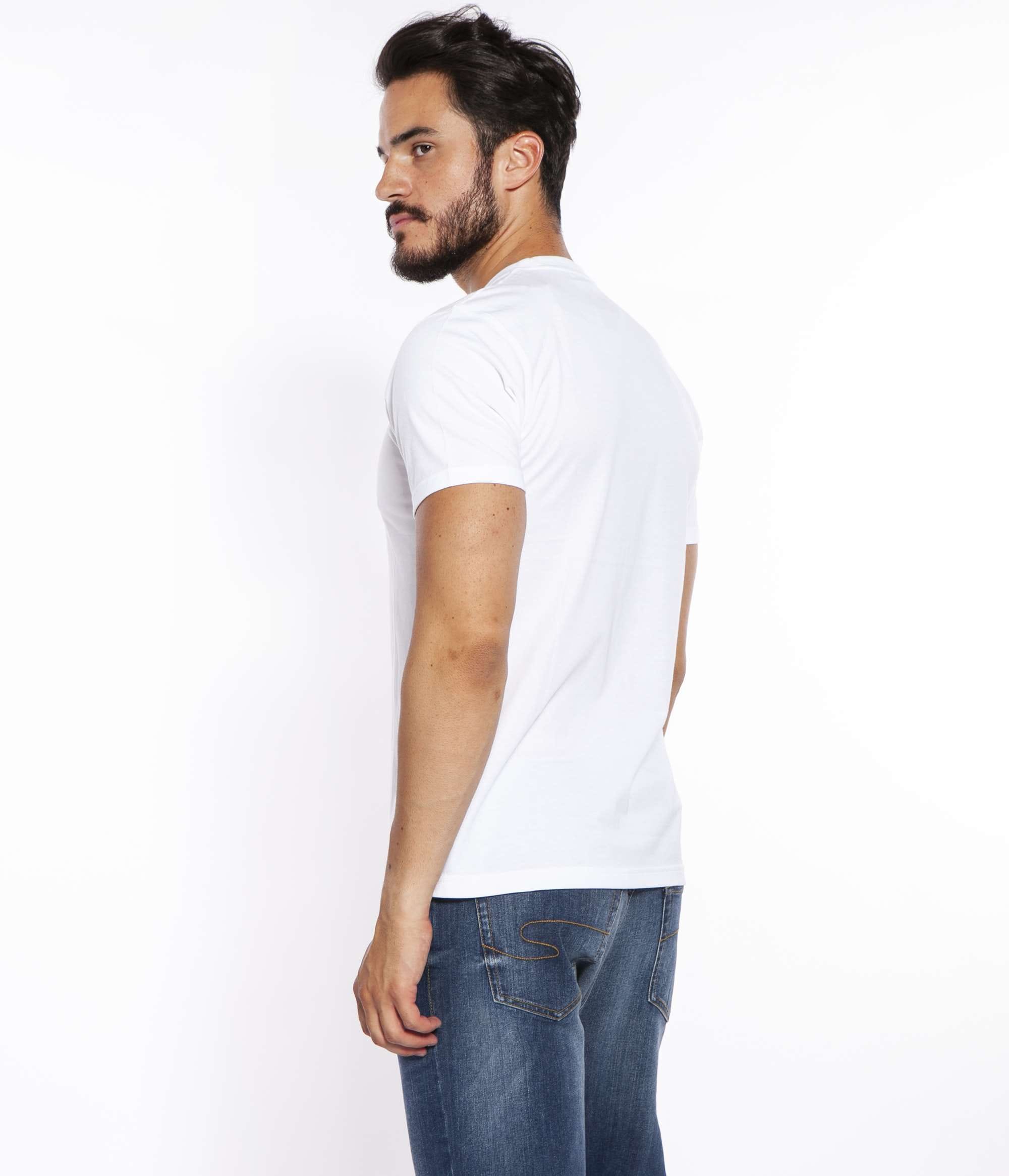Хлопковая мужская футболка приталенного кроя slim с круглым вырезом горловины. Имеет короткие рукава. Передняя часть футболки украшена принтом контрастного цвета.