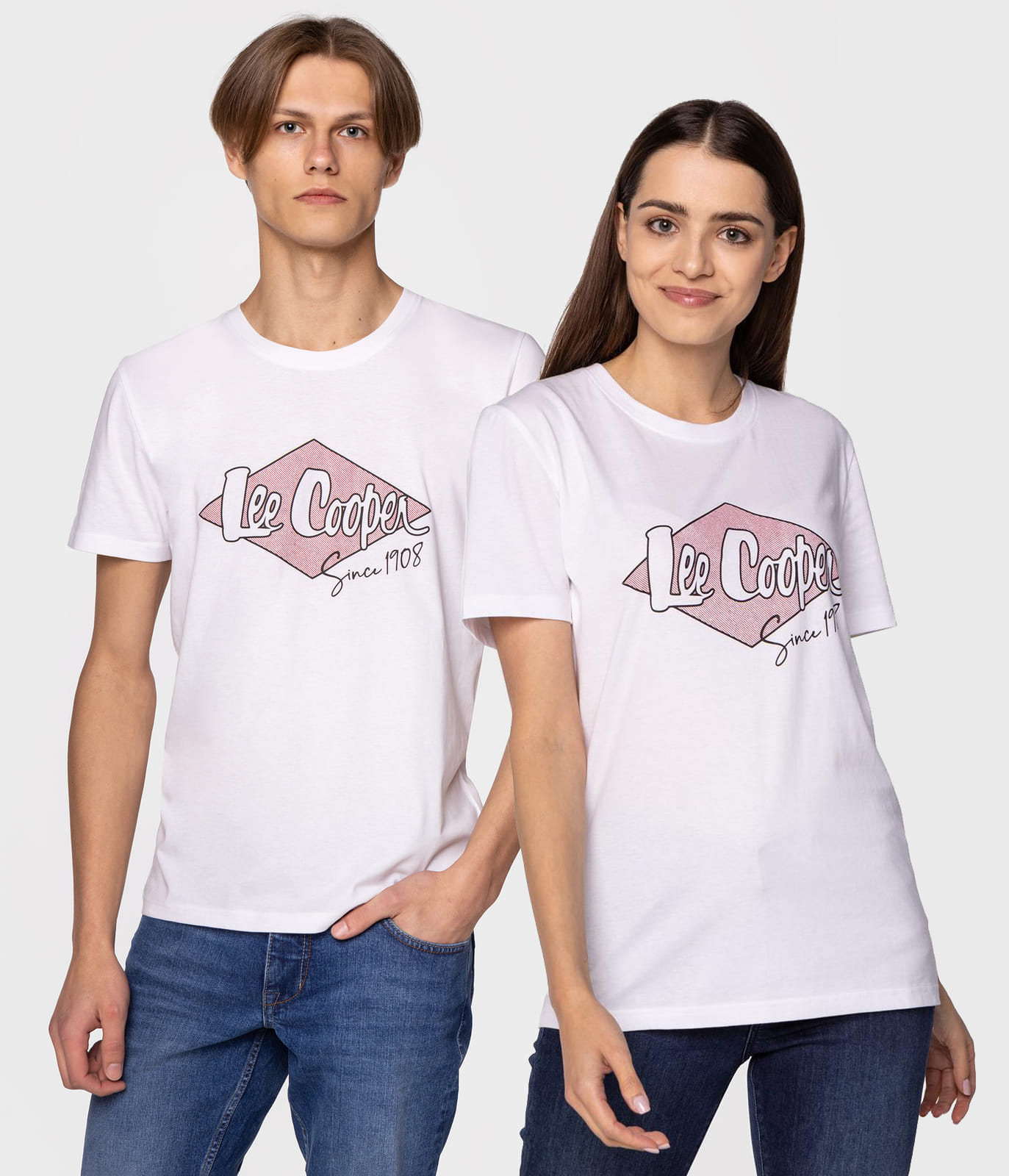Майка унисекс с фирменным принтом с логотипом LEE COOPER из 100% дышащего хлопка и круглым вырезом горла. В двух цветах на выбор: white или grey melange.