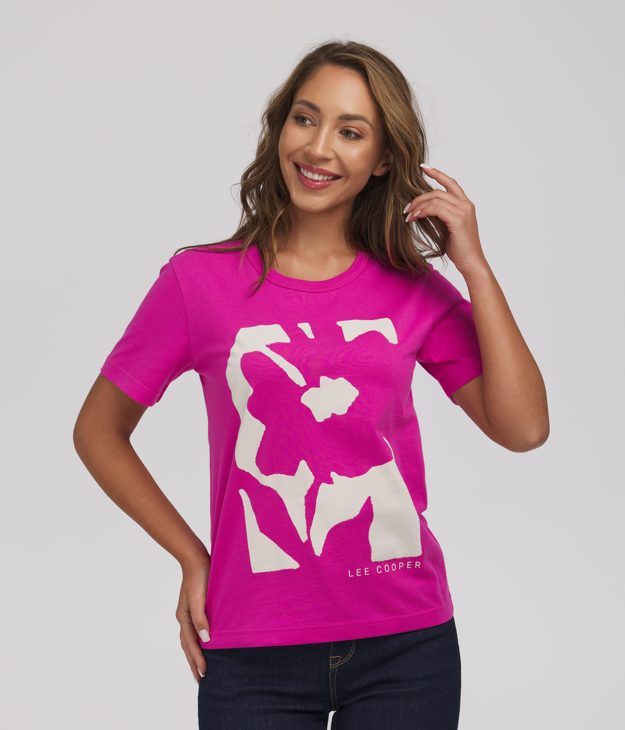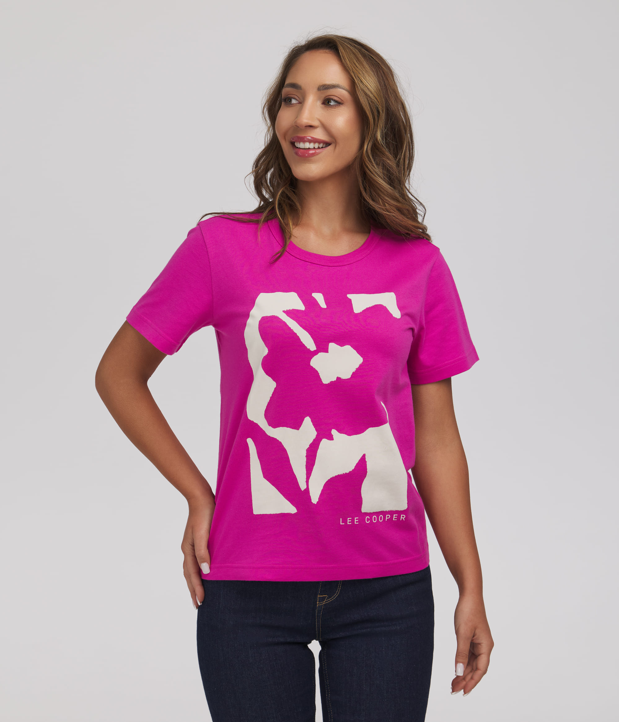 Майка FLOWER3 1160 ROSE VIOLET – энергия фуксии в повседневном исполнении. Женская футболка FLOWER3 розового цвета – это хлопковая футболка прямого кроя с классическим вырезом горла, украшенная крупным, привлекательным принтом на передней части.