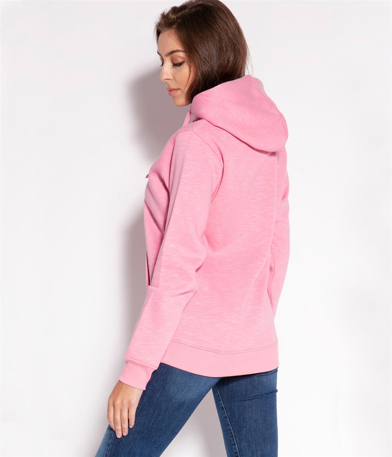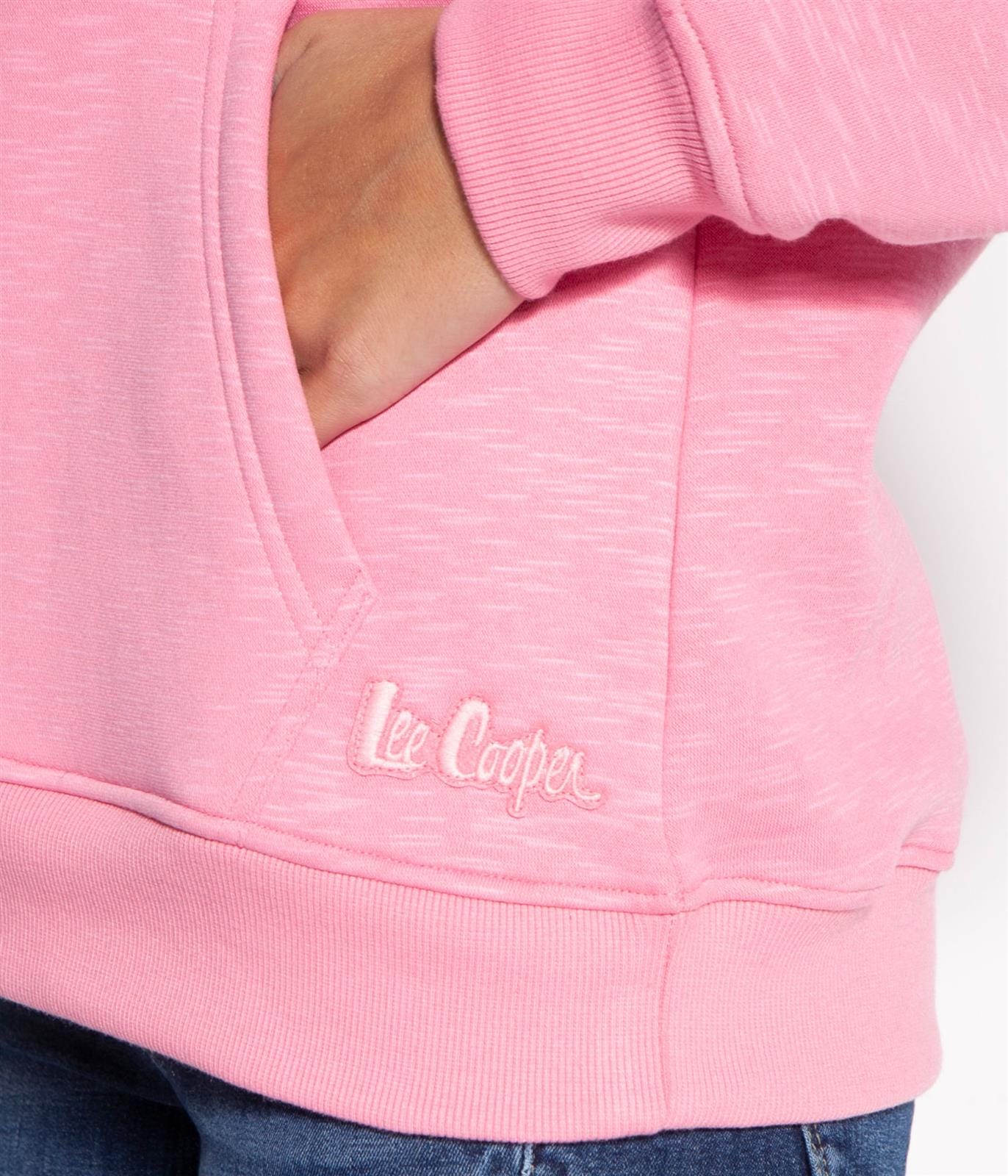 Женский розовый свитшот с капюшоном и завязками. Он станет основой вашего гардероба в городском стиле. Изготовлен из мягкого материала, который обеспечит комфорт в течение всего дня. Снизу и на манжетах есть трикотажная резинка. Карман-кенгуру спереди. Под левым карманом вышит логотип Lee Cooper.