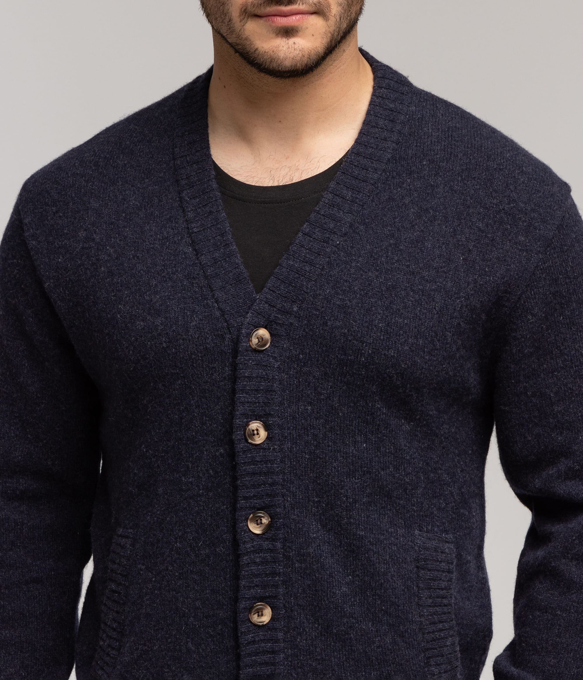Мужской свитер BERYL 5440 — классический и комфортный, тёмно-синего цвета — отличный выбор для мужчин, ценящих стиль. Этот кардиган с двумя практичными карманами и V-образным вырезом застёгивается на пуговицы и выполнен из мягкой шерстяной ткани для вашего комфорта.