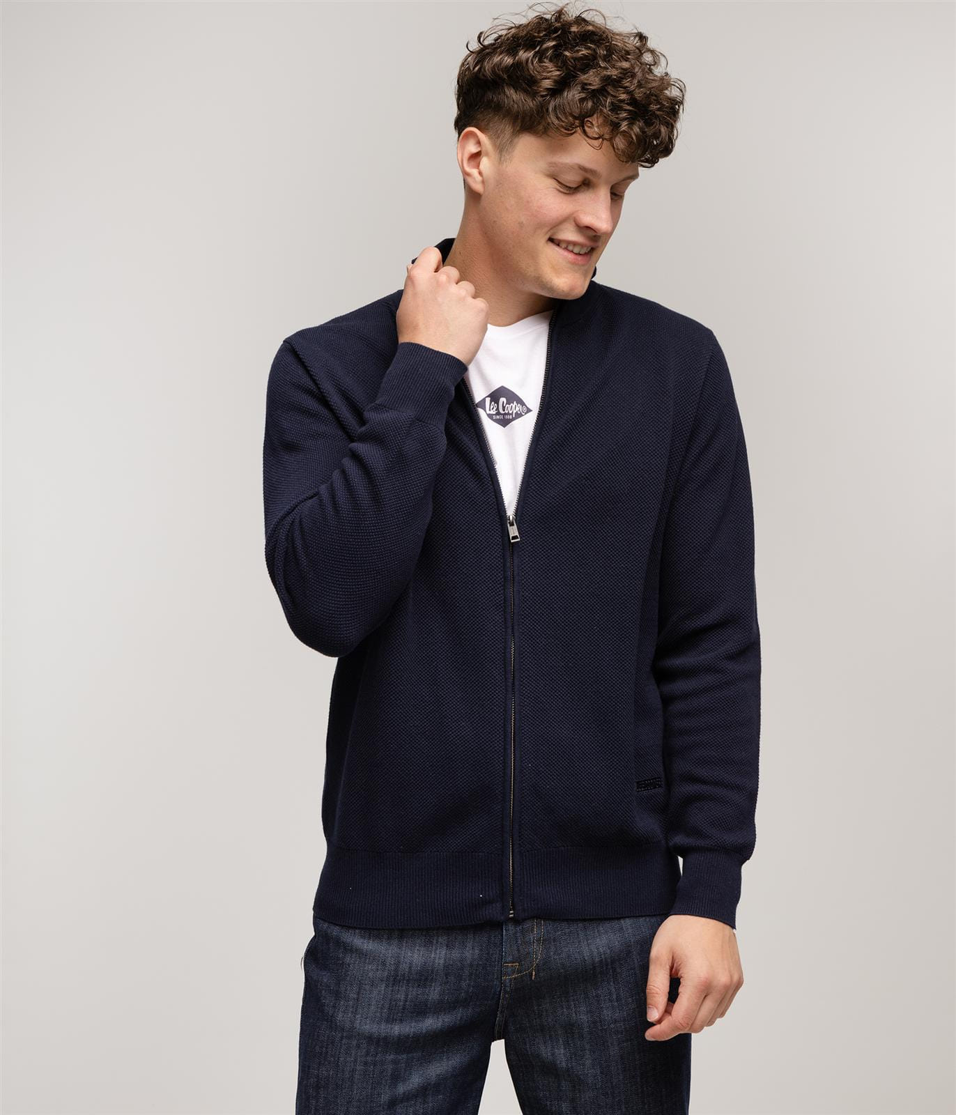 Мужской тёмно-синий кардиган RABI COTTON NAVY — классический свитер в современной интерпретации, идеальный выбор для тех, кто ценит классический стиль и повседневный комфорт. Застёжка на молнию, изготовленный из высококачественного хлопка, он мягкий, дышащий и комфортный в носке. Современная трёхмерная структура вязки придаёт изделию нотку лёгкости и оригинальности, сохраняя при этом минималистичный и универсальный характер.