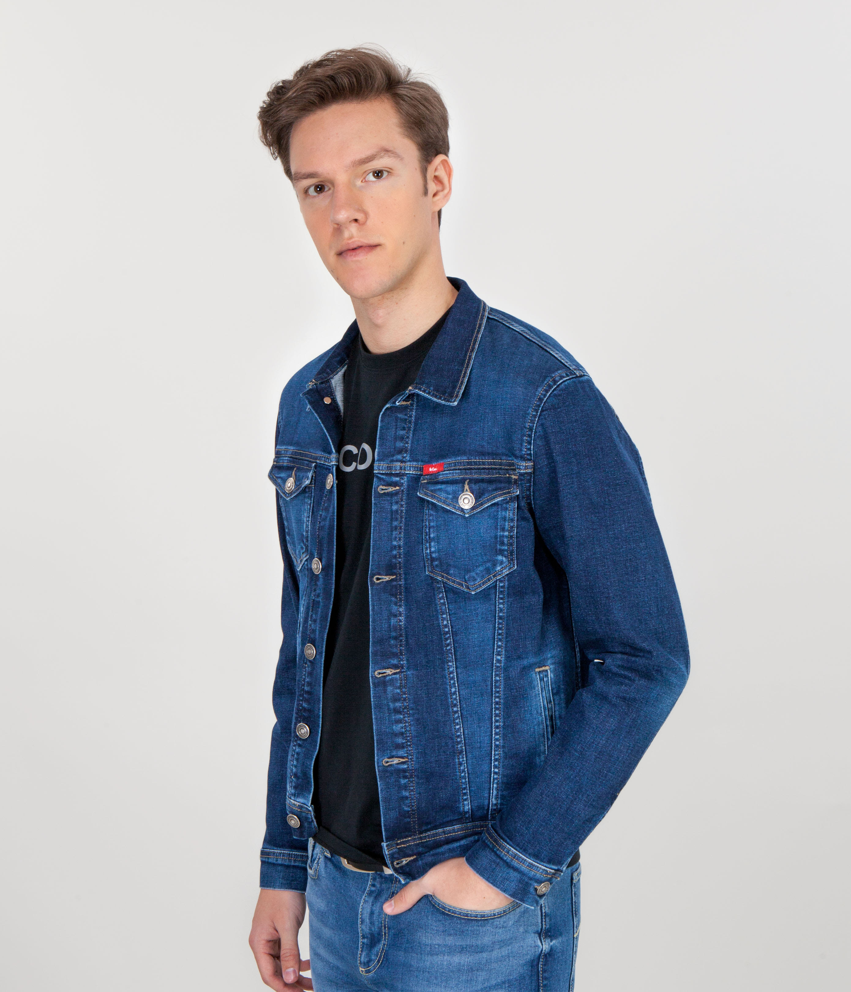 Куртка джинсовая с длинными рукавами и манжетами на пуговицах. Вытертый эффект. Нагрудные карманы с клапанами и боковые карманы. Металлические пуговицы для застёжки.