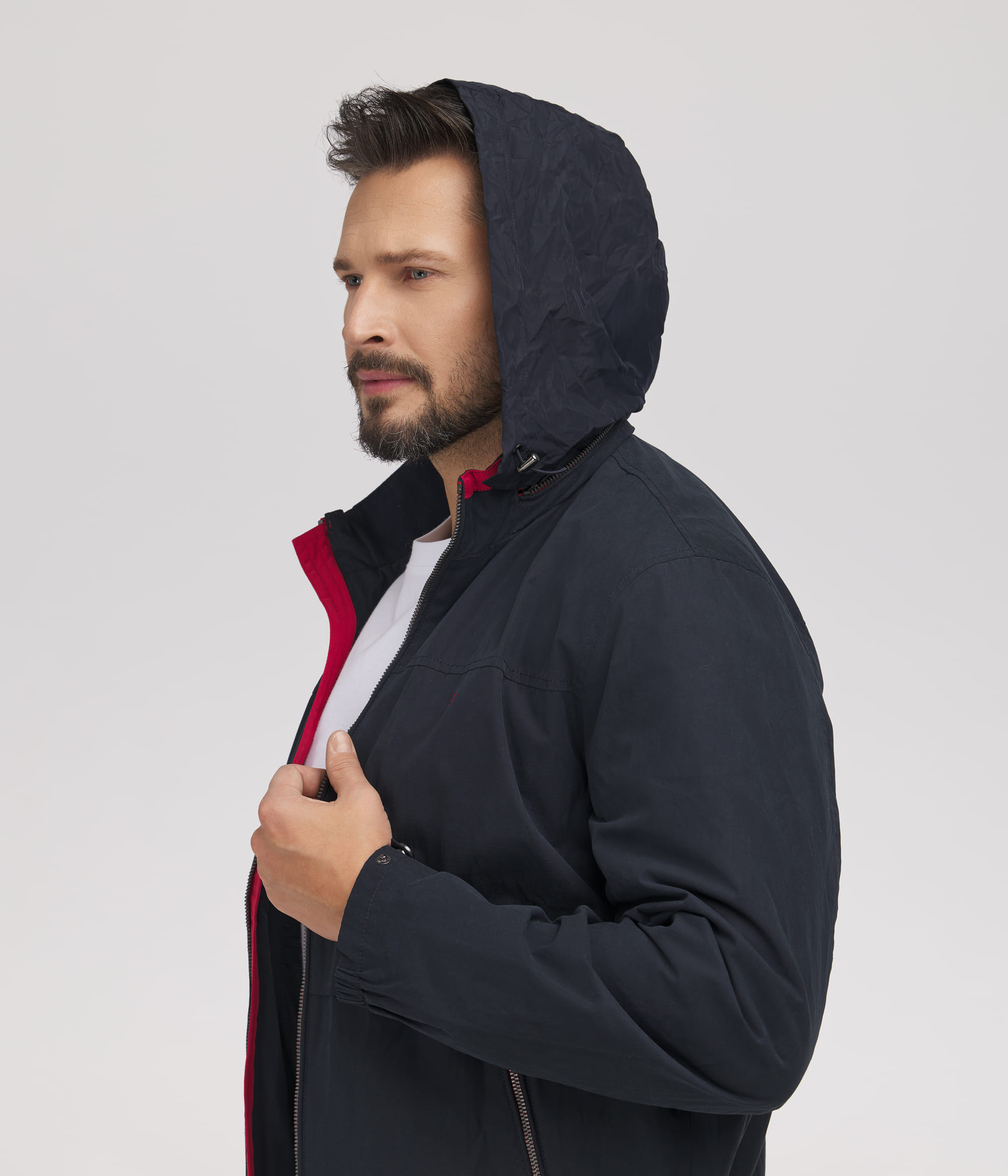 Стандартный крой обеспечивает свободу движений и комфорт, а лёгкая конструкция делает куртку идеальной для переходного сезона. Застёжка-молния гарантирует удобство использования, а тщательно проработанные детали улучшают эстетику и функциональность модели. Куртка также оснащена практичным скрытым капюшоном в воротнике, который обеспечивает дополнительную защиту от ветра и дождя при необходимости, не нарушая минималистичный вид куртки. Это отличный вариант для мужчин, которые ценят практичность и современный стиль.