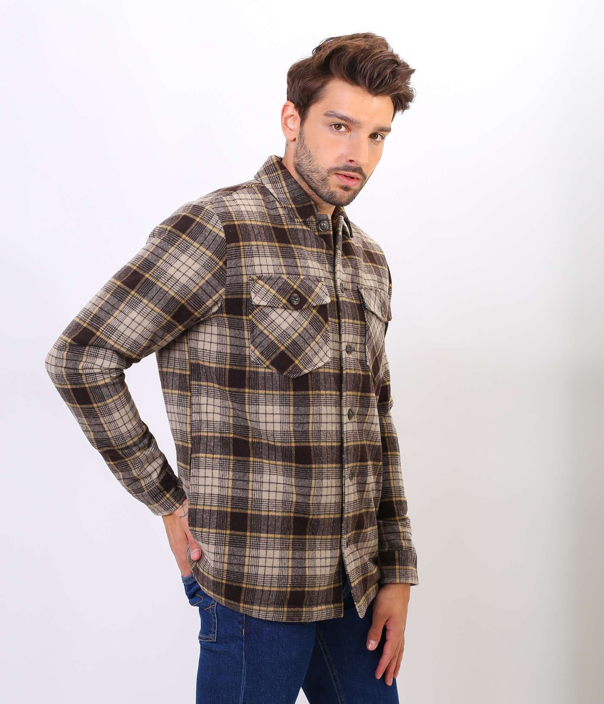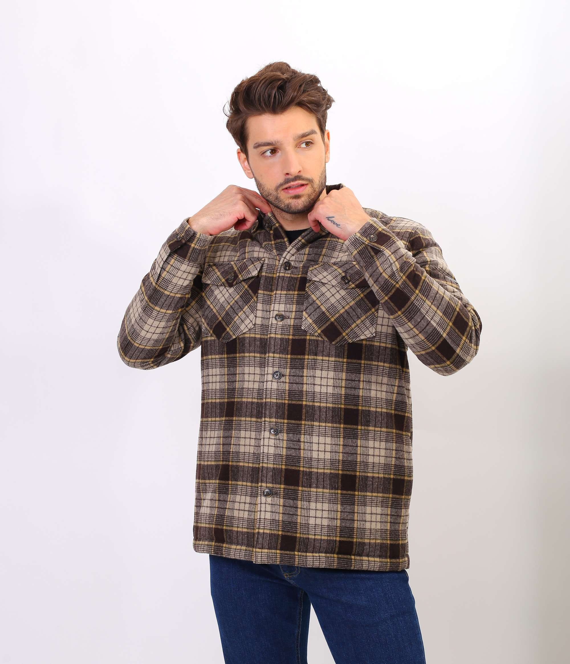 Мужская куртка из ткани с добавлением шерсти, на пуговицах. Два кармана спереди на груди. Регулярная посадка.