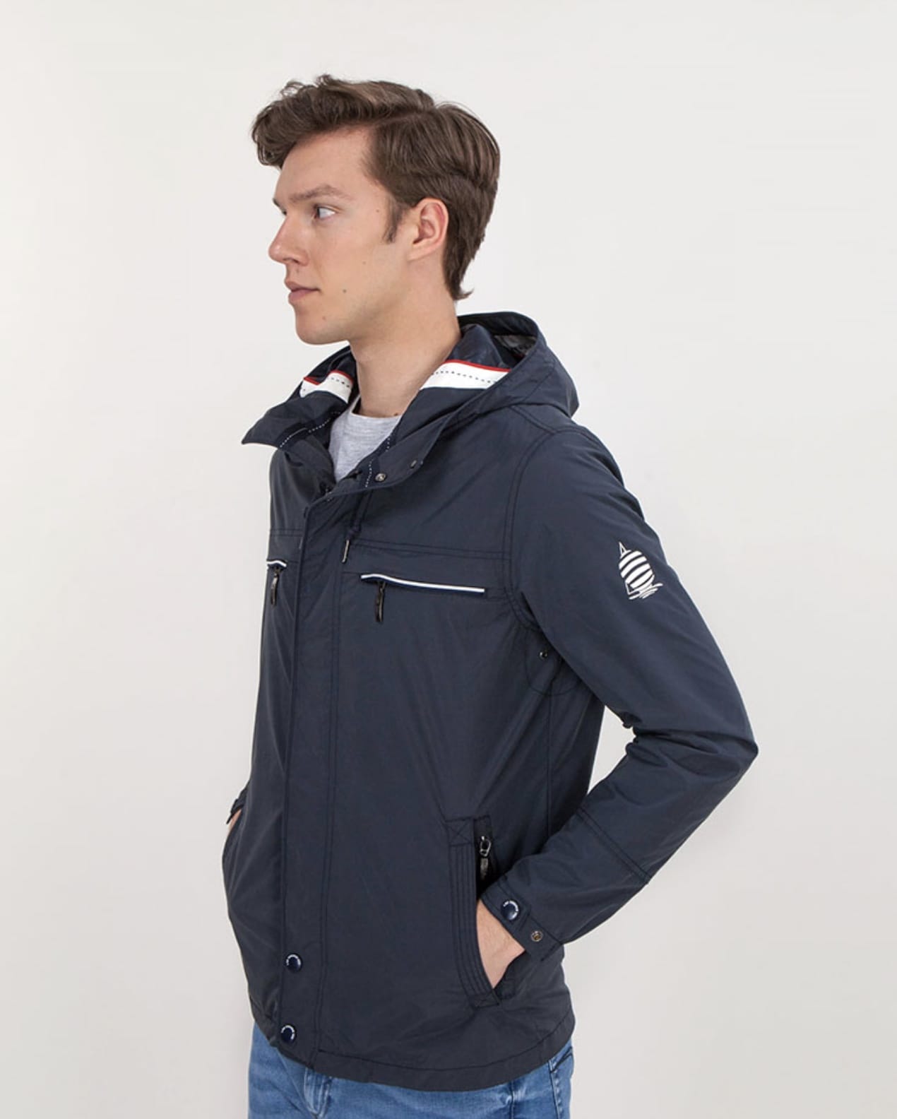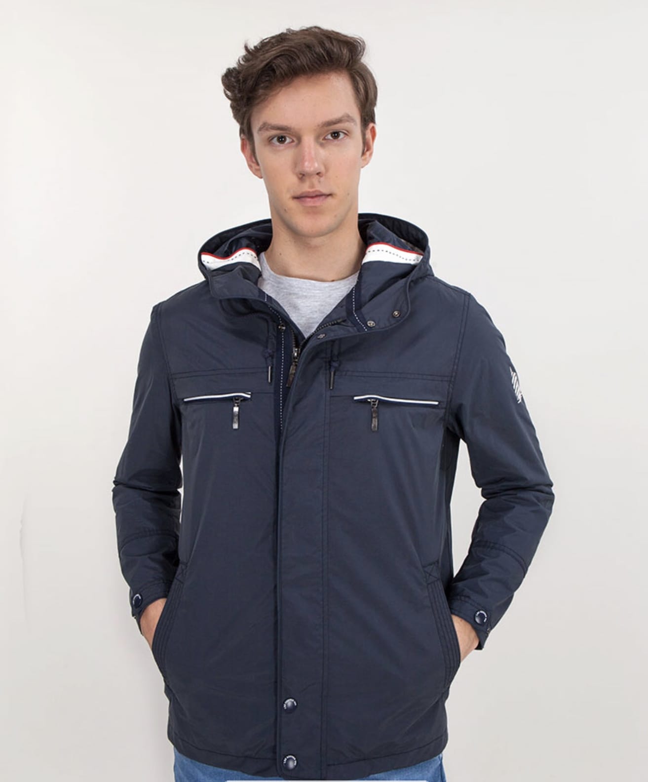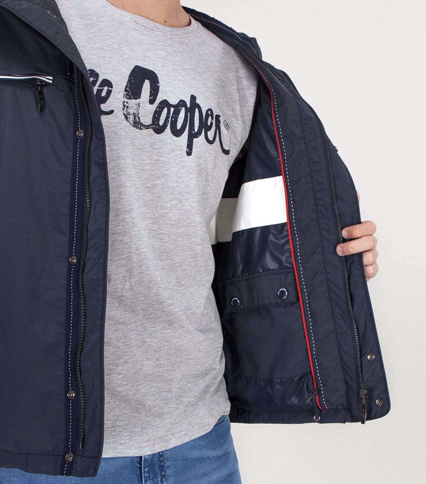 Мужская тёмно-синяя куртка с капюшоном из весенней коллекции Lee Cooper, может стать базовой вещью в вашем гардеробе. Модель прямого кроя, не стесняющая движений. Подходит для повседневной носки. С дорогой отделкой в виде декоративной ленты вдоль капюшона и молнии. Имеется большое количество наружных и внутренних карманов. Регулируется ширина рукавов.