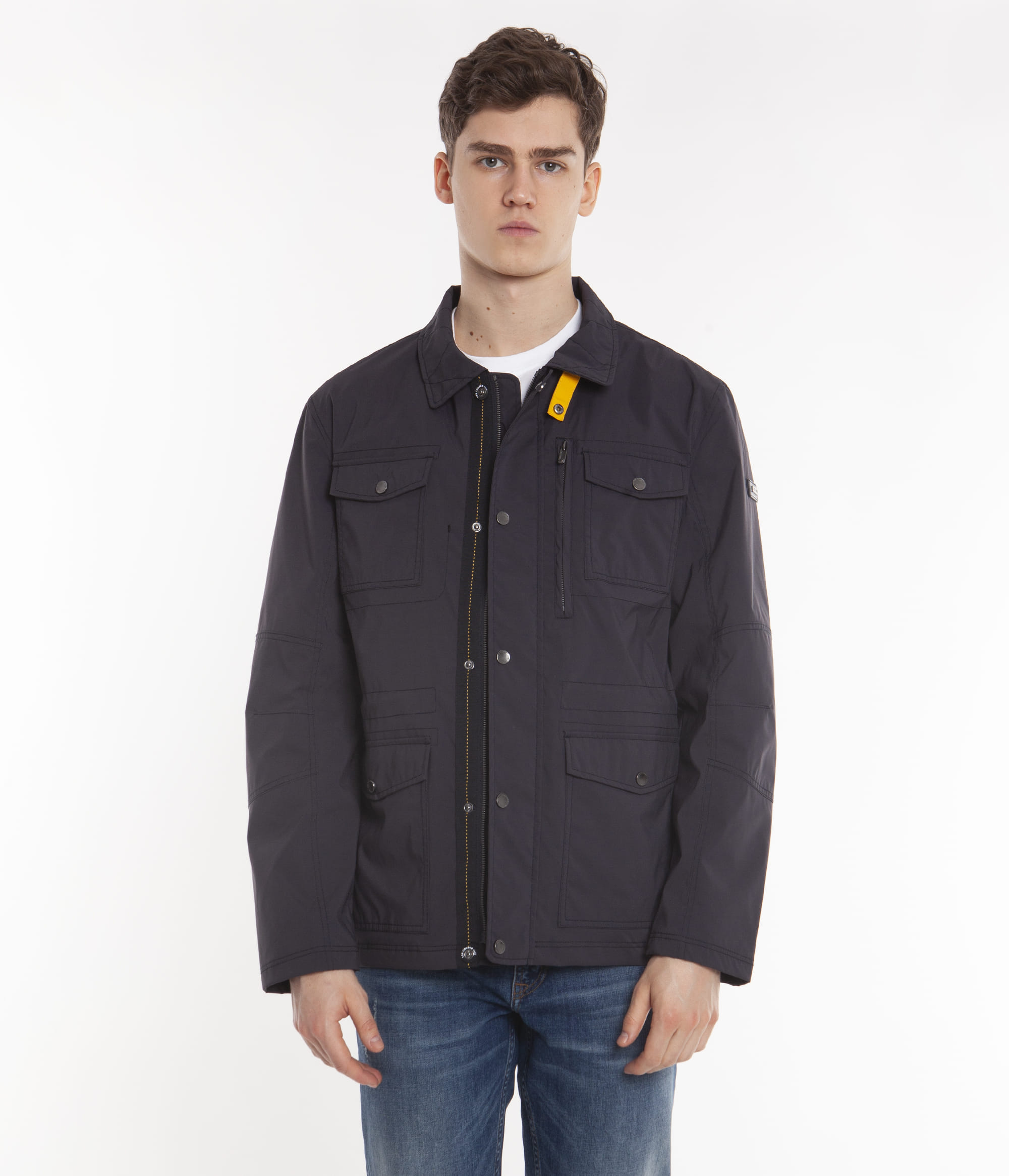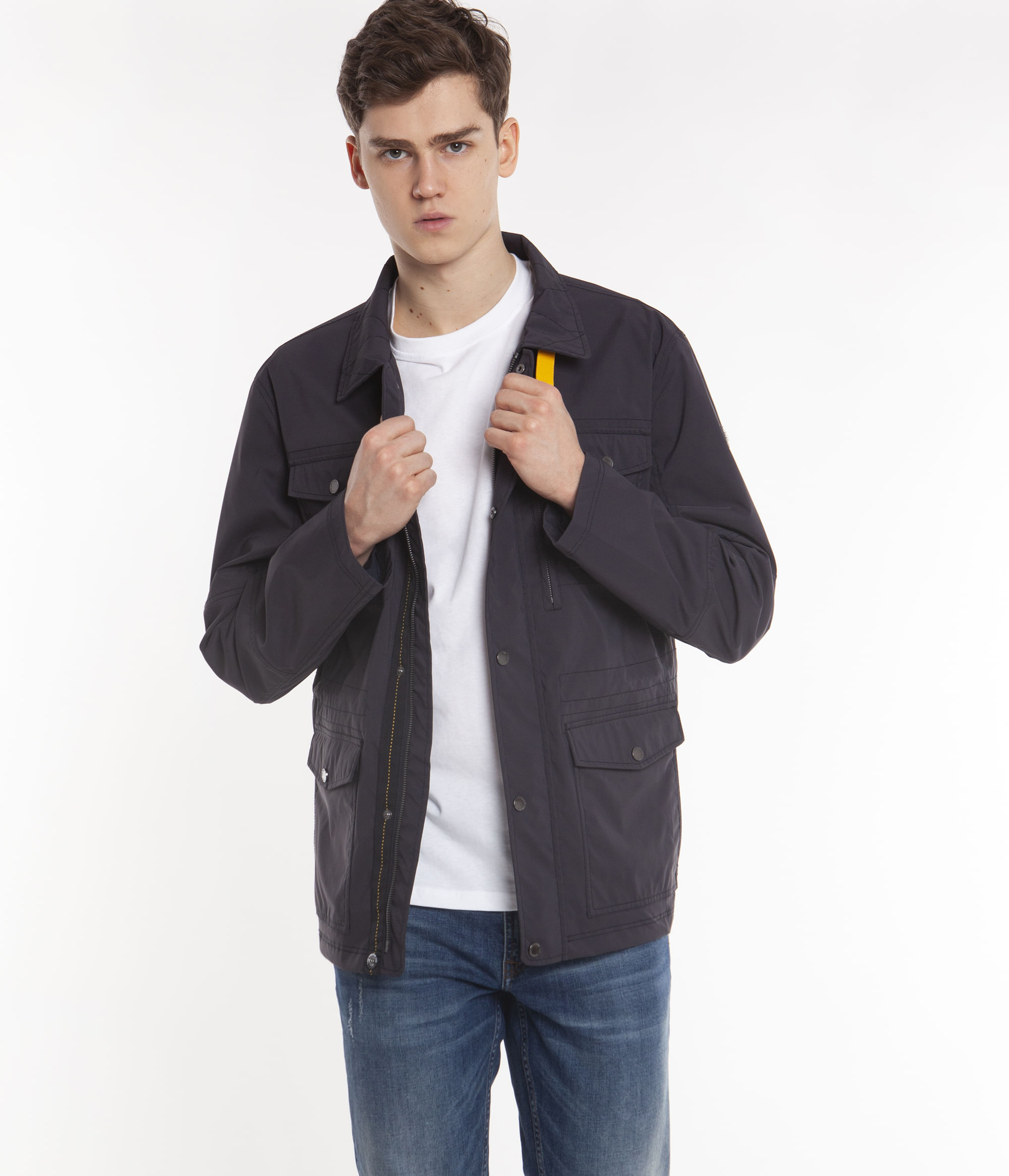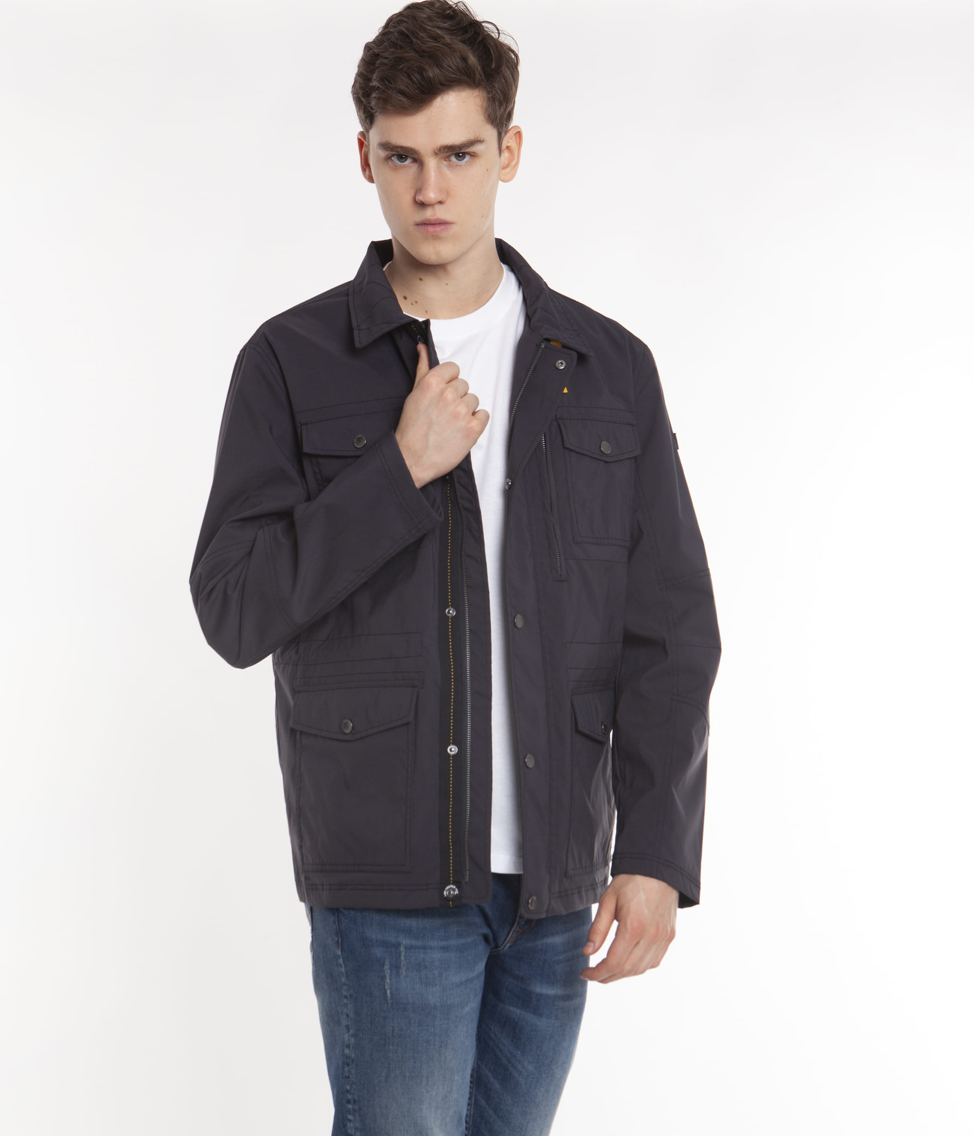 Мужская куртка классического кроя с множеством карманов. Застёжка: молния и кнопки. Спереди четыре больших кармана с клапанами, два боковых кармана и дополнительный вертикальный карман на молнии.
