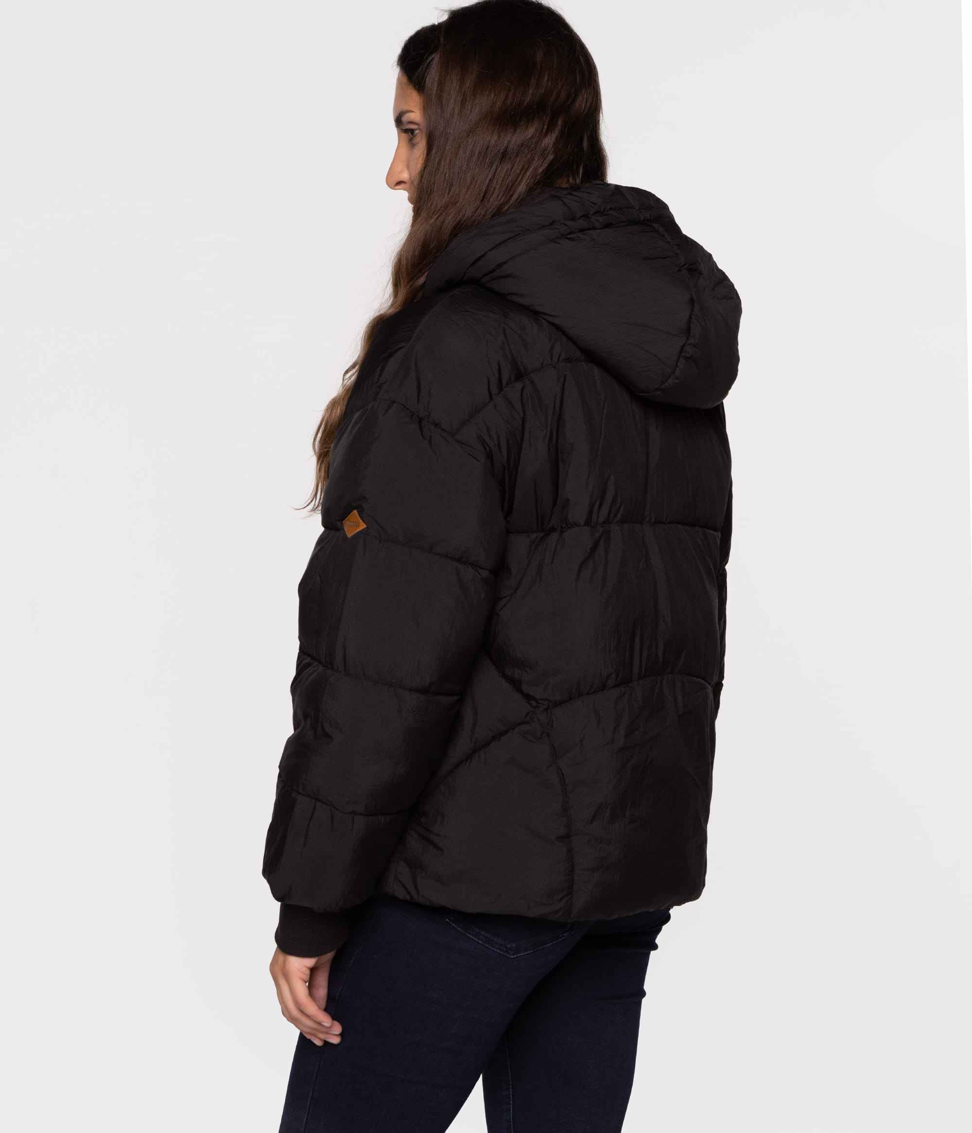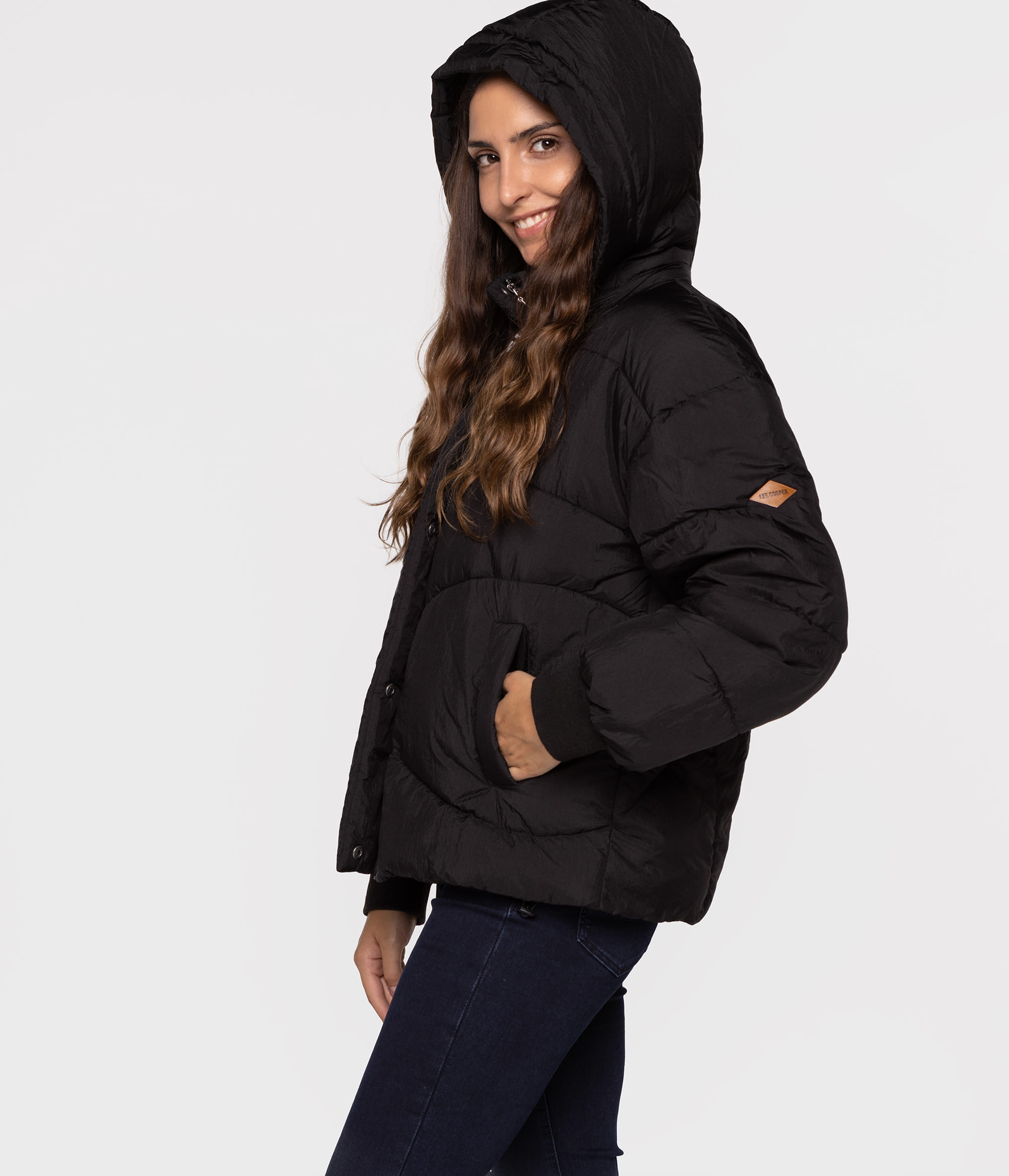 Куртка чёрная со съёмным капюшоном, застёжкой-молнией и кнопками, прикрытыми клапаном, двумя передними карманами, регулировкой внизу кулиской, манжетами в рубчик, отделанными небольшой фирменной нашивкой на левом рукаве. У нашей модели на фото рост 175 см. и размер S.