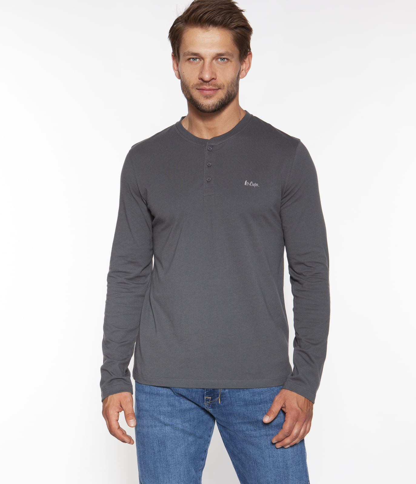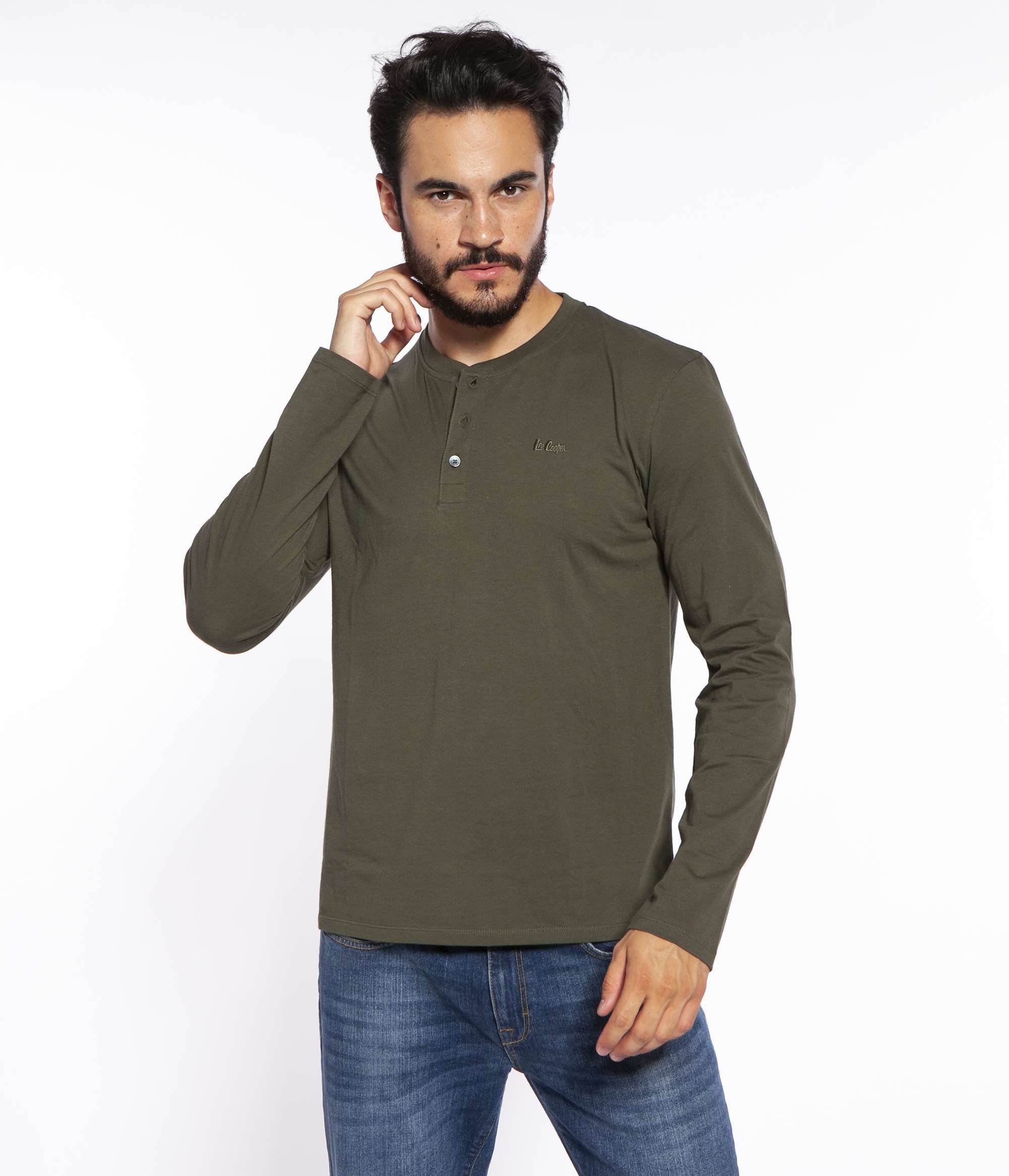 Футболка классическая из хлопчатобумажной ткани с длинными рукавами, круглый вырез горловины на пуговицах. Приятна на ощупь и удобная в использовании. Завершена небольшим вышитым логотипом Lee Cooper слева на груди. Цвета: black, khaki, navy, dark shadow, grey melange.