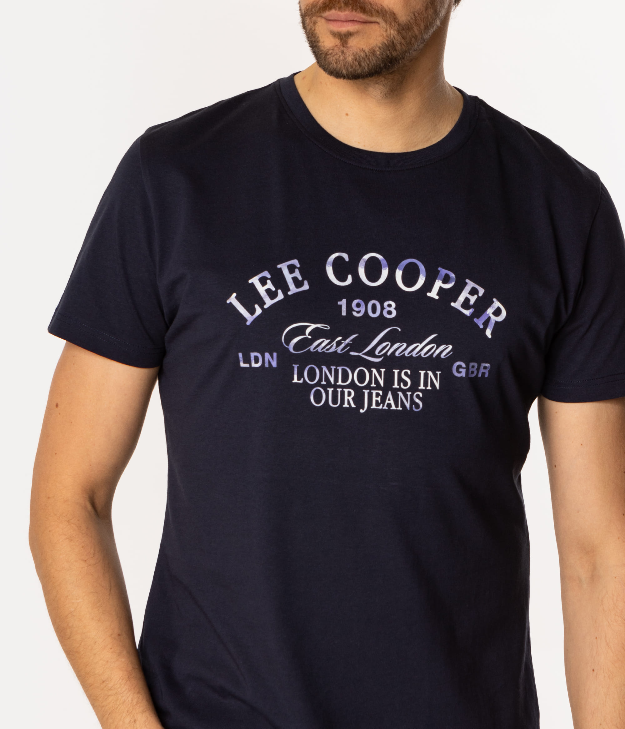Стильная футболка LEE COOPER облегающего кроя, подчёркивающего силуэт. Изготовлена из высококачественного хлопка, обеспечивает комфорт и воздухопроницаемость. Крупный принт спереди придаёт ей характер, делая отличным выбором для повседневного модного стиля. Круглый вырез горловины дополняет классический крой, делая футболку универсальной и легко сочетаемой с другими предметами гардероба.