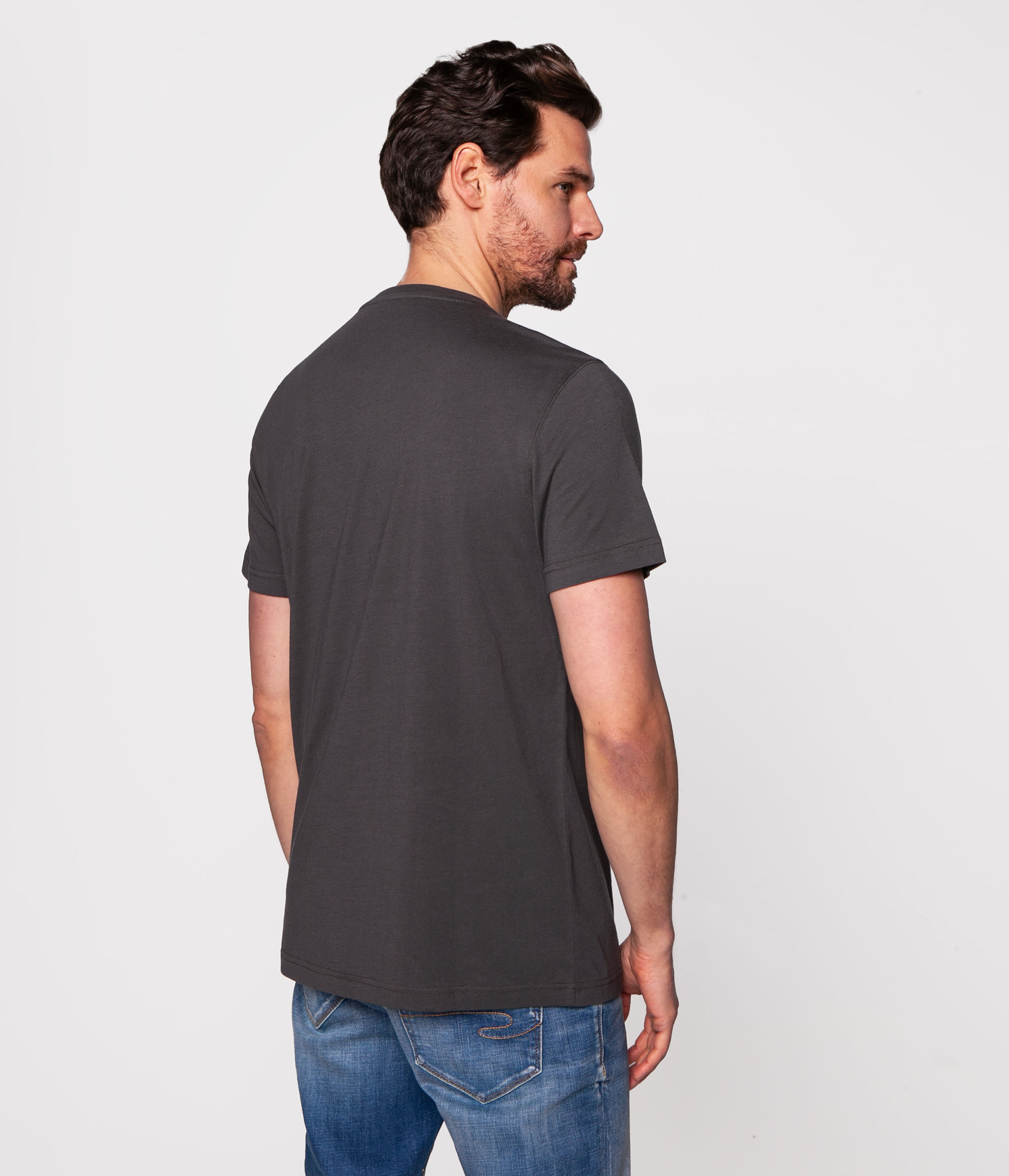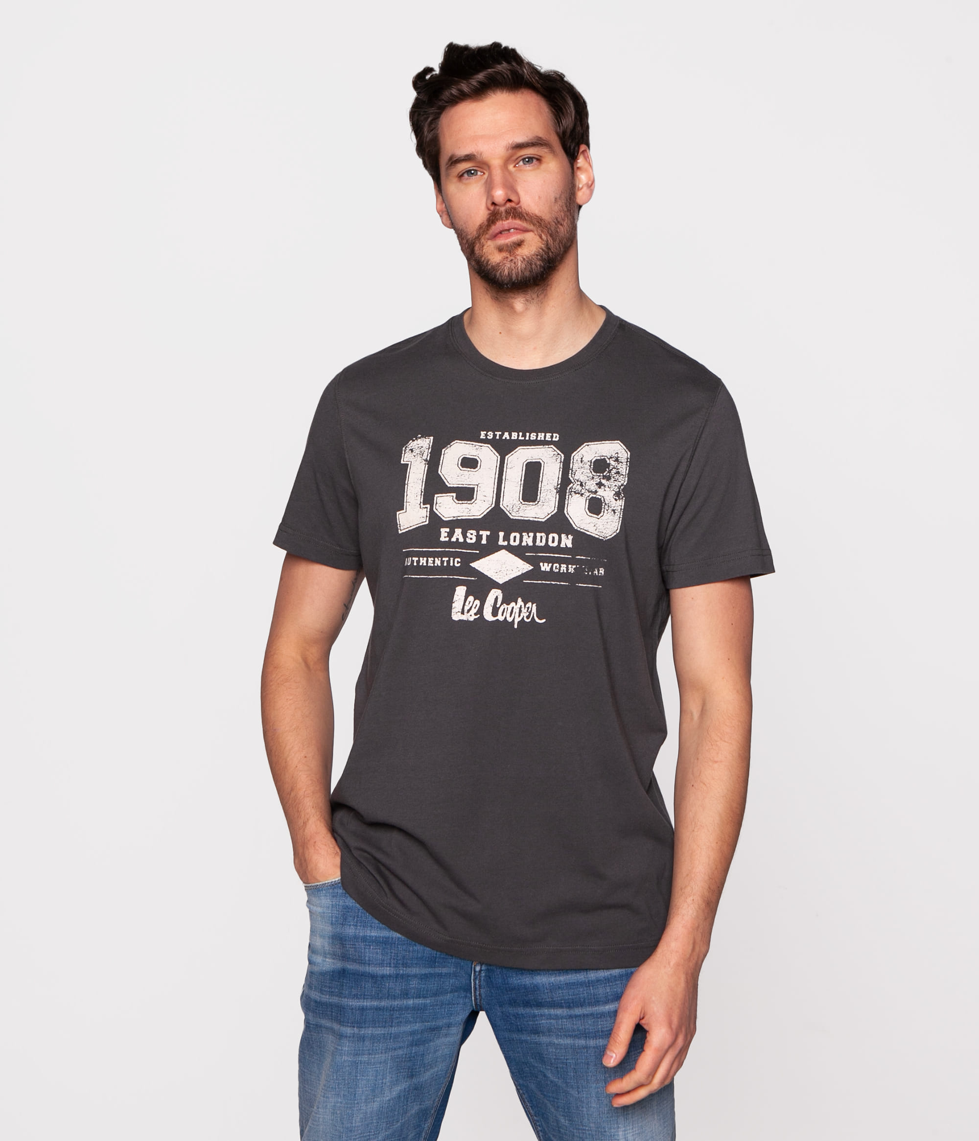 Мужская футболка прямого кроя с крупным принтом из 100% дышащего хлопка. Наша модель на фото ростом 186 см и носит размер L. Два цвета на выбор: BLUE SHADOW или DARK SHADOW.