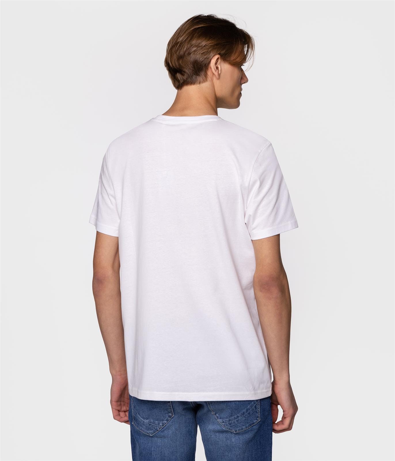 Мужская хлопковая футболка обычного кроя с круглым вырезом горла. Фирменный принт с логотипом LEE COOPER на груди. Три цвета на выбор: white, navy blazer или red. Наша модель ростом 186 см. и носит размер L.