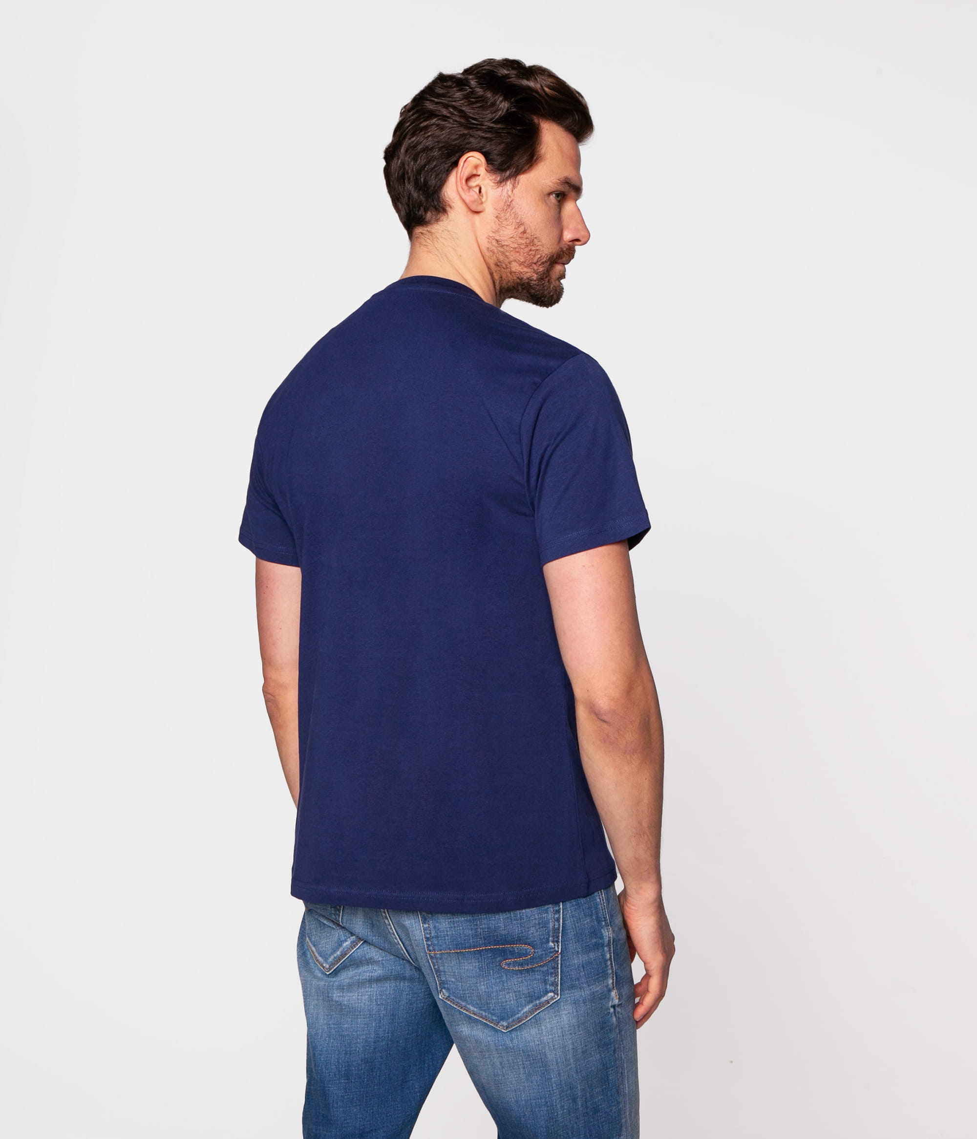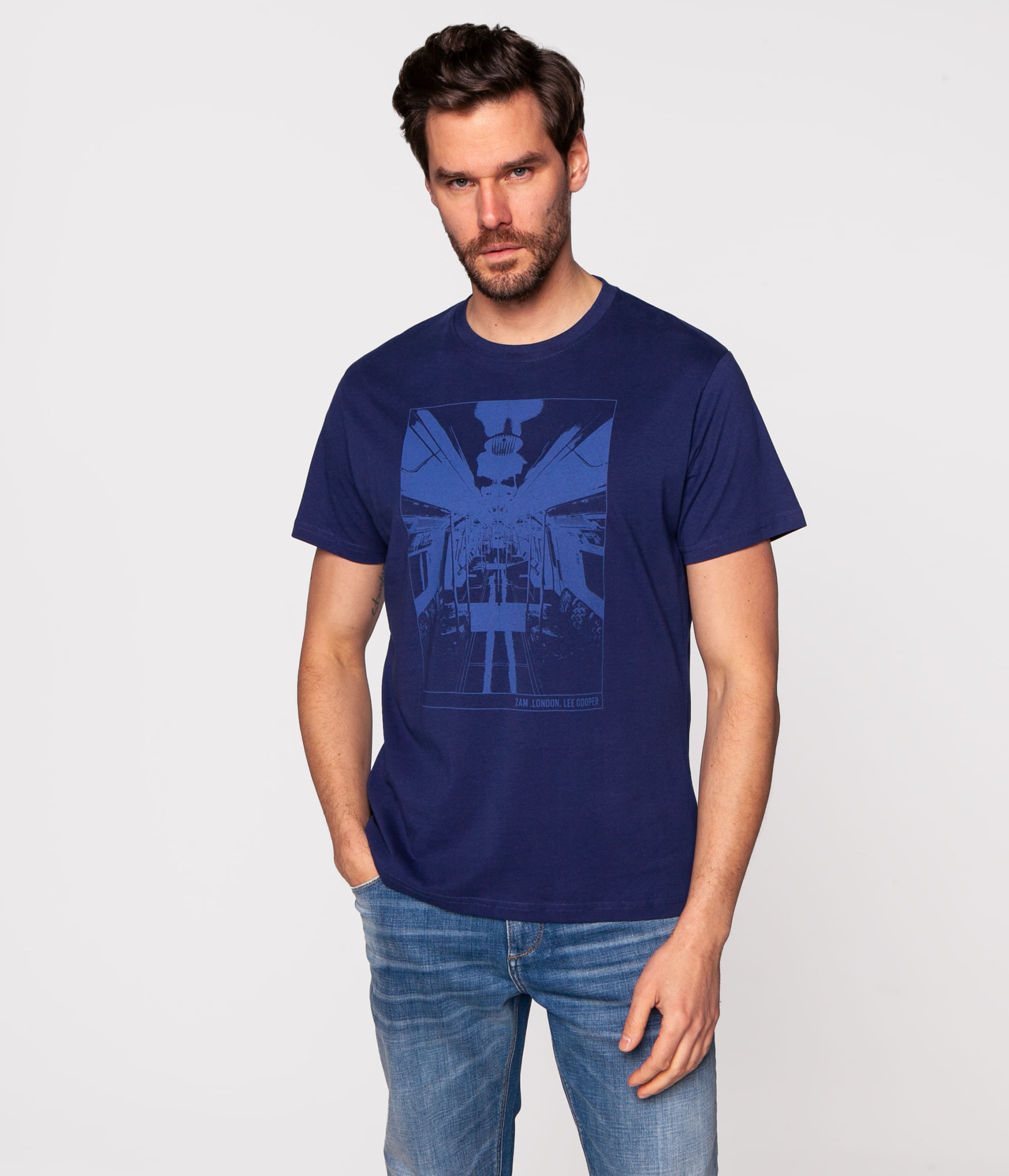Футболка с принтом спереди, прямого кроя, из 100% дышащего хлопка. Круглый вырез горла. Модель на фото ростом 186 см и носит размер L.