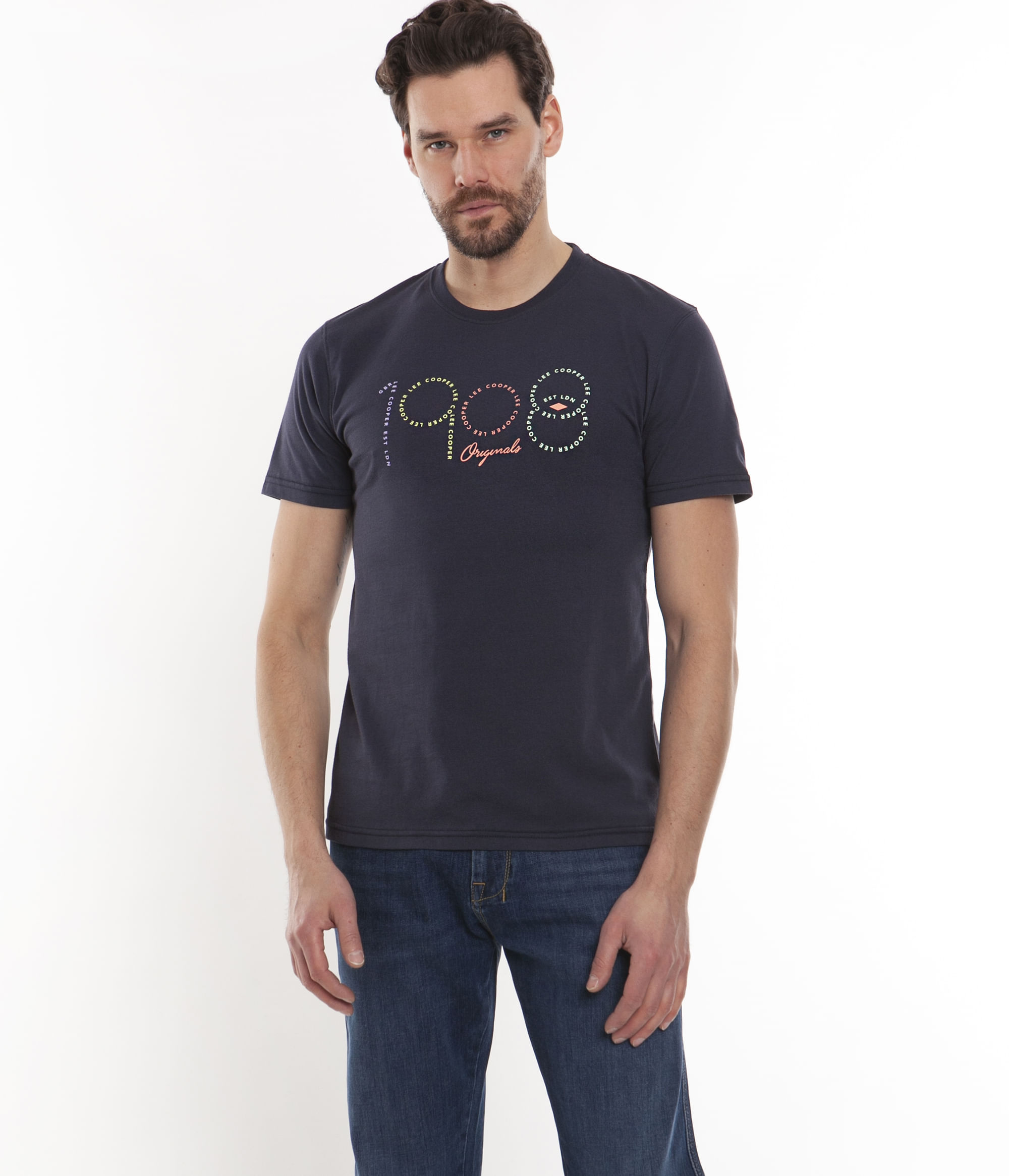 Мужская приталенная футболка SLIM, изготовлена из приятного на ощупь хлопка, что обеспечит комфорт. Круглое горло, короткие рукава и принт спереди.