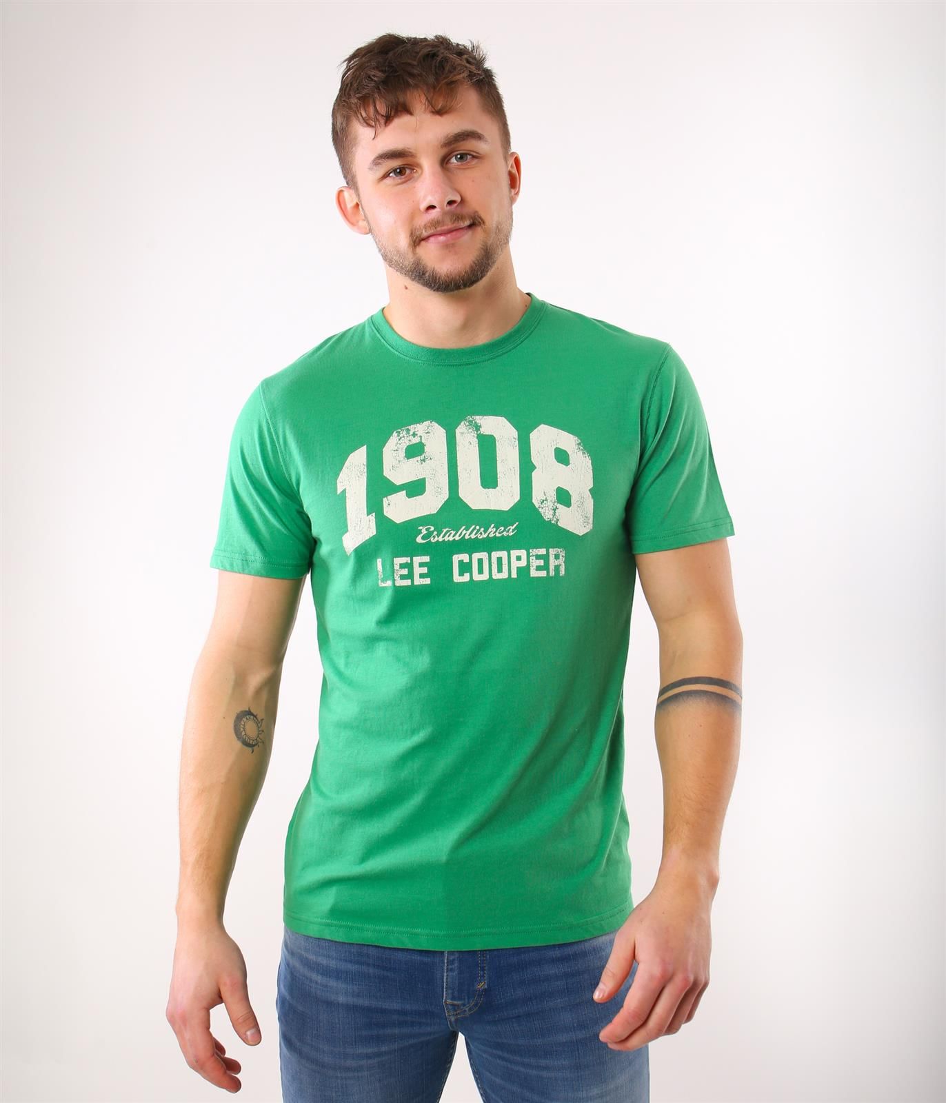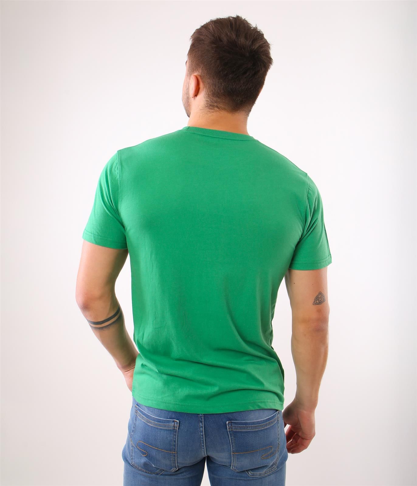 Мужская футболка приталенного кроя из 100% дышащего хлопка с круглым вырезом. Наша модель ростом 186 см и носит размер L.