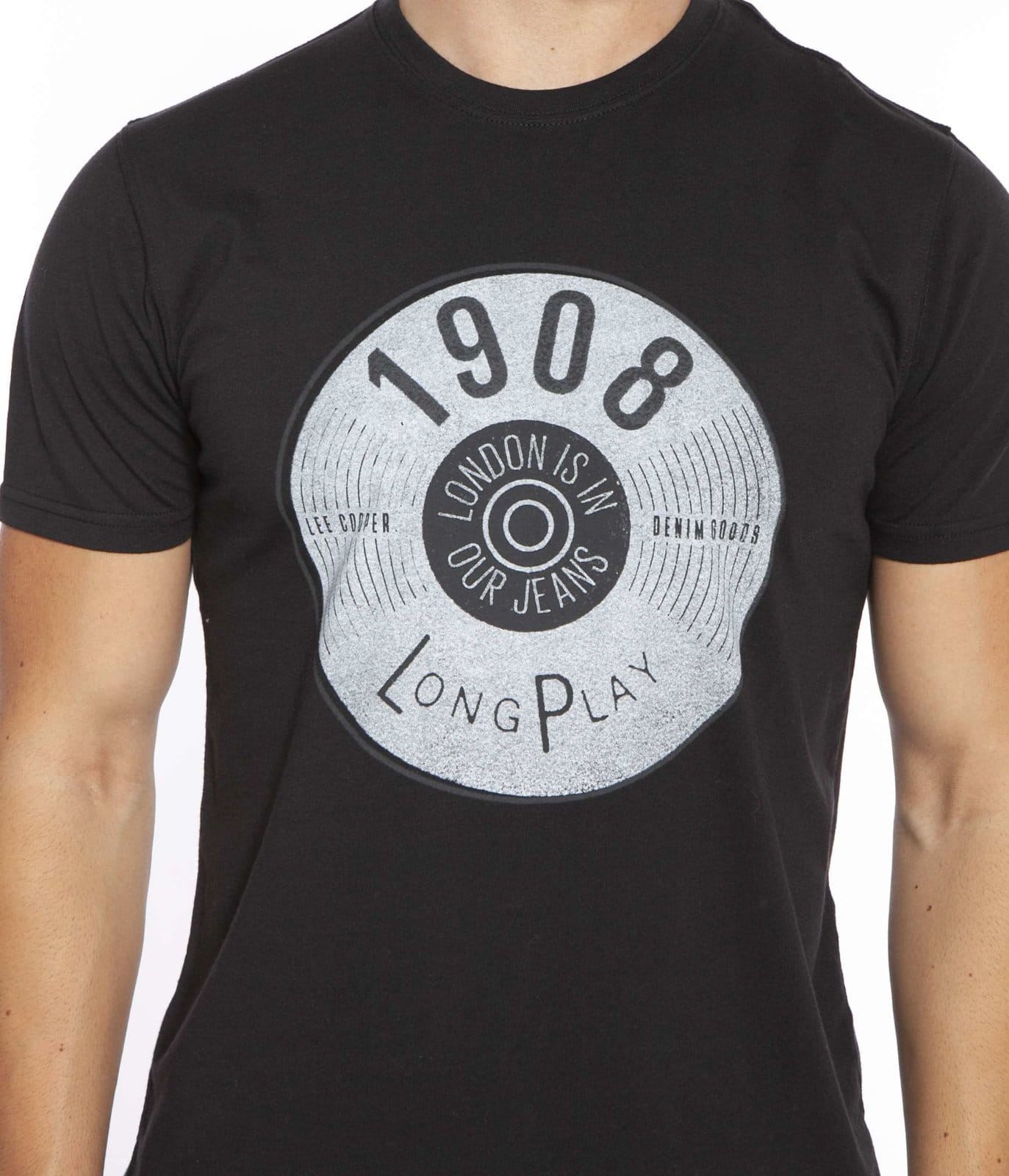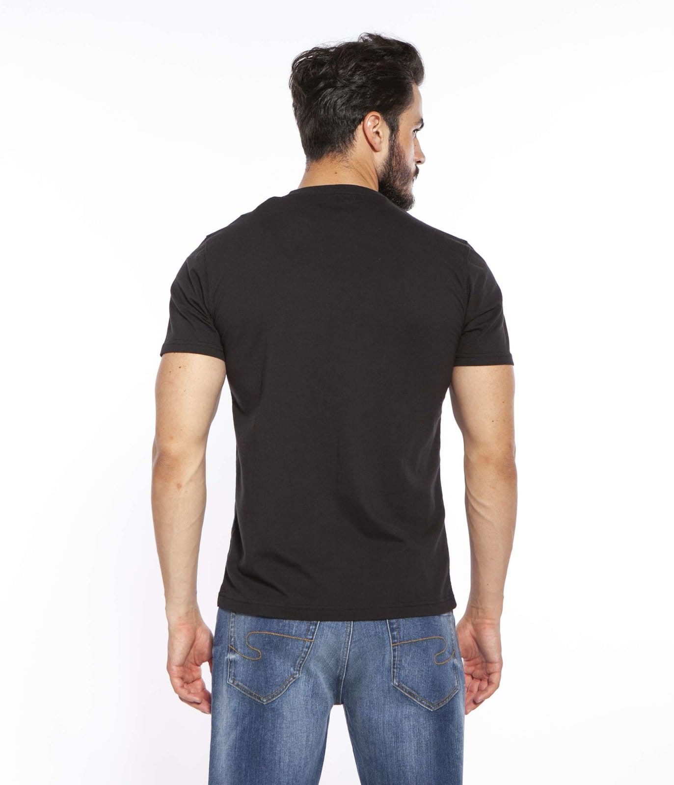 Хлопковая мужская чёрная футболка, приталенная (slim) с круглым вырезом горла, короткие рукава. Спереди майка украшена круглым принтом контрастного цвета. Приятная на ощупь и удобная в использовании.