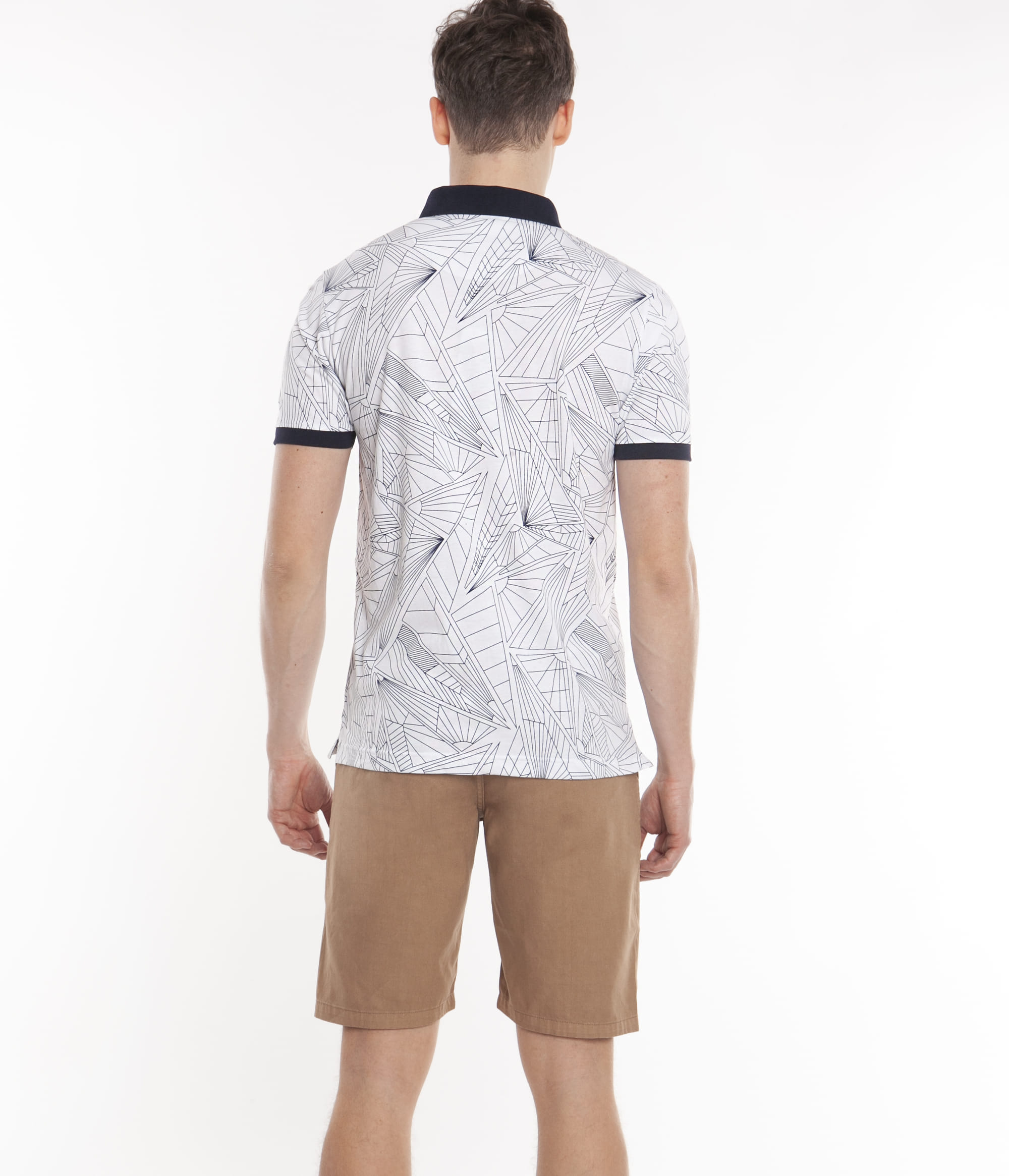 Мужское поло с принтом по всей поверхности, приталенное SLIM, изготовлено из 100% хлопка. Вырез на двух пуговицах, короткий рукав, классический воротник.