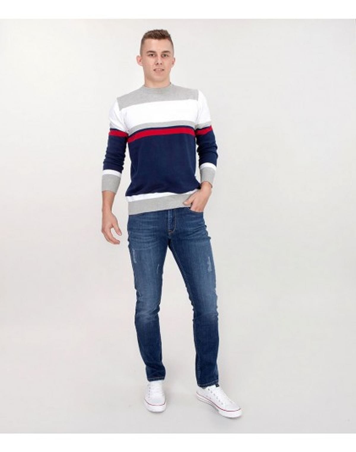 Средняя посадка, на молнии. Модель идёт для стройных и подтянутых людей, которые любят следовать моде и носить не широкие джинсы. Подобранные мужские брюки этого плана удобные, отлично садятся и скрывают небольшие недочёты фигуры. Также, материал с добавкой эластана сделает их удобными и обеспечит комфорт ваших движений. Slim Fit - это крой, подходящий почти всем, будет сочетается с рубашкой модели slim.