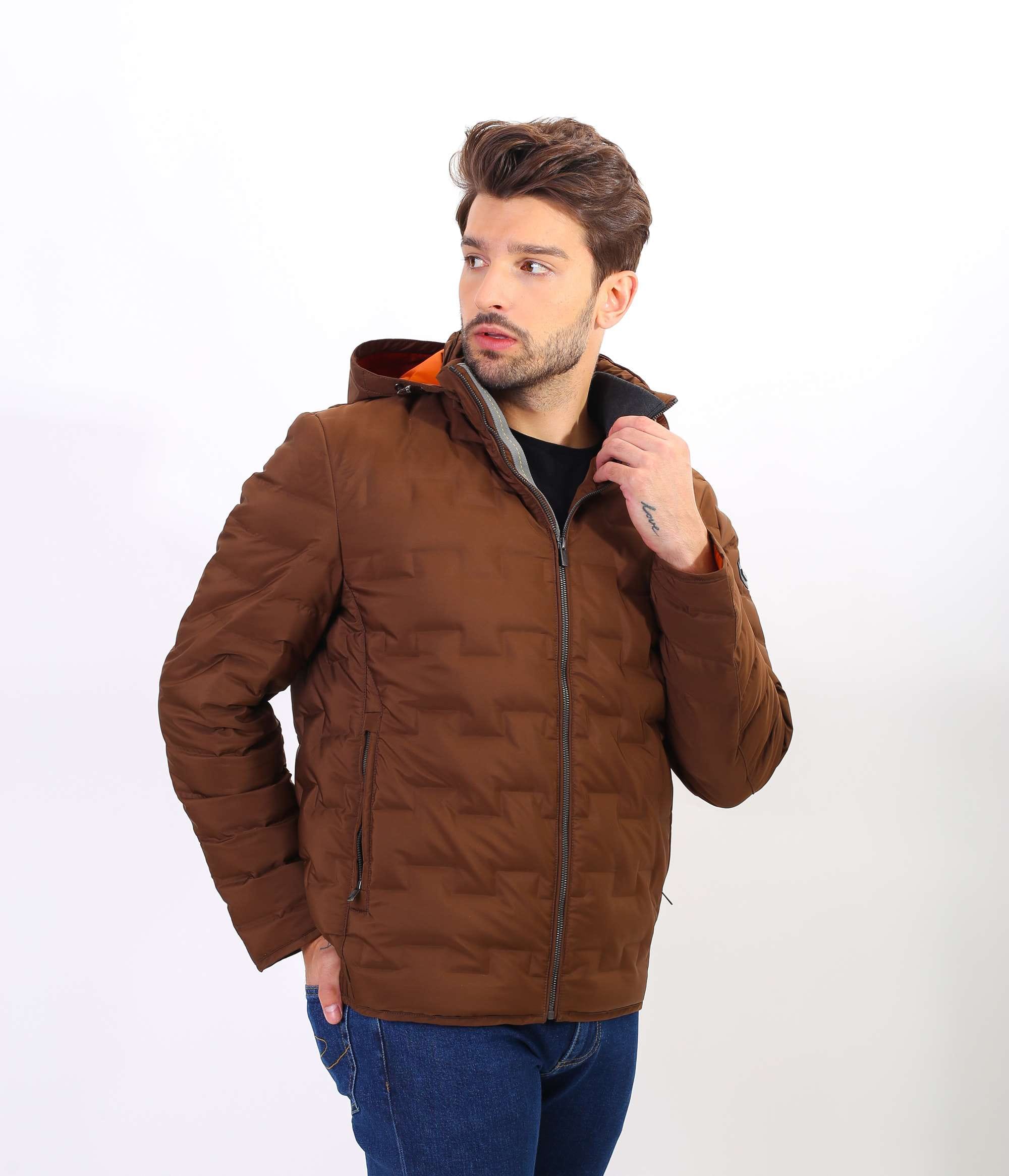 Мужской пуховик с капюшоном на молнии. Регулируемый капюшон с контрастной подкладкой. Два кармана на молнии спереди. На рукаве небольшая эмблема с логотипом Lee Cooper. Регулярный крой, наполнитель из натурального пуха и пера.
