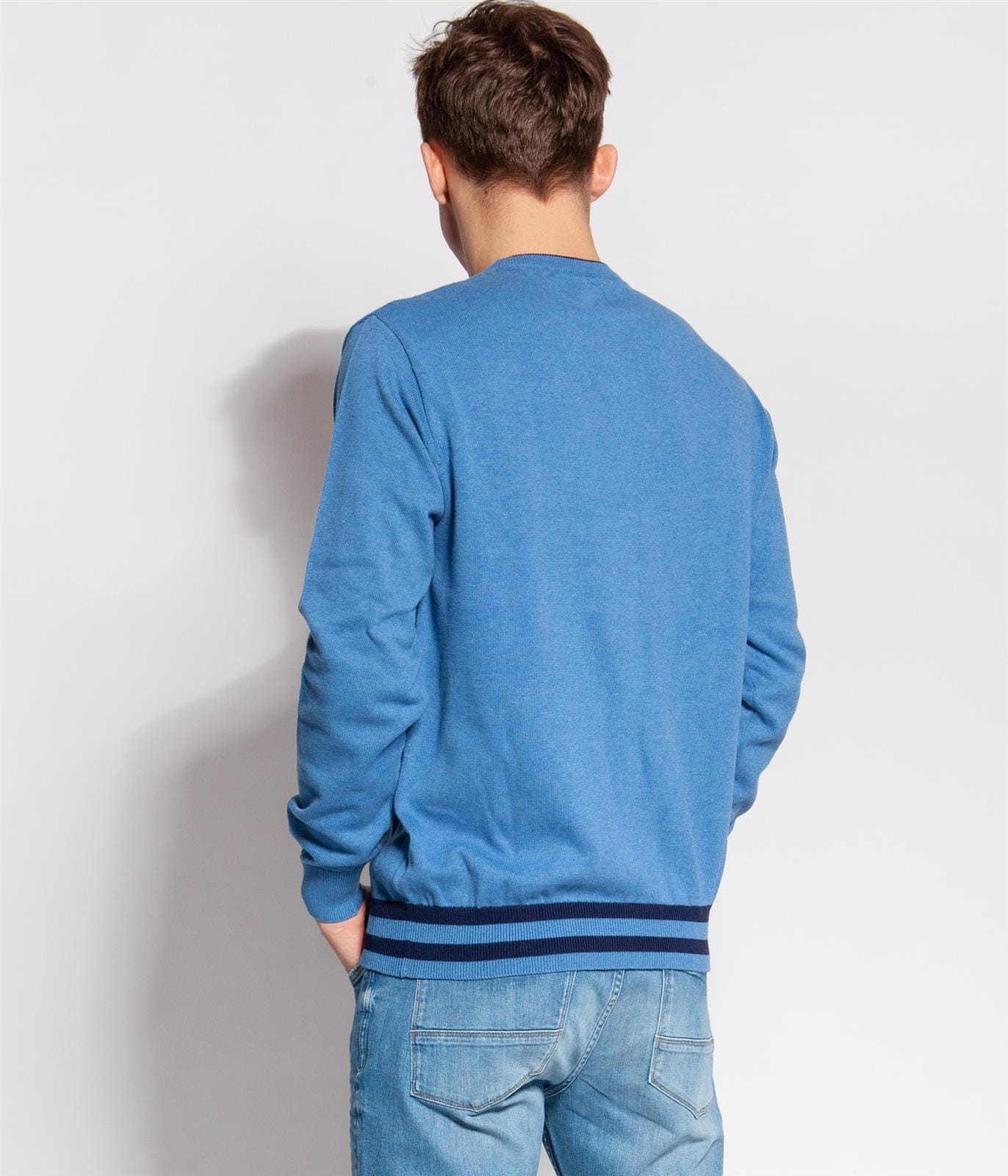Мужской голубой свитер стандартного кроя с круглым горлом из хлопковой ткани с большим логотипом Lee Cooper спереди. Рукава, горло и низ в рубчик.