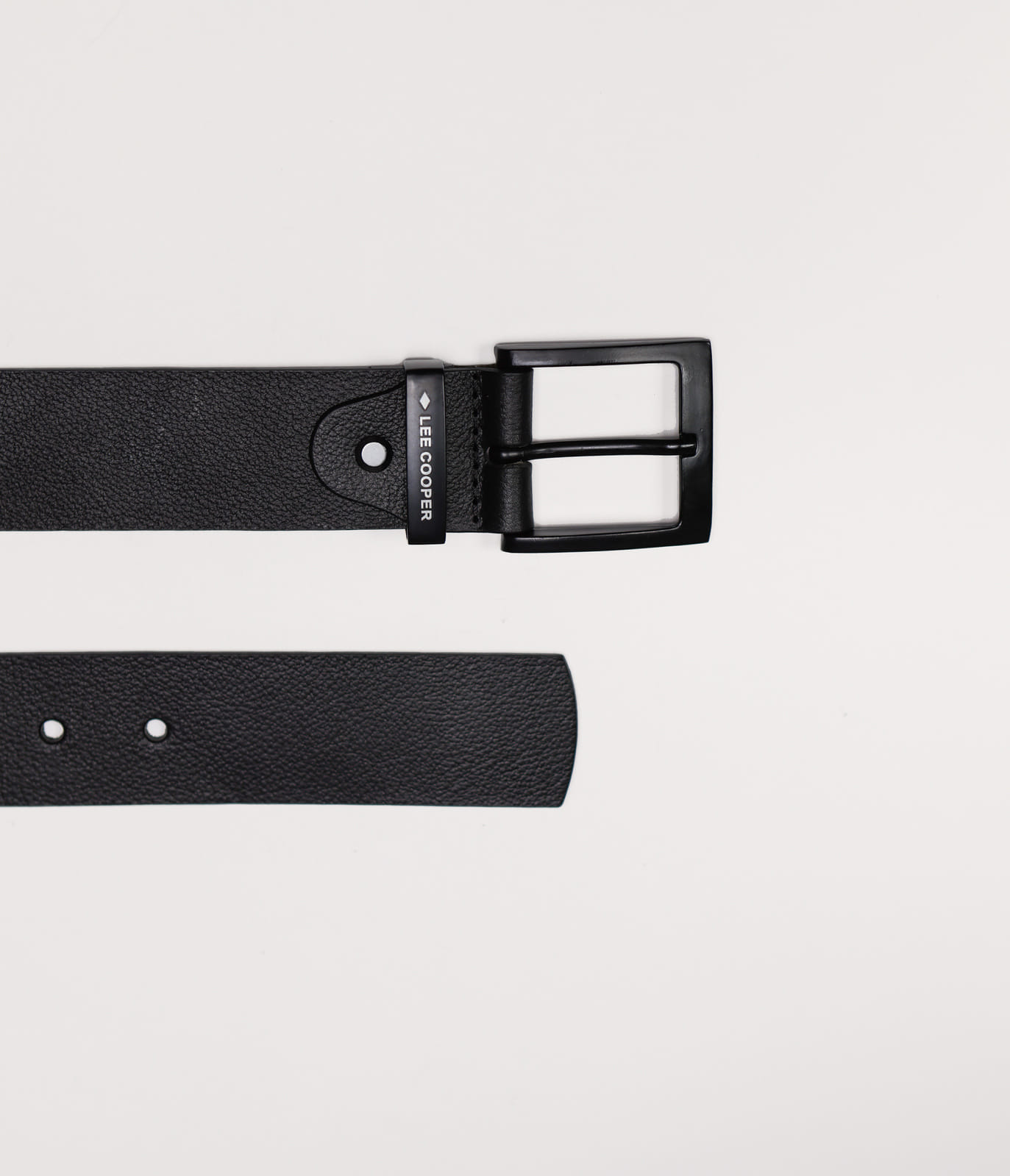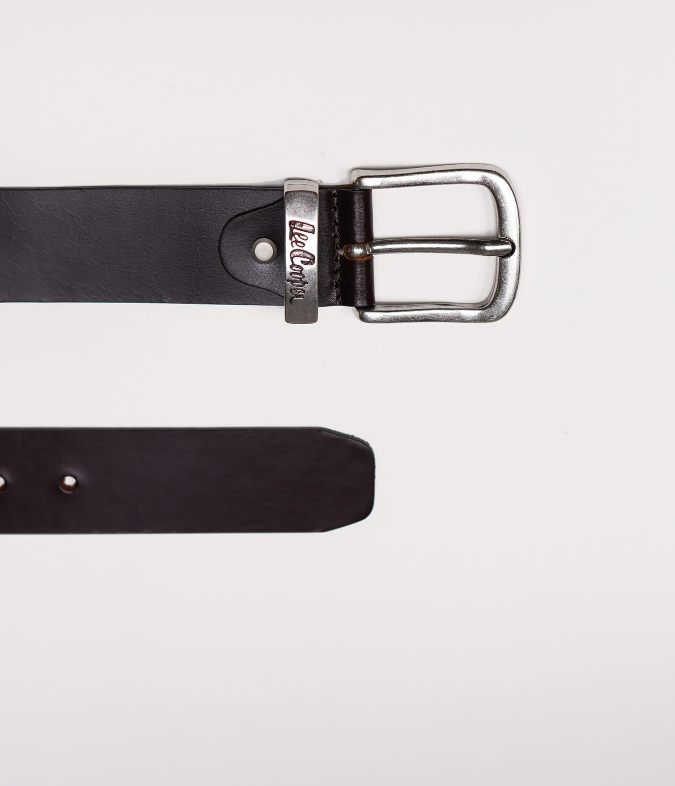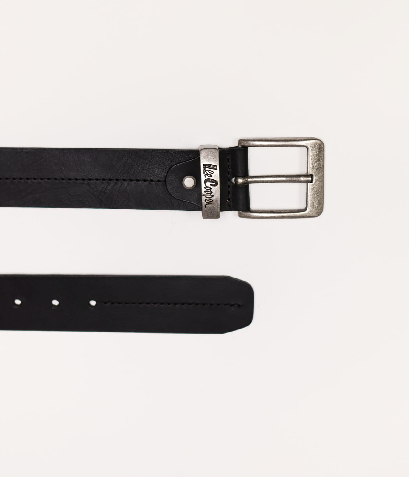 Мужской, гладкий, кожаный ремень, изготовленный из кожи со сдержанным эффектом, имеет тонкую металлическую пряжку с логотипом Lee Cooper.