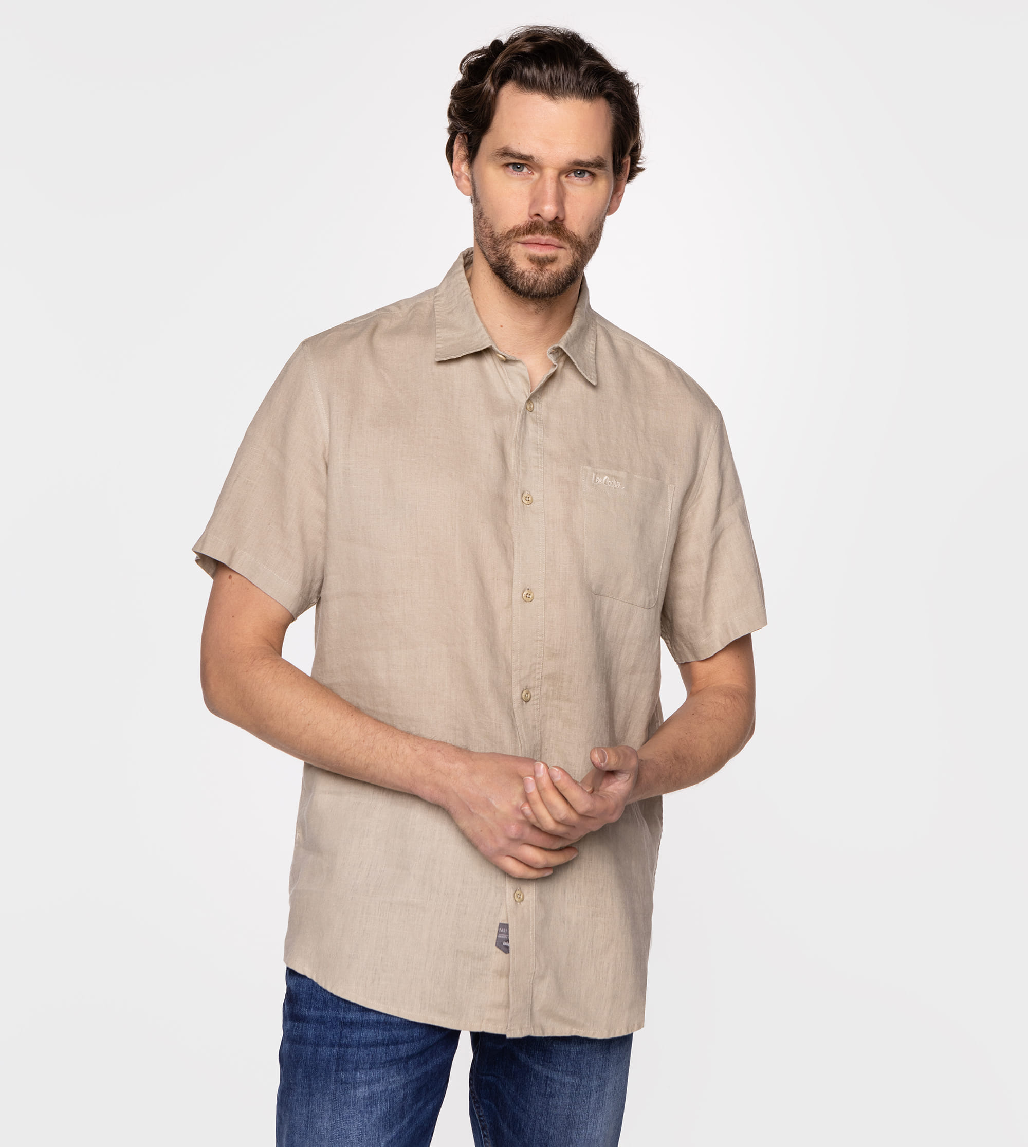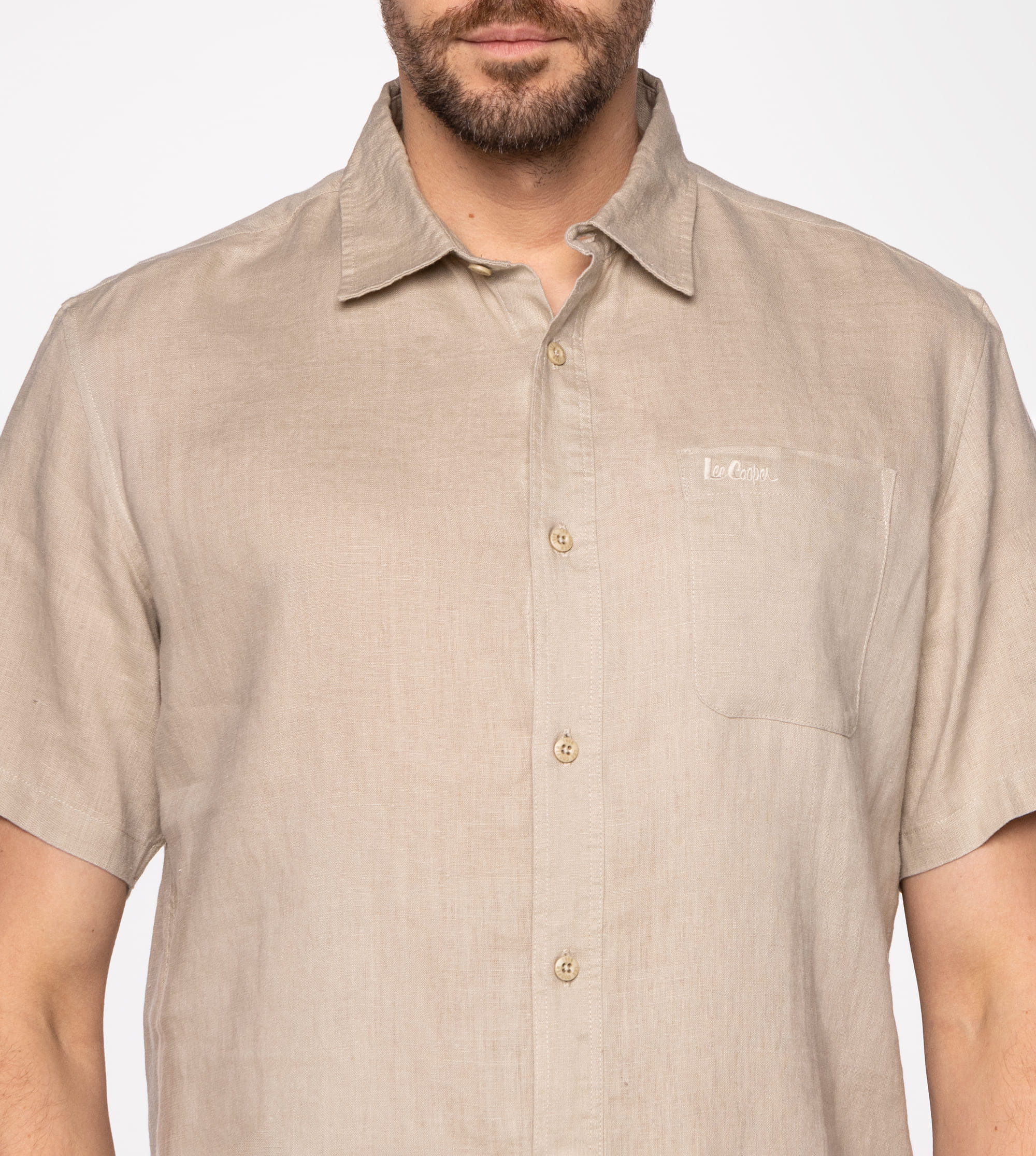 Мужская рубашка Lee Cooper ROGER2 2020 — классический и вневременной предмет гардероба, выполненный из 100% высококачественного льна. Благодаря натуральным свойствам материала он лёгкий, воздушный и удобный в носке, что делает его идеальным выбором для тёплых дней. Короткие рукава и классический воротник придают изделию повседневный, но стильный вид. Рубашка имеет большой карман на левой груди, украшенный изящным вышитым логотипом бренда.