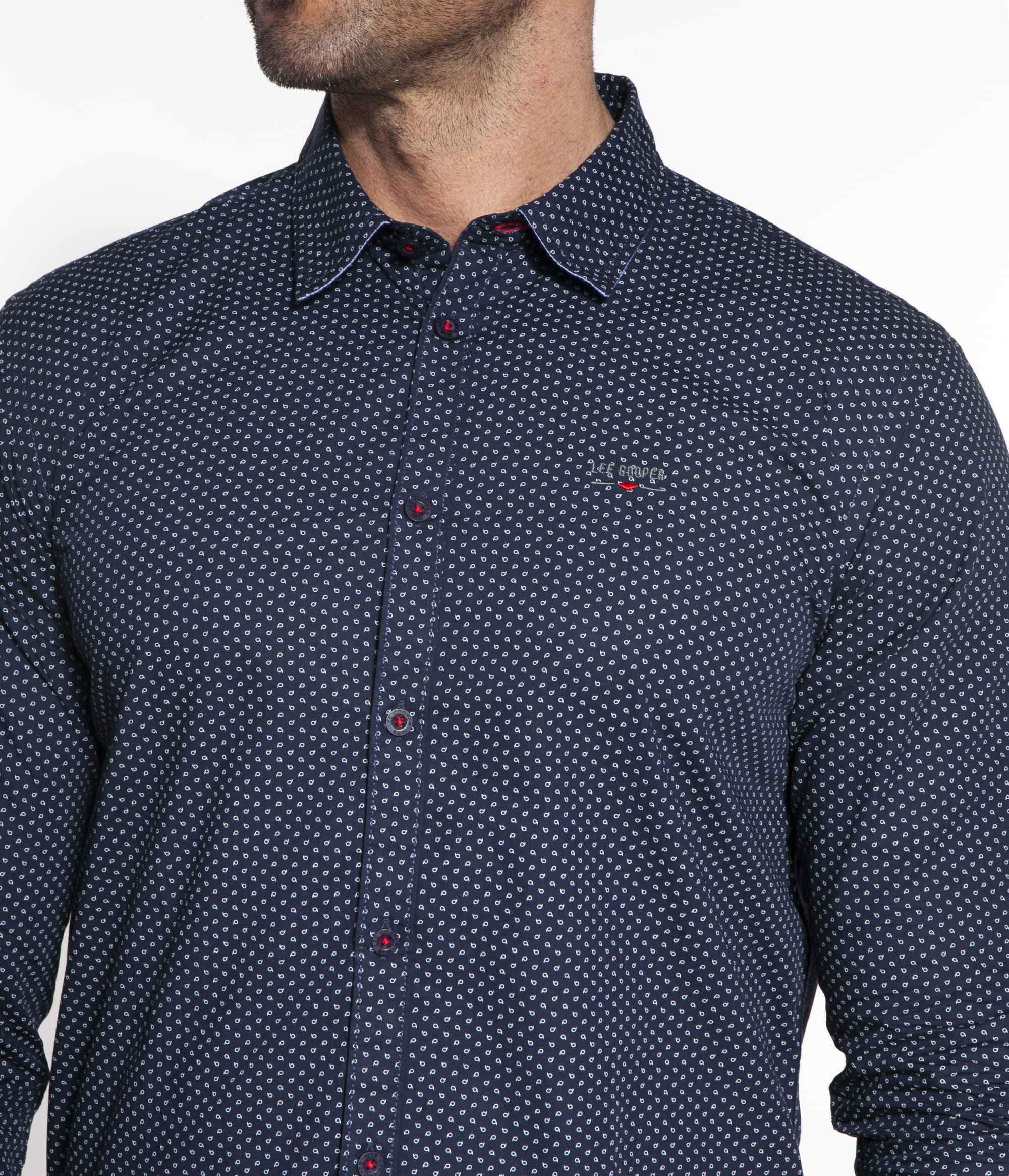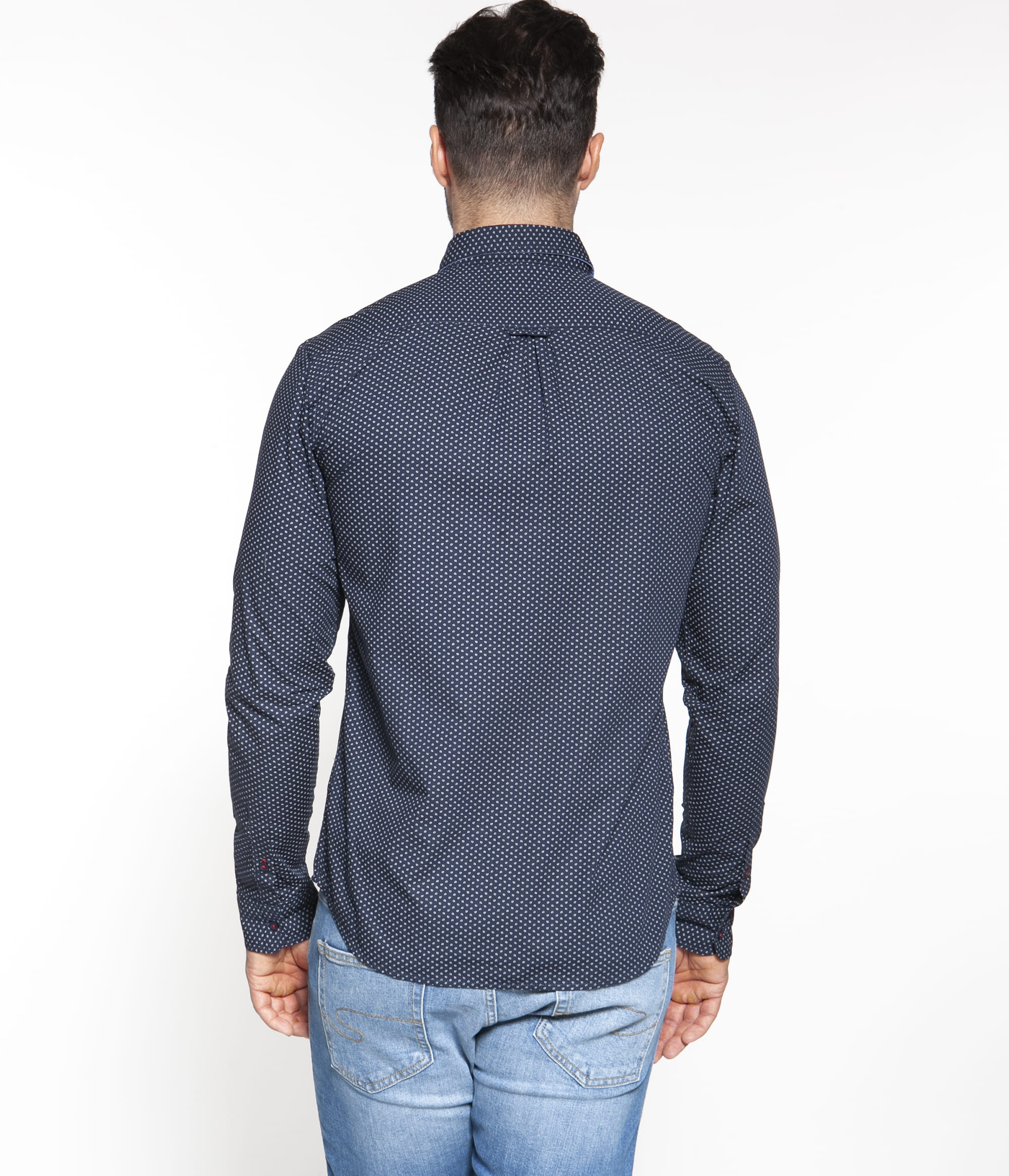 Рубашка тёмно-синяя с длинными рукавами прямого кроя из 100% хлопка без карманов, с логотипом на груди.