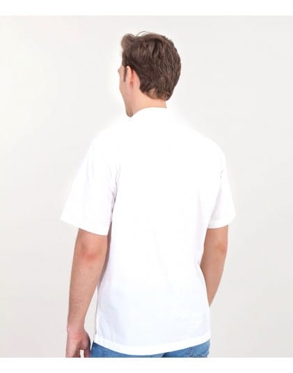 Мужская рубашка белого цвета с короткими рукавами, прямого кроя (regular fit), из хлопчатобумажной ткани, на пуговицах.