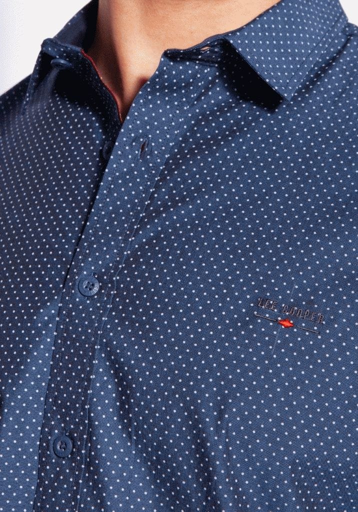 Мужская рубашка с длинными рукавами стандартного кроя (regular fit) из хлопчатобумажной ткани с микропринтом. Классический воротник. Застёжка на пуговицы спереди. Вышитый небольшой логотип Lee Cooper спереди.