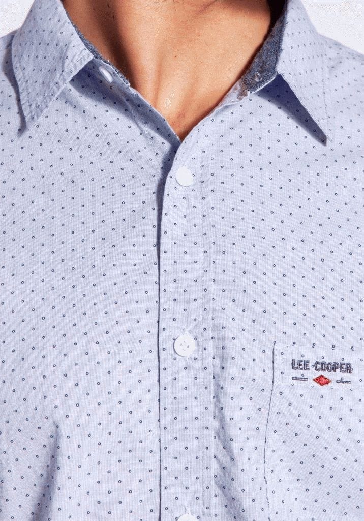 Мужская рубашка с длинными рукавами стандартного кроя (regular fit) из хлопчатобумажной ткани с микропринтом на всей поверхности. Застежка на пуговицы спереди. Вышитый логотип Lee Cooper на переднем левом нагрудном кармане.