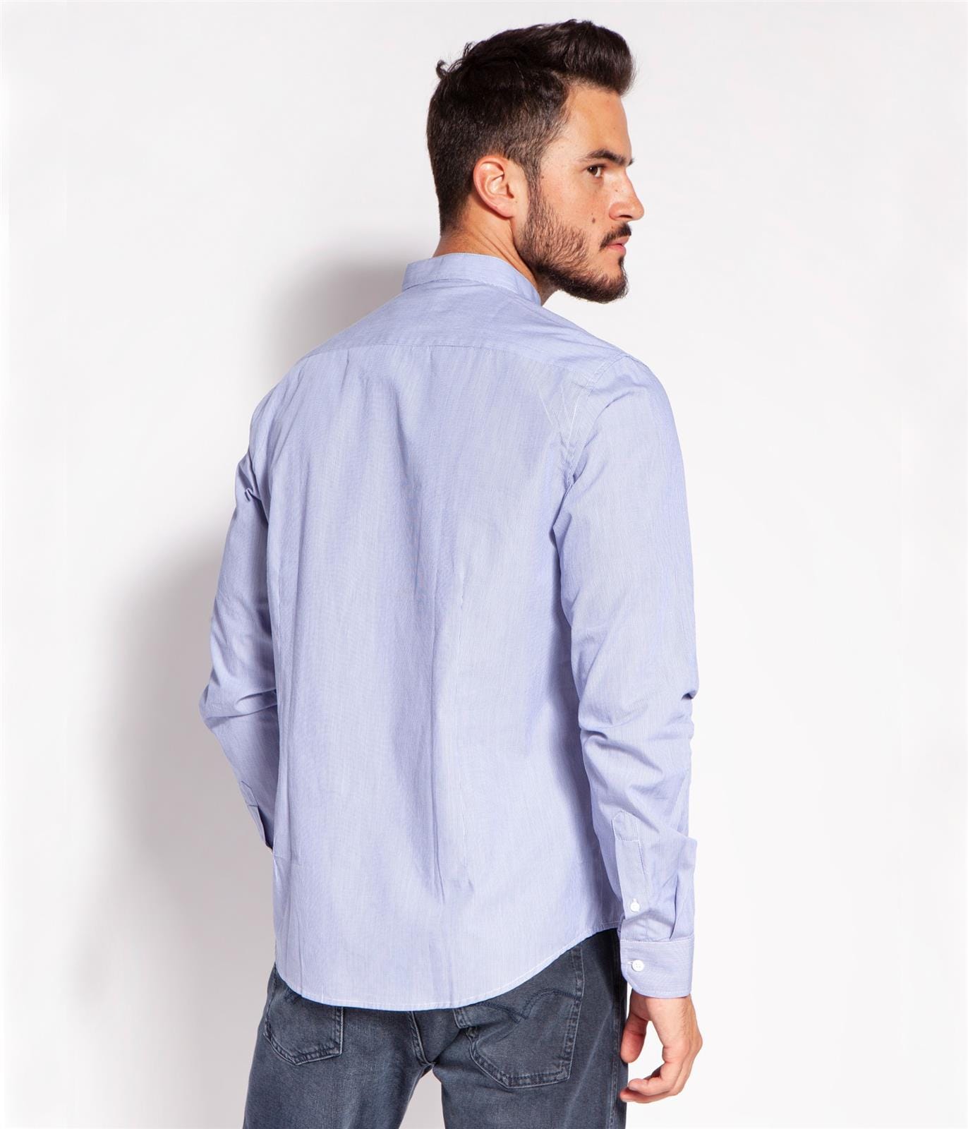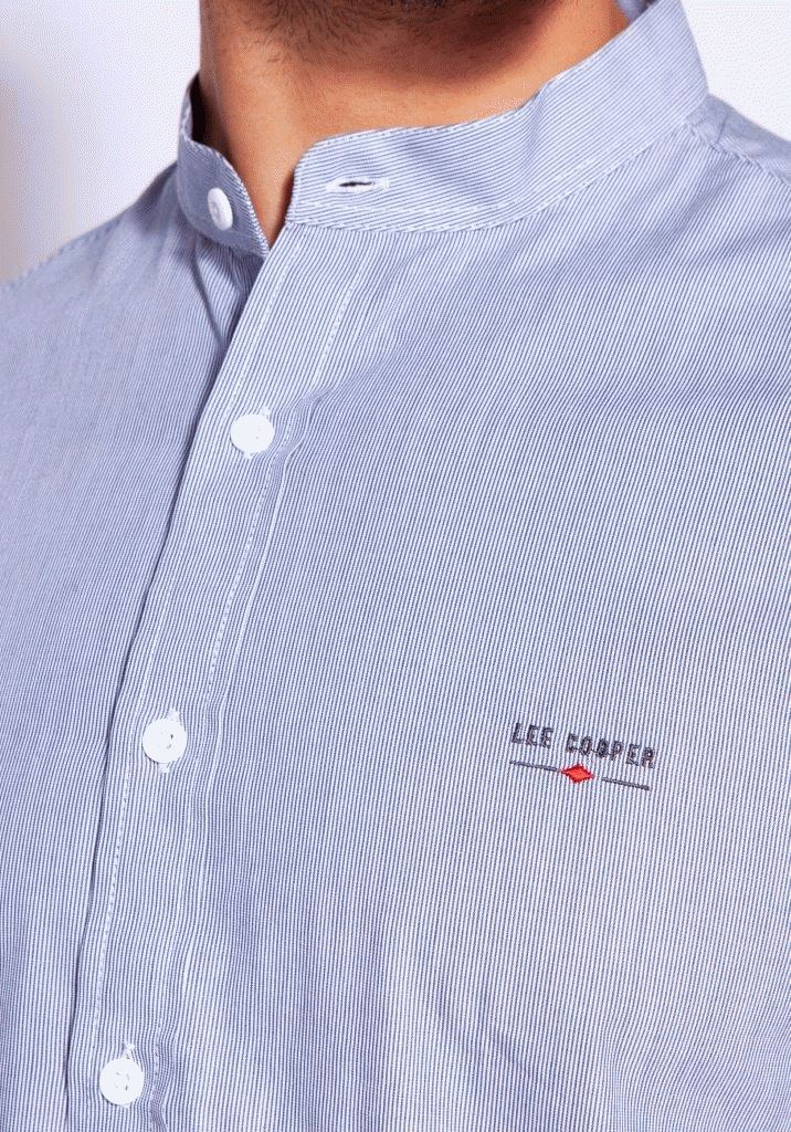Мужская рубашка с длинными рукавами стандартного кроя (regular fit) из хлопчатобумажной ткани. Модный воротник (мандарин) с низким воротником-стойкой и без лацканов. Застёжка на пуговицы спереди. Вышитый маленький логотип Lee Cooper спереди слева.