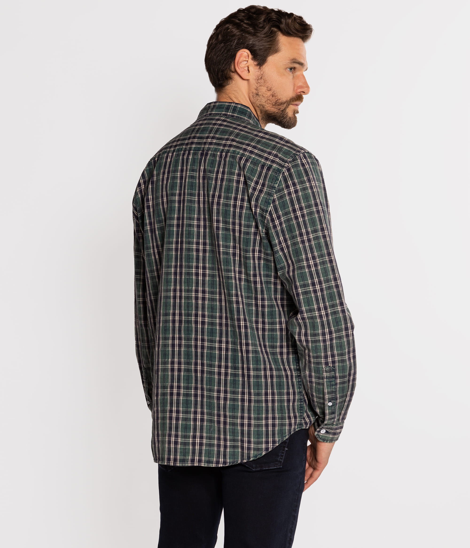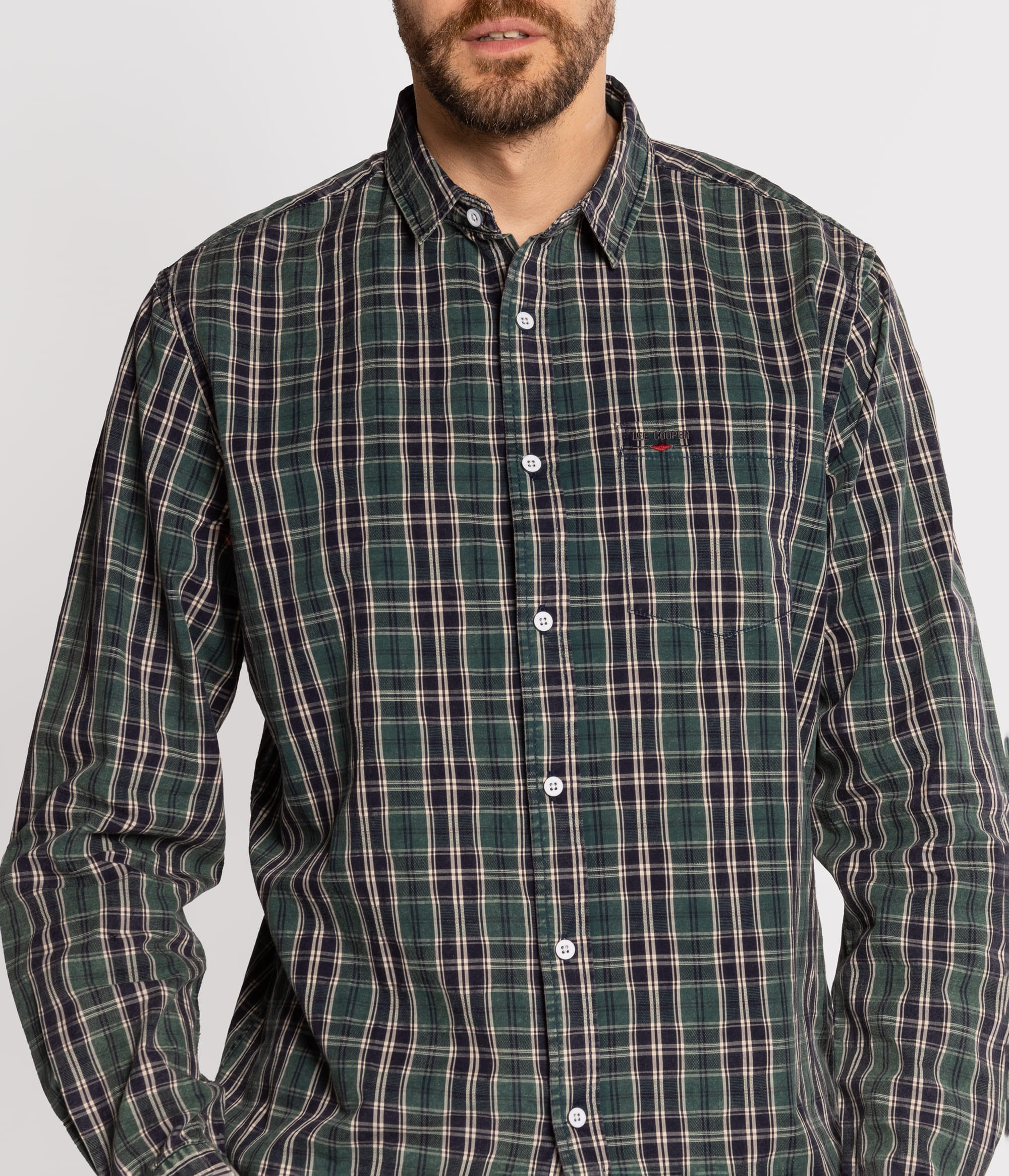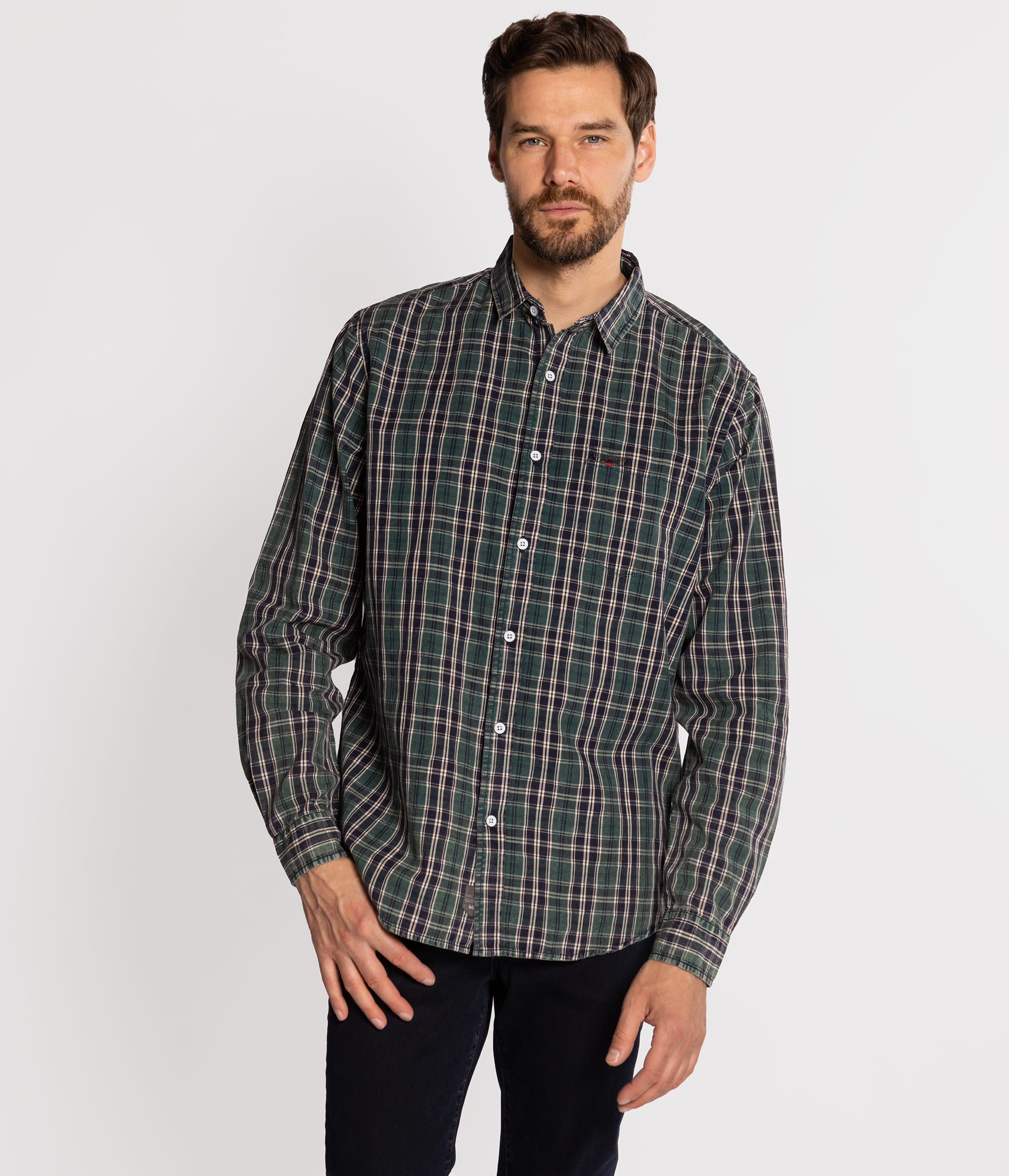 Мужская рубашка с длинными рукавами обычного кроя regular fit, изготовлена из 100% хлопка. У нашей модели на фото рост 186 см, размер L.