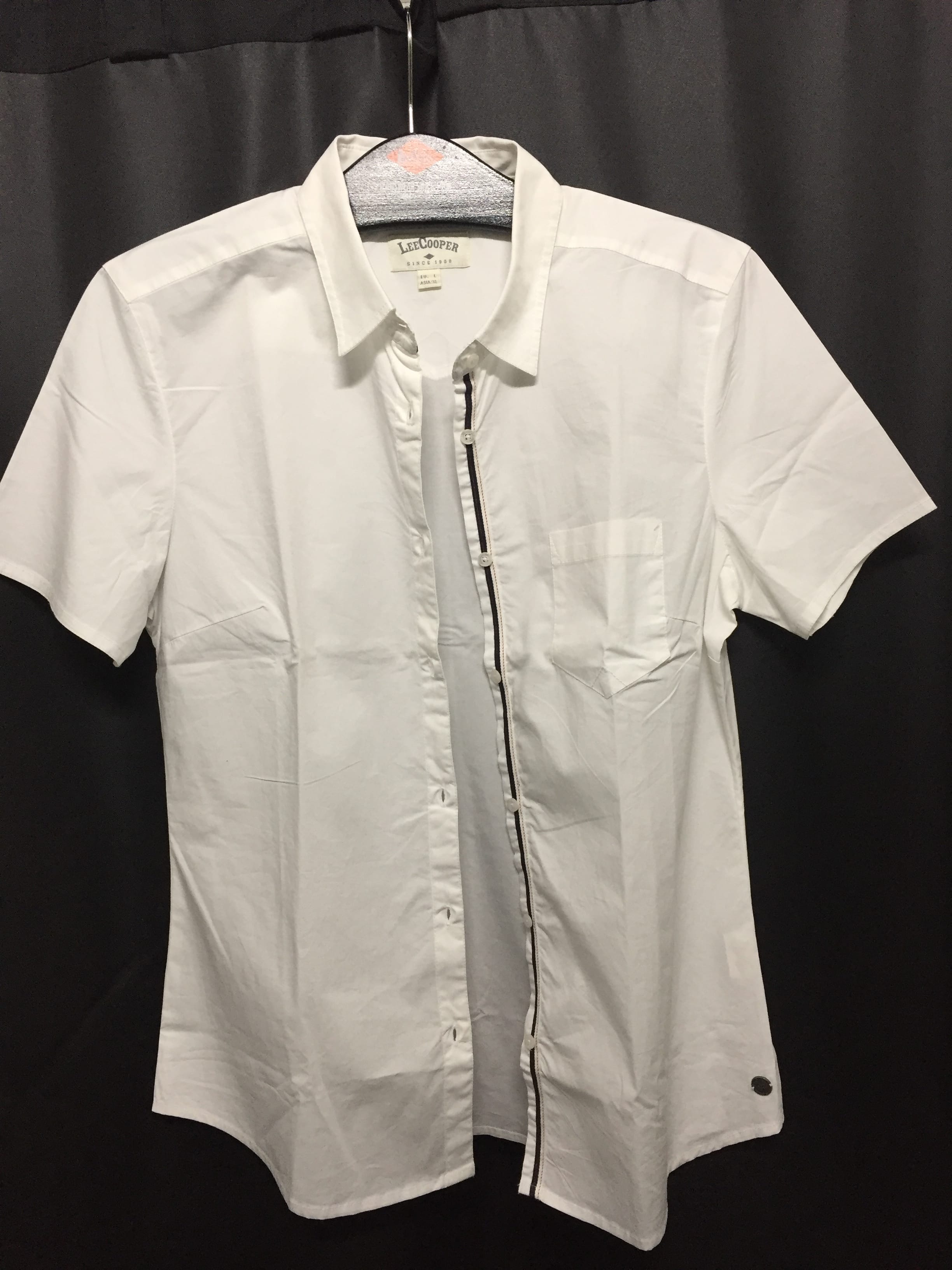 Женская белая рубашка с коротким рукавом, приталенная, из хлопка, на пуговицах, слева открытый карман. Логотип Lee Cooper спереди снизу.